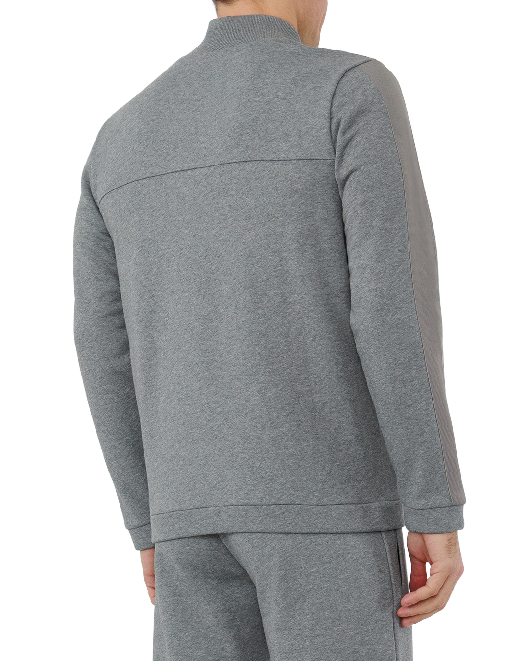 Эта олимпийка представляет собой гармонию спортивного и повседневного стиля, идеально подходящую для создания непринужденных, но стильных образов. Выполненная в универсальной серой цветовой палитре, она предлагает сочетание текстур, которые подчеркивают её уникальность и современность. Верхняя часть изделия выполнена из эластичного трикотажа, что обеспечивает комфорт и свободу движений. Низ и центральная часть украшены материала с легким блеском, добавляющим динамику и визуальный интерес. Высокий воротник-стойка подчеркивает спортивный характер олимпийки и защищает от прохладного ветра. Центральная застежка-молния с металлическим блеском добавляет современный акцент и функциональность. Элементы отделки включают в себя тонкую прострочку, которая создает четкие линии и придает изделию аккуратный вид. Логотип на груди выполнен в минималистичном стиле, добавляя олимпийке брендированную уверенность и стильный акцент. Эластичные манжеты и пояс обеспечивают удобную посадку и сохраняют тепло, а продуманная комбинированная текстура превращает эту олимпийку в идеальный элемент гардероба для тех, кто ценит стиль и комфорт в любой ситуации.
