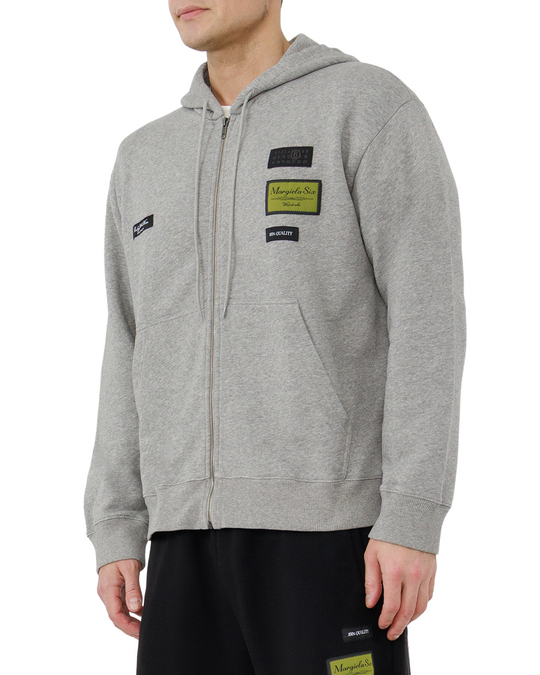 Эта олимпийка — синтез лаконичности и выразительных акцентов. Серо-вересковый оттенок создаёт нейтральный фон, на котором эффектно выделяются нашивки с надписями: они придают модели характер и лёгкую концептуальность. Центральная застёжка-молния подчёркивает спортивный крой, а глубокий капюшон с регулируемыми шнурками добавляет функциональности. Объёмные накладные карманы практичны и гармонично вписаны в силуэт. Ребристые манжеты и низ изделия обеспечивают плотную посадку, не сковывая движений. Сочетание минимализма и детализированной отделки делает эту олимпийку универсальной основой для стильных образов.