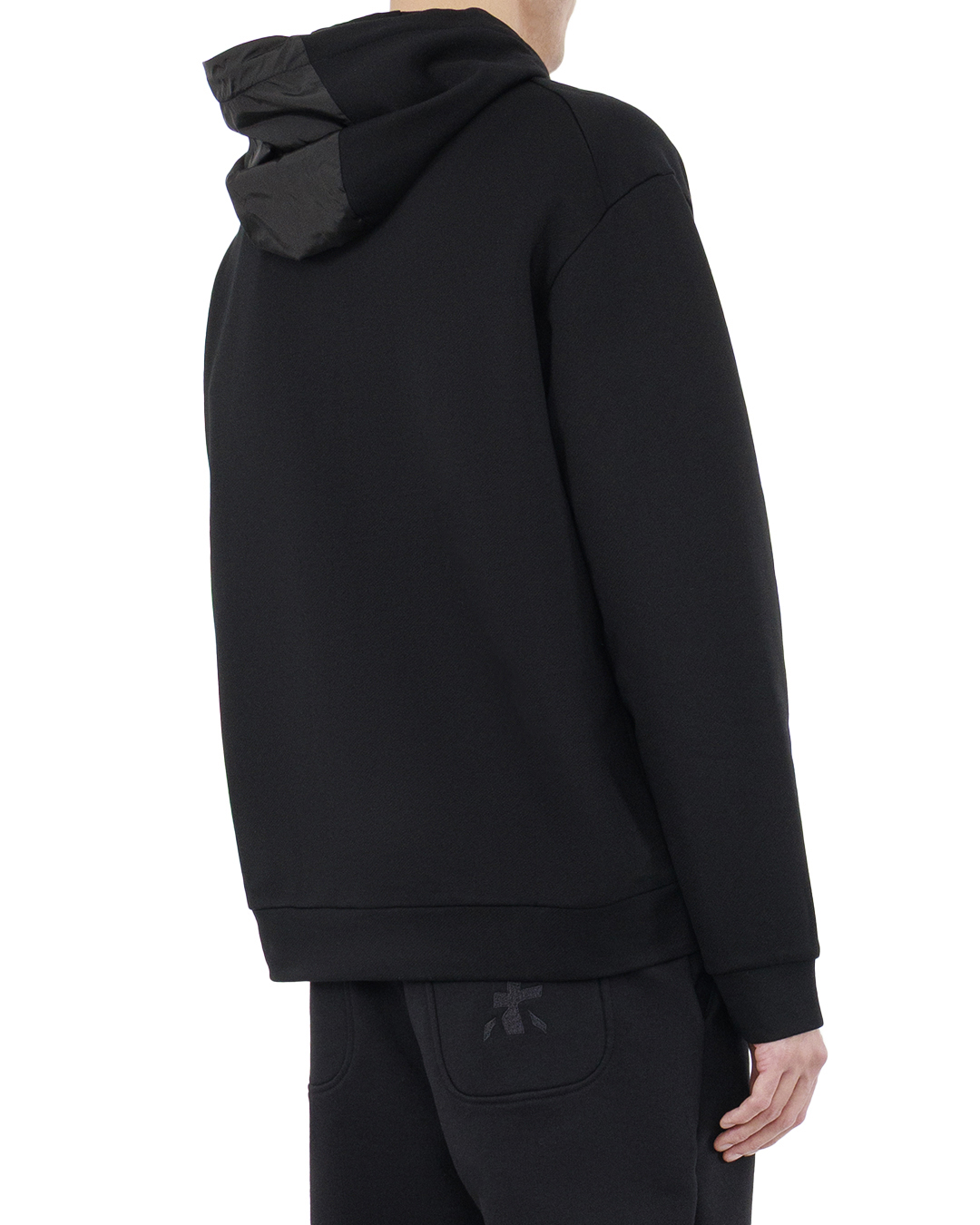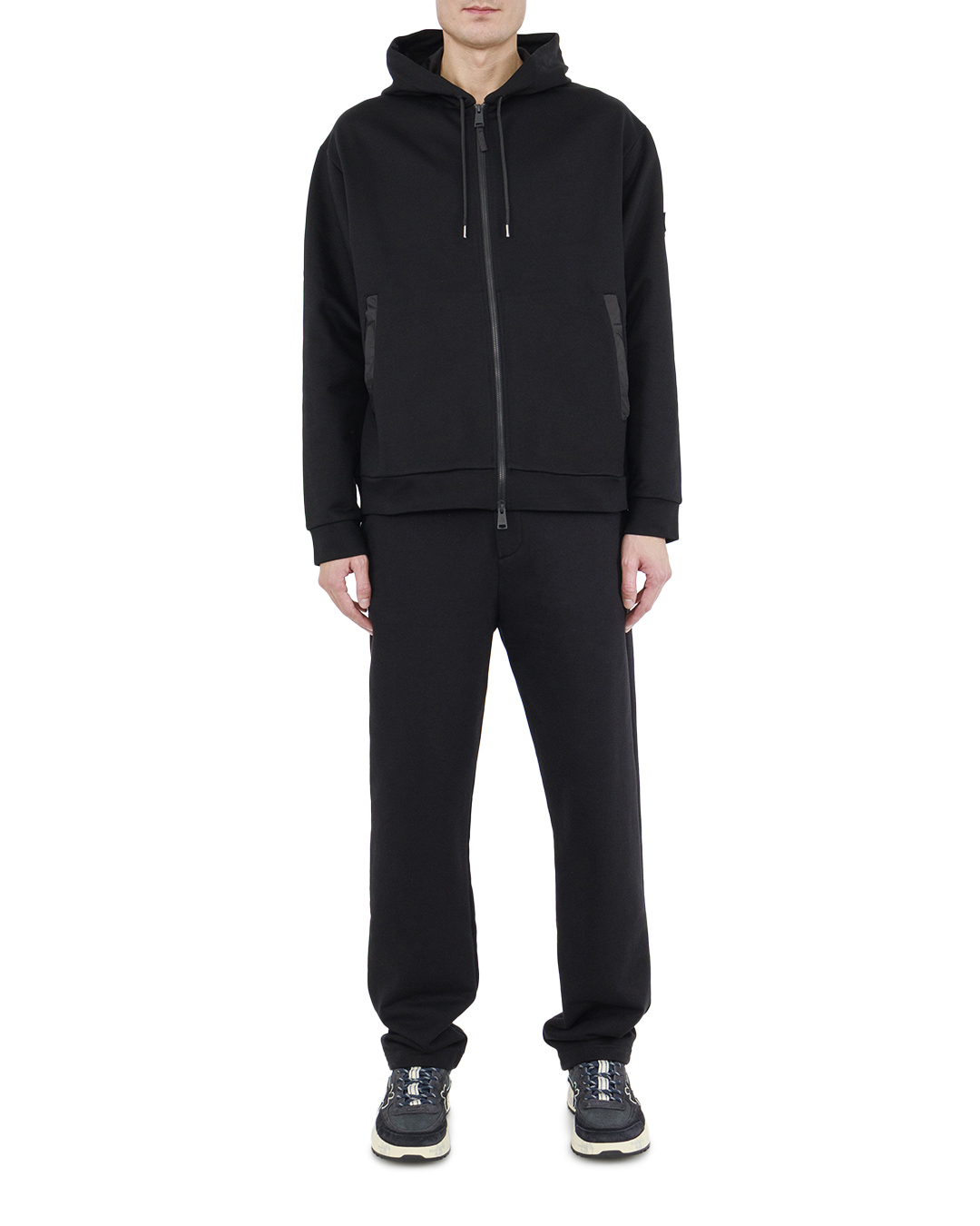Эта олимпийка — квинтэссенция спортивного шика и функционального дизайна. Выполненная из технической ткани высокого качества, она гарантирует комфорт и долговечность, делая её отличным выбором для активного образа жизни. Динамический дизайн с капюшоном добавляет изделию нотки уверенной непринужденности, а регулируемые шнурки позволяют адаптировать посадку в зависимости от погоды и настроения. Центральная молния обеспечивает лёгкость в носке и придаёт модели современный вид. Завершённые резинкой манжеты и подол отлично удерживают тепло, обеспечивая комфортное прилегание и защищая от ветра. Боковые карманы с застёжками предлагают практичное хранение личных вещей и акценты на функциональности. Детали отделки, включая небольшую эмблему на рукаве, добавляют стиля и трендовости, сохраняя при этом общую сдержанность образа. Олимпийка в насыщенном чёрном цвете легко сочетается с различными элементами гардероба, предлагая бесконечные возможности для создания стильных и комфортных аутфитов.