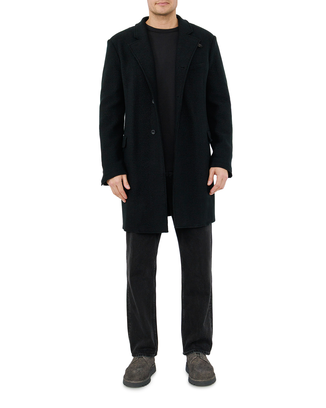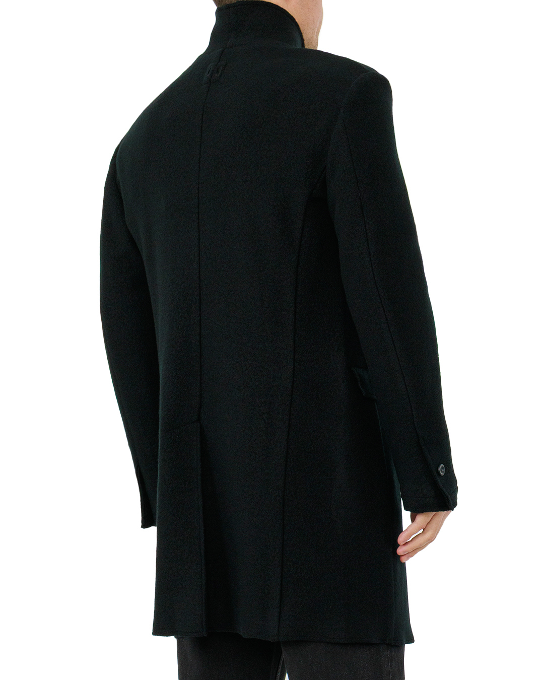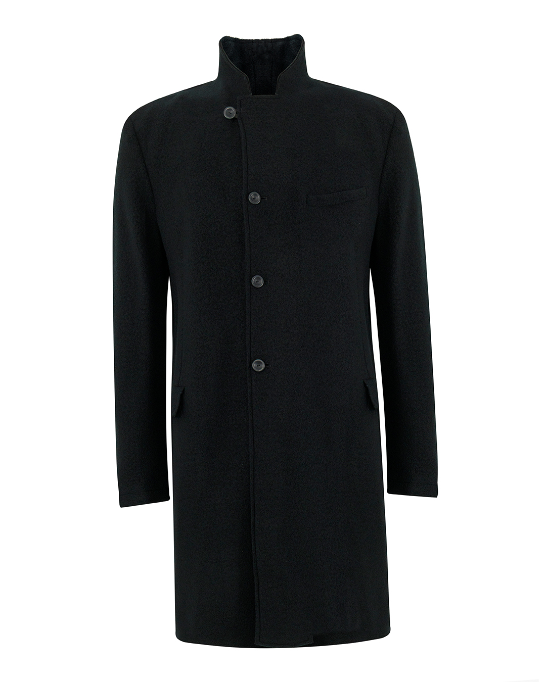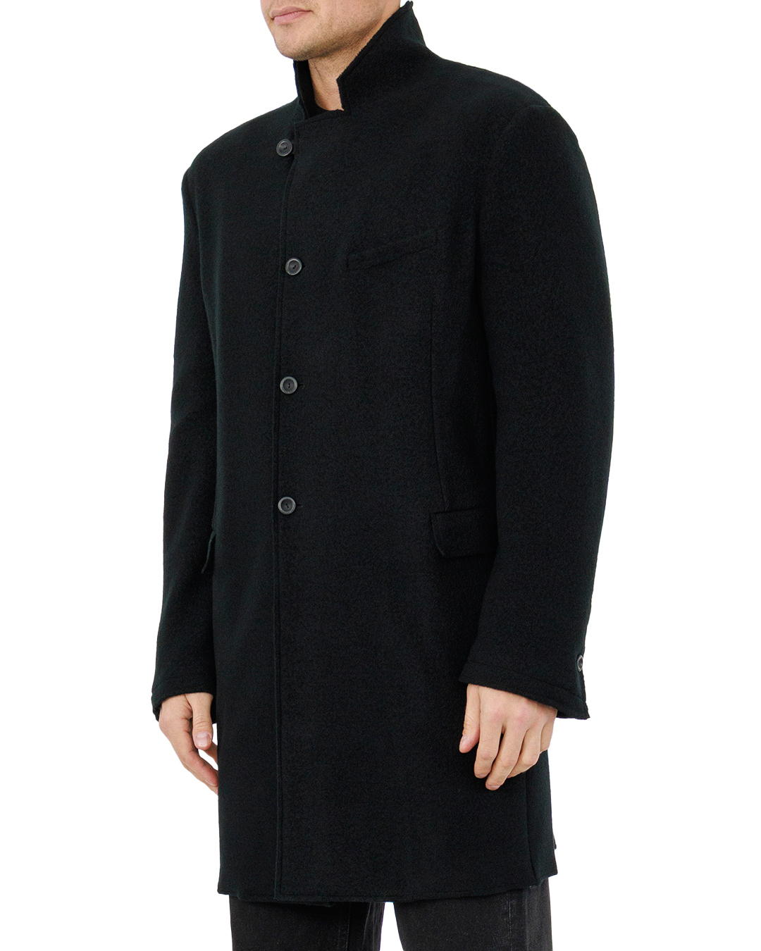 Это пальто — воплощение утончённой элегантности и сдержанной роскоши. Воплощённое в классическом чёрном цвете, оно неизменно актуально и идеально подходит для любого стиля, от делового до вечернего. Силуэт с прямым кроем подчёркивает стройность фигуры, а высококачественная ткань, из которой оно изготовлено, обеспечивает комфорт и тепло в прохладные дни. Воротник-стойка добавляет нотку современного шика и защищает от ветра. Асимметричная застежка на крупные, аккуратно пришитые пуговицы выделяет это пальто, добавляя интересный акцент к общему дизайну. Продуманные детали, такие как прорезные карманы и изящная нагрудная вставка, подчеркивают внимание к мельчайшим нюансам и демонстрируют исключительное мастерство в пошиве. Это пальто станет вашим верным спутником, отражающим безупречный вкус и стремление к изысканности в каждом образе.