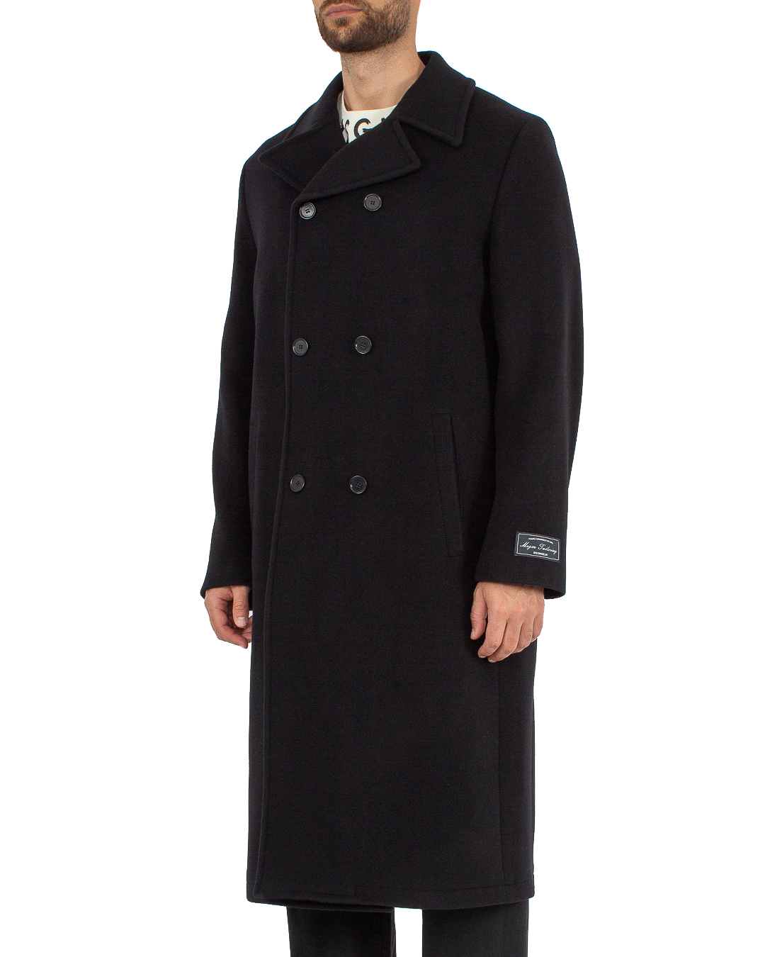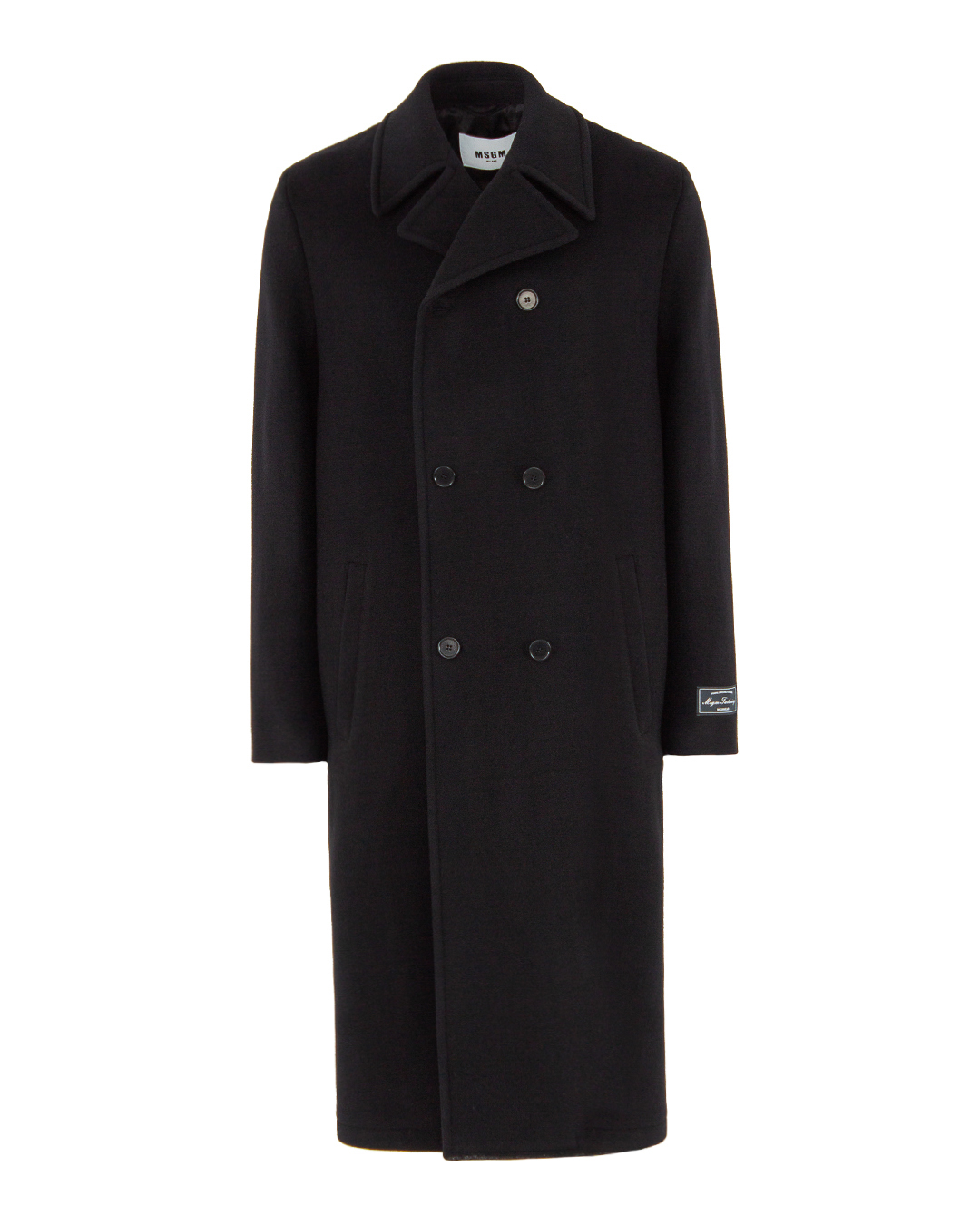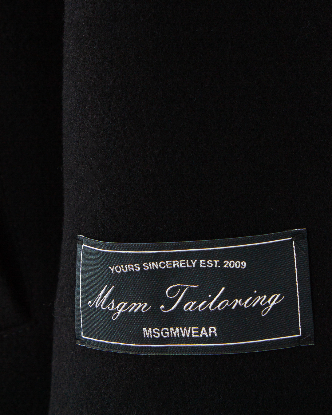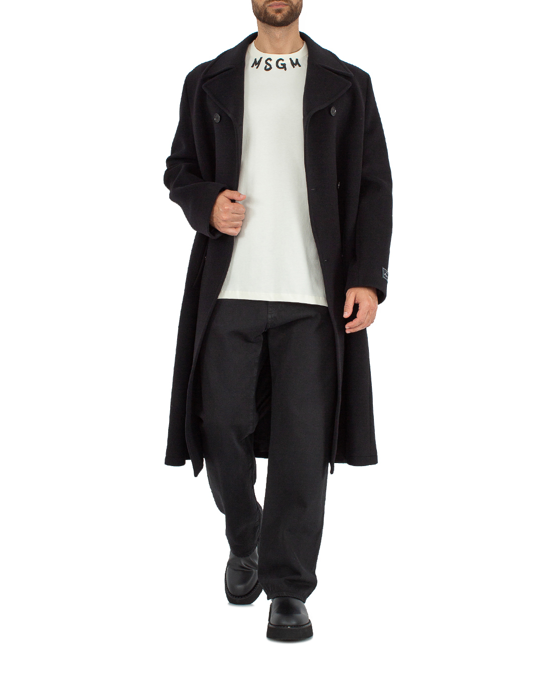 Шерстяное пальто MSGM с патчем на рукаве. Прямой силуэт с застежкой на пуговицы дополнен отложным воротником и двумя карманами по бокам.