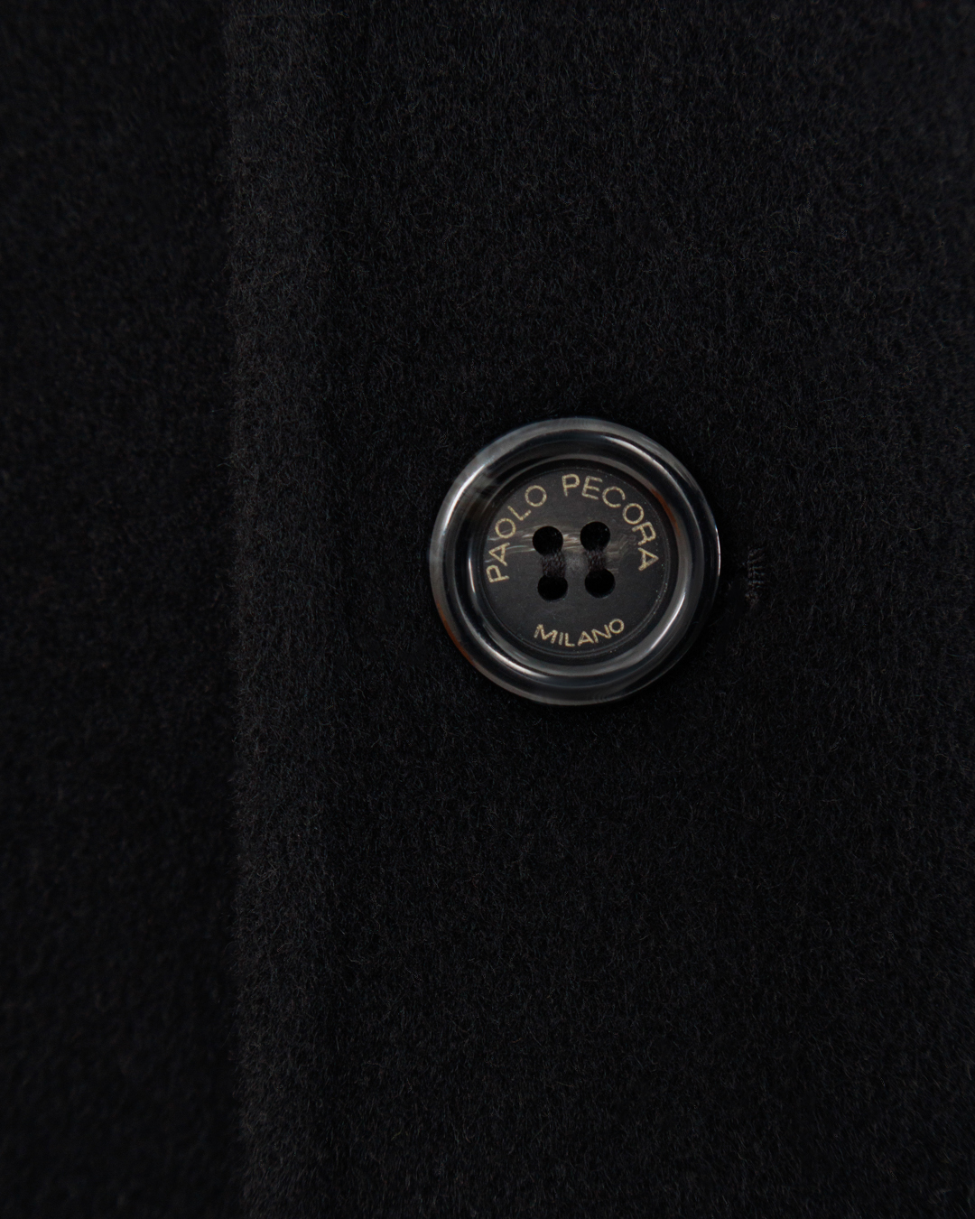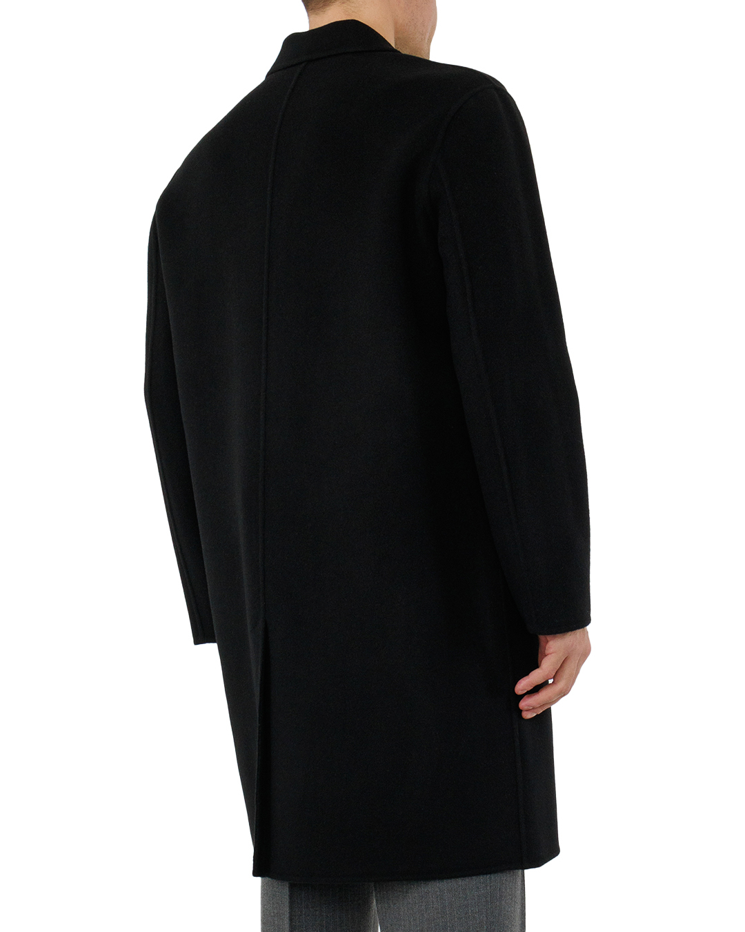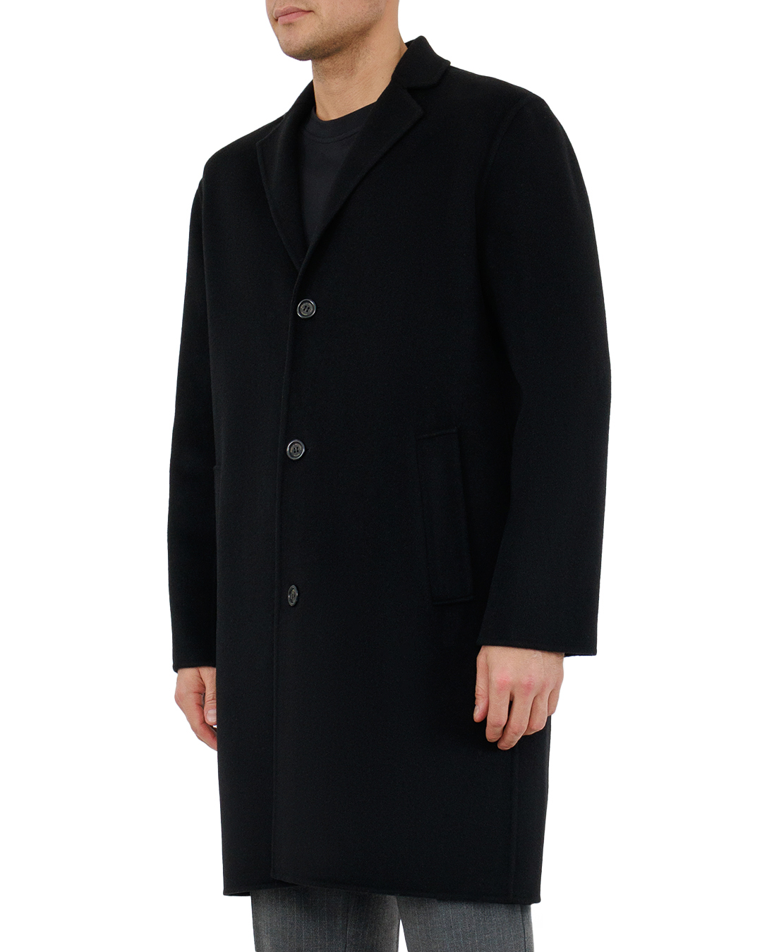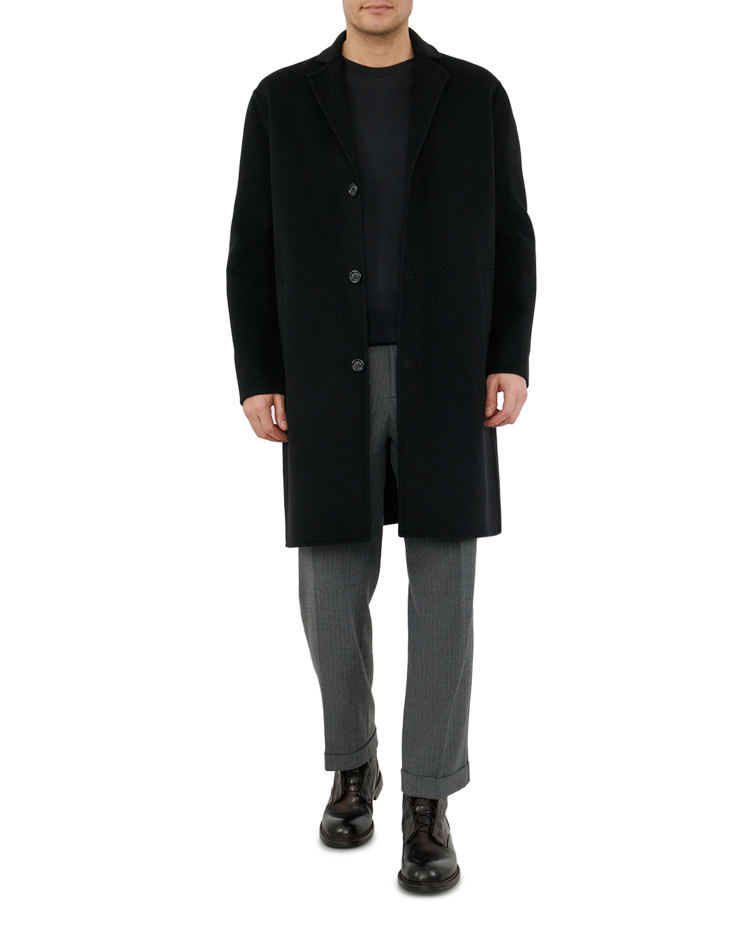 Это пальто — квинтэссенция классической элегантности и современного стиля. Изготовленное из высококачественной шерсти глубокого чёрного оттенка, оно обеспечивает тепло и утончённый вид в любое время года. Традиционный силуэт с прямым кроем создаёт стройный и изысканный образ, идеально подчеркивающий фигуру. Английский воротник добавляет остроту и утонченность, привнося классический акцент и позволяя легко сочетать пальто с шарфами и галстуками. Ряд крупных пуговиц, гармонично контрастирующих с текстурой ткани, добавляют изюминки и подчёркивают внимание к деталям. Боковые карманы с клапанами не только практичны, но и дополняют цельный образ, сохраняя в нём безупречность линий. Внутренние швы тщательно обработаны для создания максимально аккуратной и прочной конструкции, что подчеркнуто лёгкой подкладкой из гладкой ткани, обеспечивающей комфорт и лёгкость в движении. Это пальто идеально впишется как в деловые, так и в повседневные образы, добавляя им аристократичности и изысканности, подчеркивая вашу индивидуальность и чувство стиля.