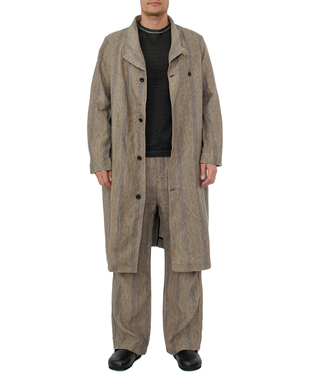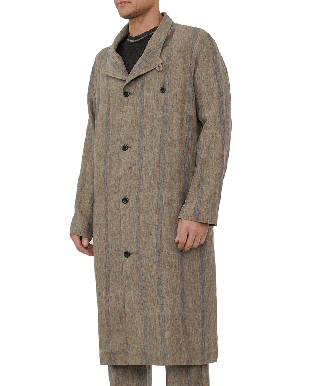 Пальто HANNES ROETHER — это истинное произведение искусства в мире моды, сочетающее в себе элегантность и современность. Тонкие вертикальные полосы в спокойной палитре землистых тонов придают изделию выразительность и утонченность. Сшито из высококачественного, дышащего материала, пальто обладает легкостью и комфортом, создавая ощущение свободы в каждом движении. Удлинённый фасон придаёт образу изысканность, а строгий прямой крой подчеркивает статус и стиль. Стоячий воротник добавляет нотку авангардной привлекательности, а асимметричная застёжка на пуговицы акцентирует внимание на деталях, создавая утонченный силуэт. Просторные карманы не только практичны, но и интегрированы в общий дизайн с безупречным вкусом. Это пальто станет вашим надёжным спутником в создании стильных и запоминающихся образов, подчеркивающих вашу индивидуальность и уверенность.