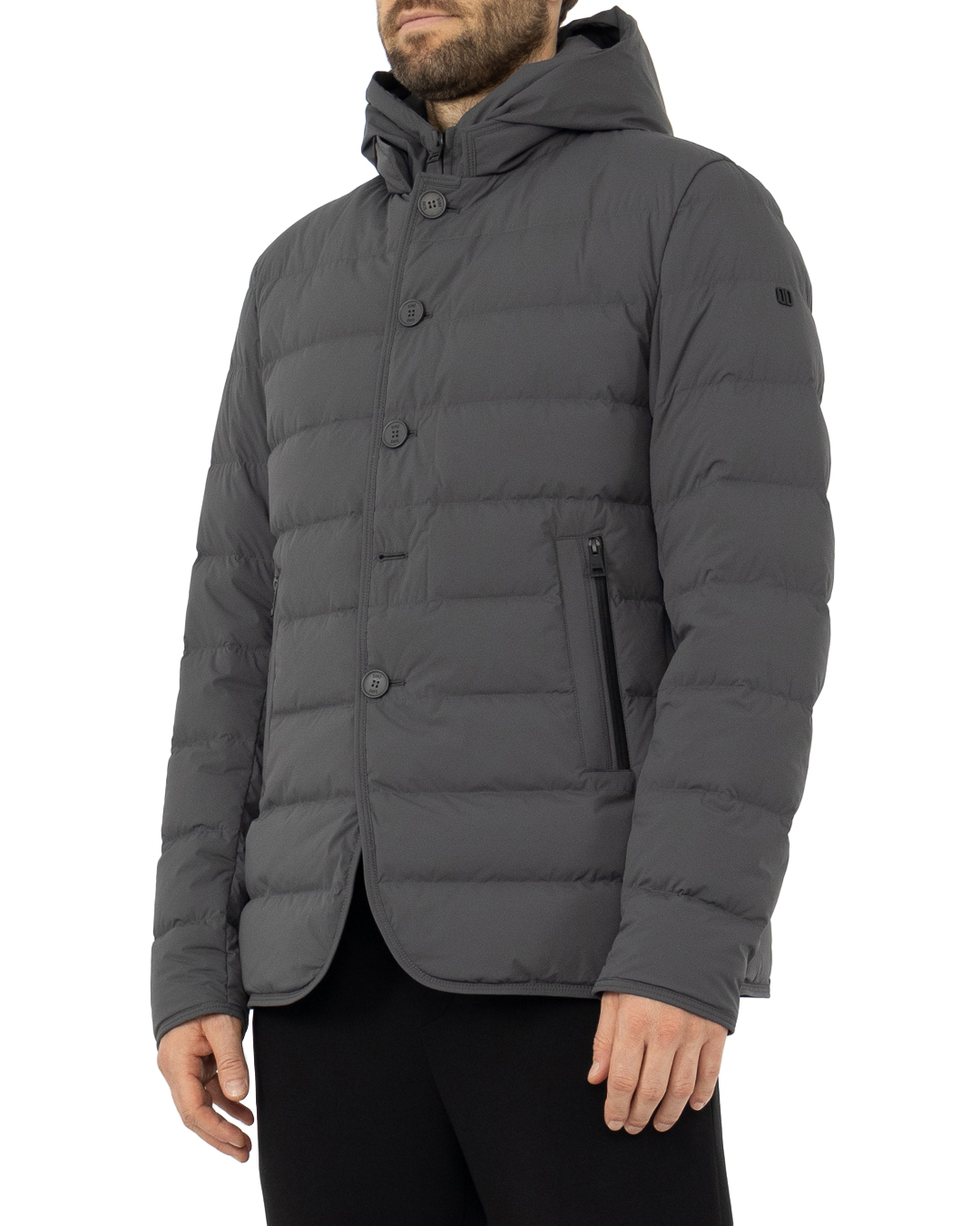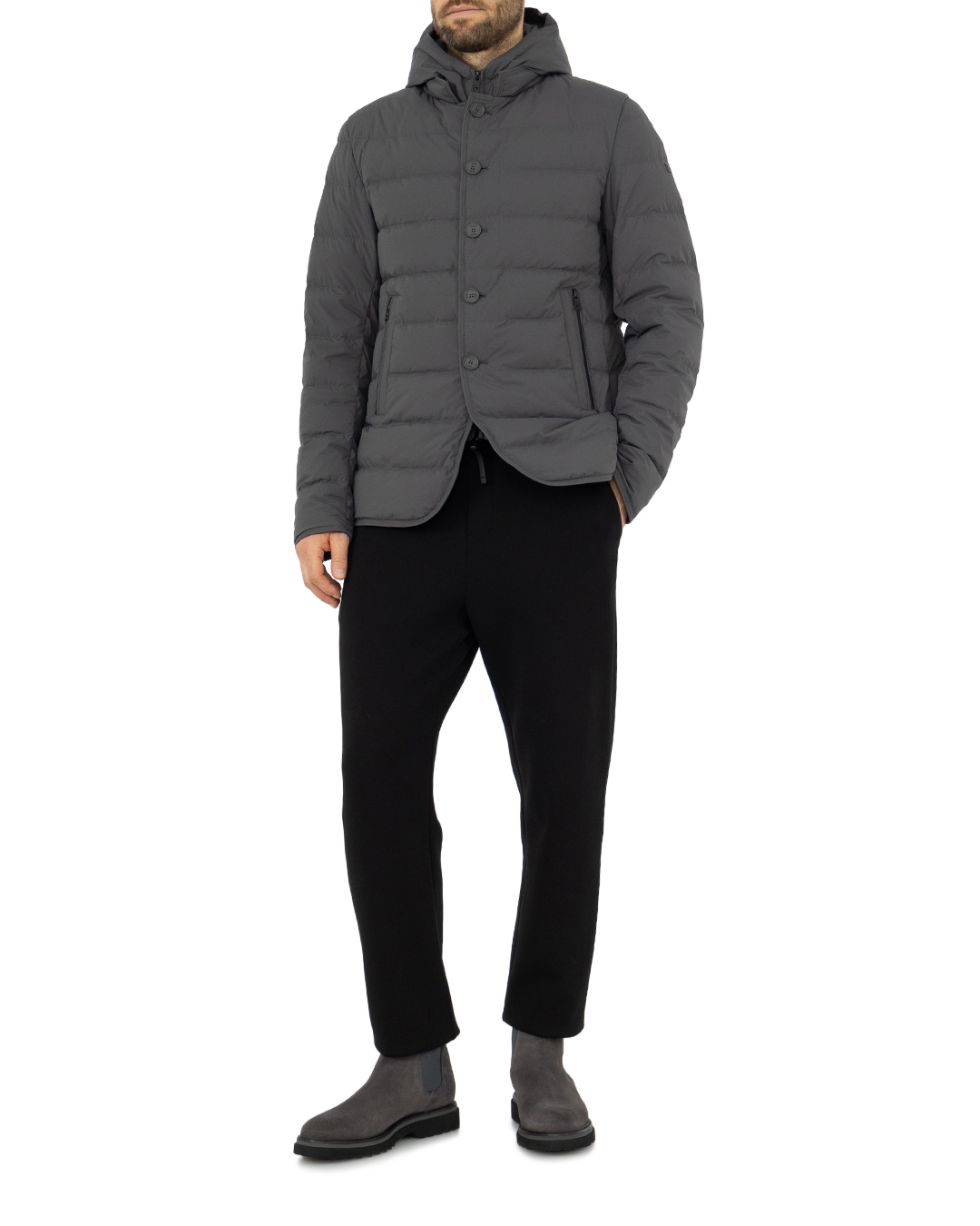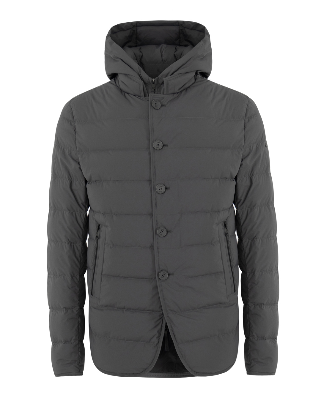 Стеганый пуховик DUNO из прочного нейлона сшита в классическом стиле. Модель прямого силуэта с застежкой на пуговицы с двумя карманами по бокам и капюшоном.