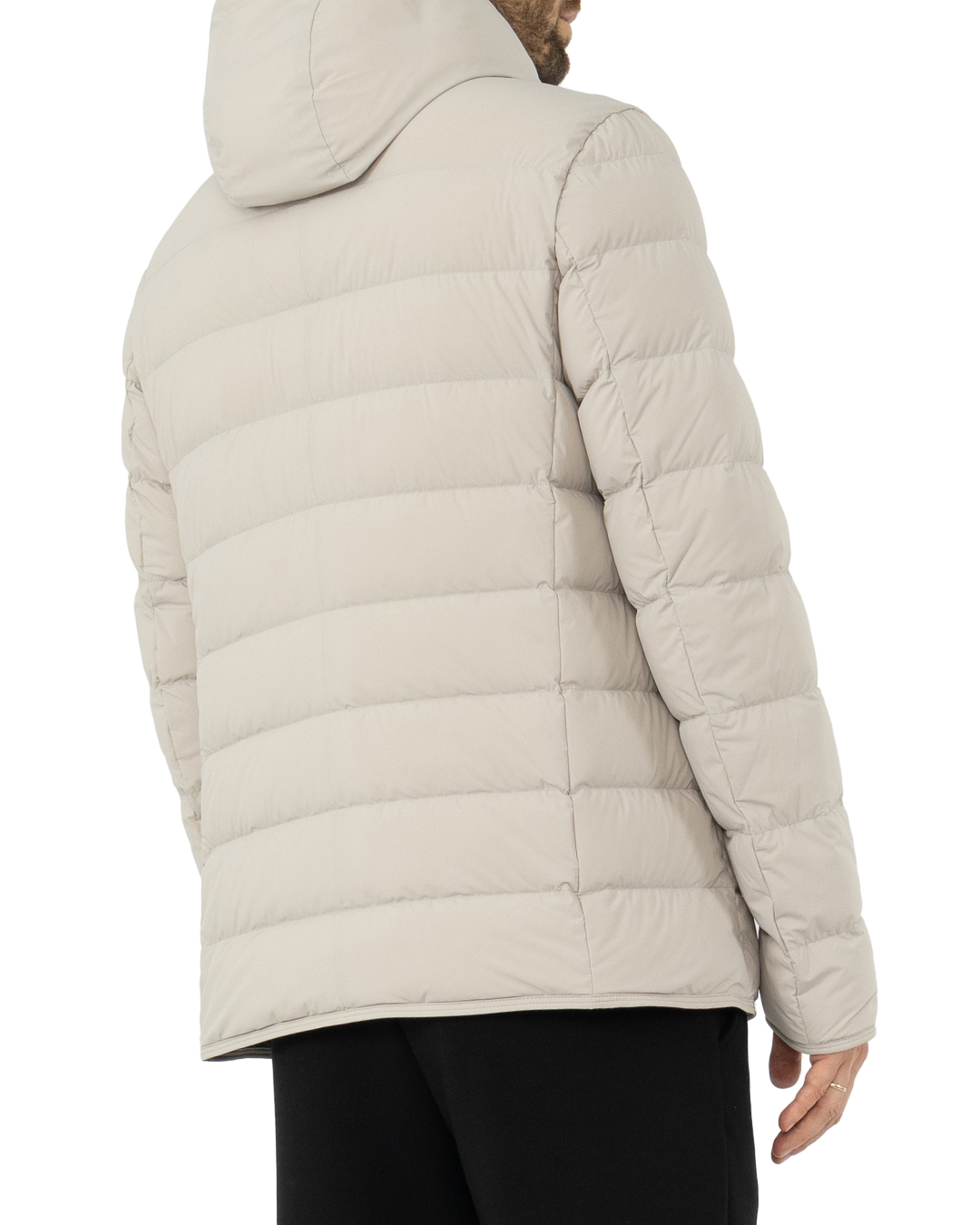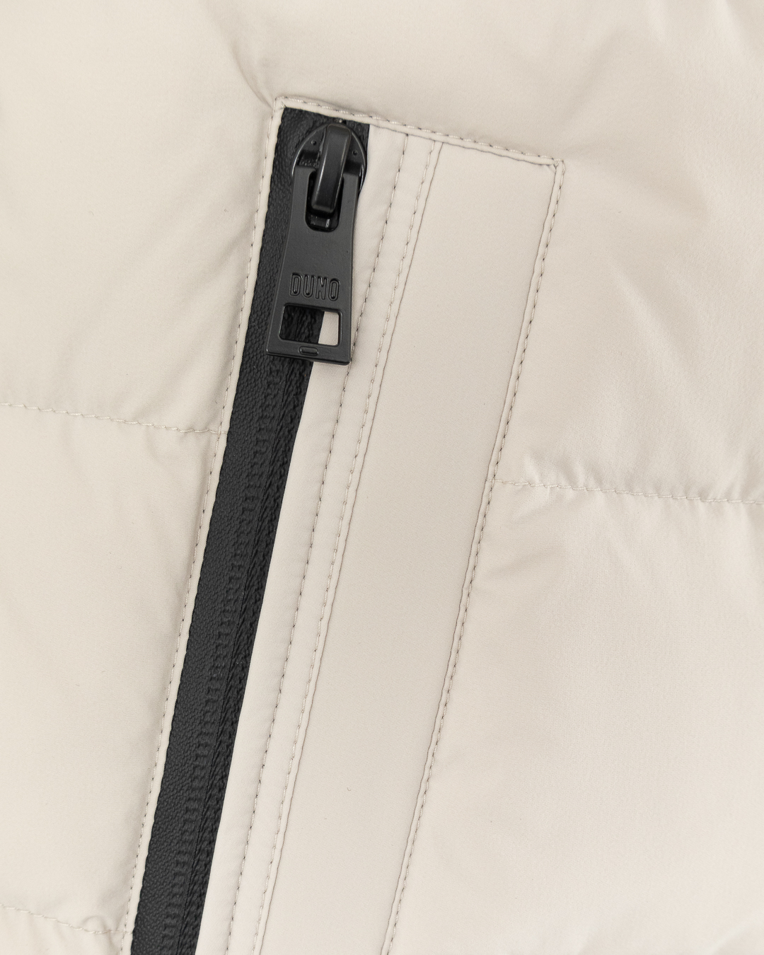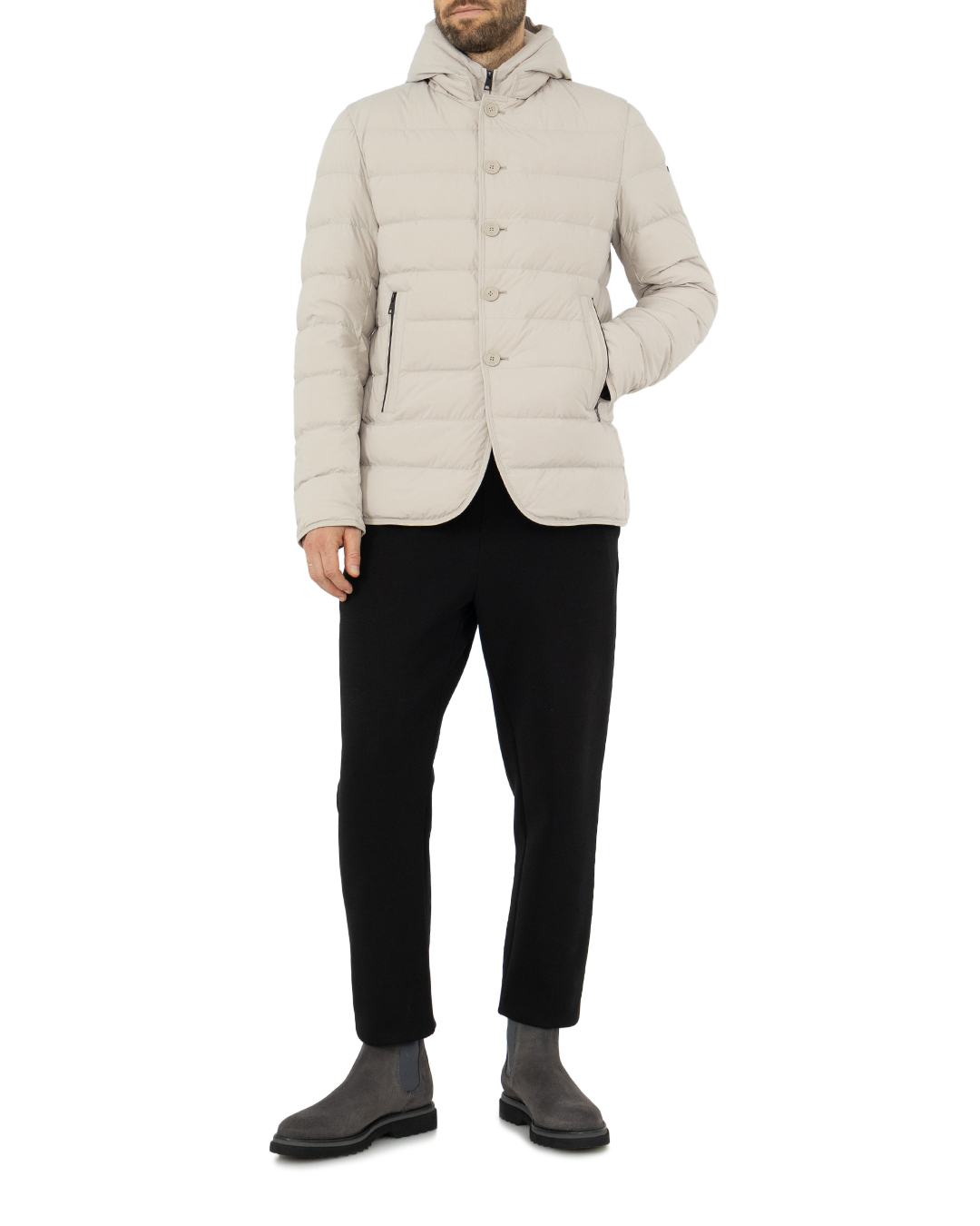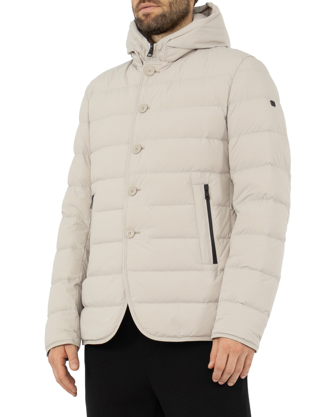 Стеганый пуховик DUNO из прочного нейлона сшита в классическом стиле. Модель прямого силуэта с застежкой на пуговицы с двумя карманами по бокам и капюшоном.