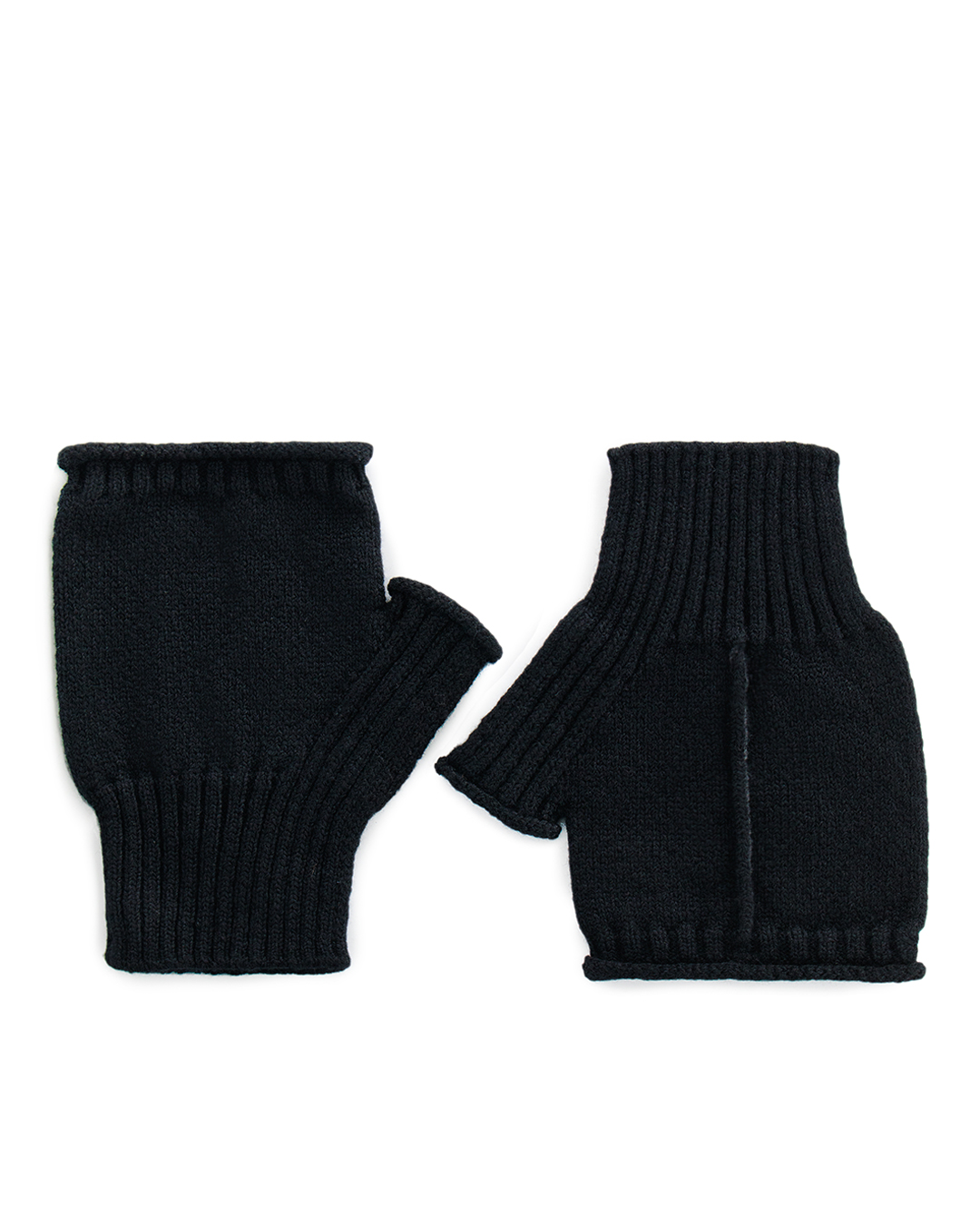Эти митенки — воплощение функциональной элегантности и современного стиля. Выполненные из мягкой и уютной пряжи, они обеспечивают тепло и комфорт, при этом оставляя пальцы свободными для маневренности и уверенности в движениях.  Классический черный цвет подчеркивает универсальность модели, делая их подходящими для любого гардероба. Гладкая текстура ткани с легким трикотажным узором добавляет визуальную привлекательность, создавая изысканную и лаконичную эстетику.  Манжеты снабжены аккуратной резинкой в рубчик, что обеспечивает плотное прилегание к запястью, удерживая тепло и подчеркивая четкость форм. Открытый дизайн для пальцев не только практичен, но и добавляет динамичный акцент к образу.  Эти митенки идеально сочетают в себе стиль и удобство, прекрасно дополняя как повседневные прогулочные, так и более городские образы, добавляя нотку индивидуальности и выразительности в любой наряд.