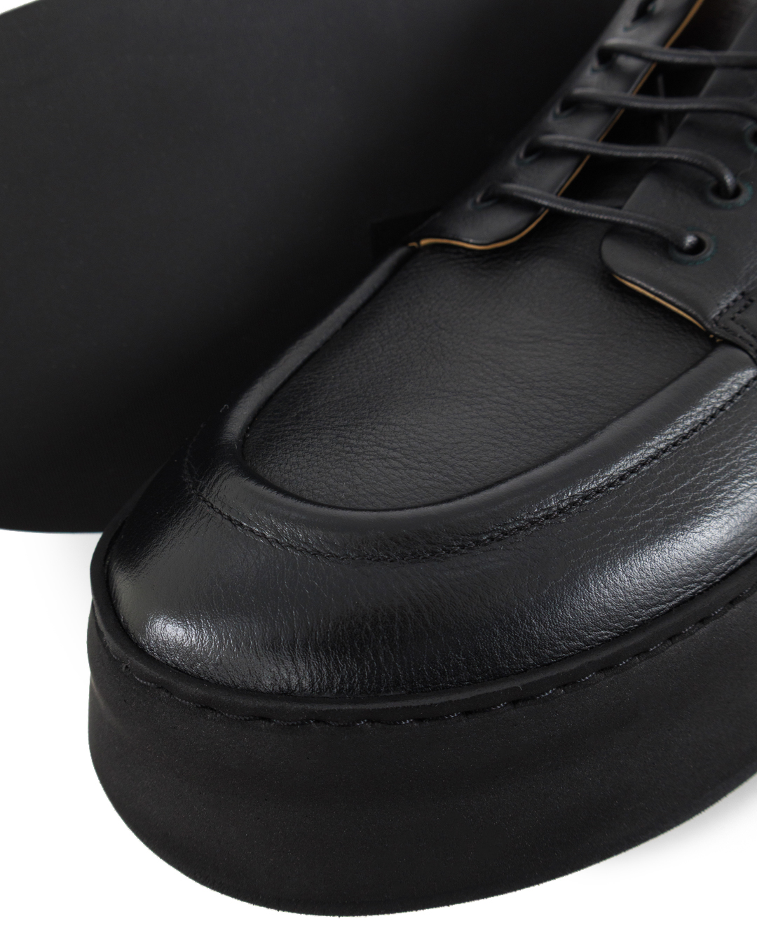 Эти ботинки представляют собой непревзойденное сочетание инновационного дизайна и утонченной классики, выполненное в глубоких черных тонах. Изготовленные из высококачественной натуральной кожи, они подчеркивают изысканность и обеспечивают долговечность. Элегантный минимализм форм сочетается с акцентом на массивную подошву, добавляющей современности и визуальной стойкости. Подошва выполнена из лёгкого материала, что гарантирует комфорт при любом передвижении и привносит в образ элементы урбанистического стиля. Верхняя часть украшена лаконичной шнуровкой, обеспечивающей плотное прилегание и функциональность, а также подчеркивающей строгие линии дизайна. Дополнительная деталь — мягкий, немного приподнятый кант вокруг щиколотки, который добавляет комфорта и стиля. Классическая строчка подчеркивает внимание к деталям и высокий уровень мастерства, обеспечивая непревзойденное качество. Внутренняя отделка из кожи способствует идеальному климату для ног, поддерживая оптимальную температуру и создавая комфортные ощущения. Эти ботинки идеальны для создания образов в стиле casual и smart-casual, становясь стильным акцентом в любой коллекции.