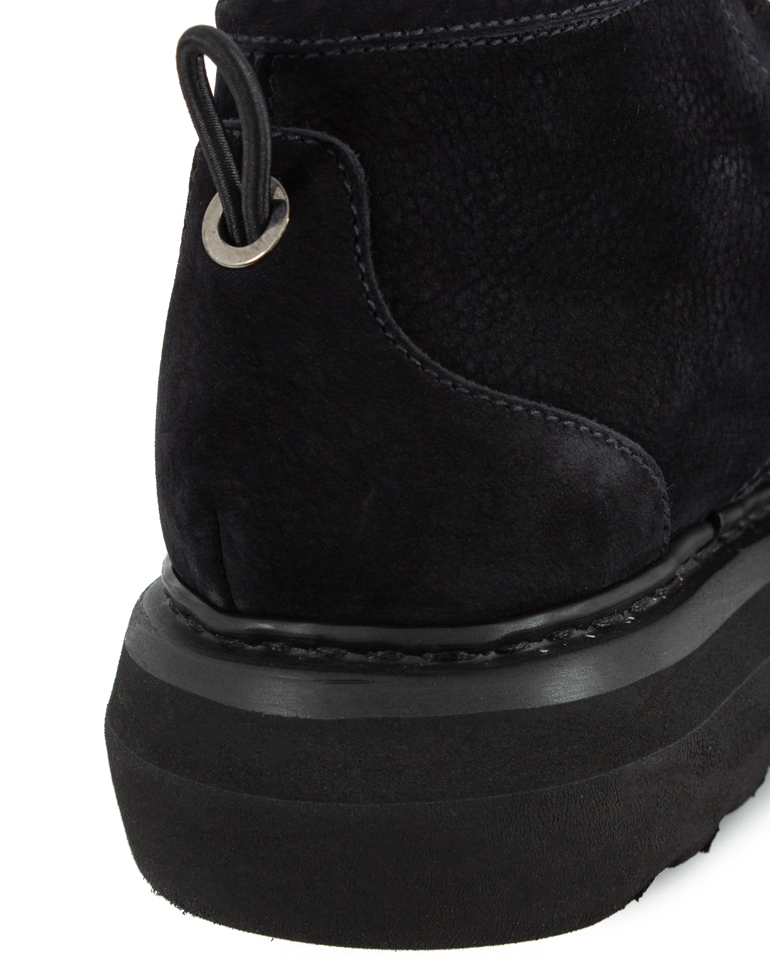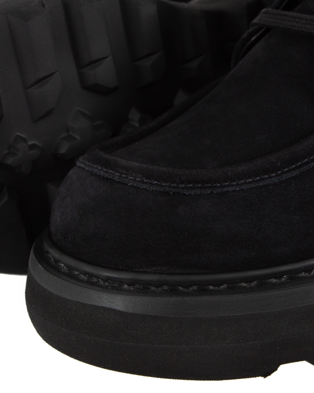 Ботинки Premiata из натуральной замшевой кожи. Массивная пара с закругленным мысом и полукруглыми швами. Обувь на жесткой широкой подошве с прошитым рантом и протектором.