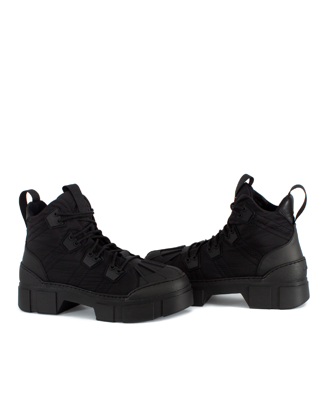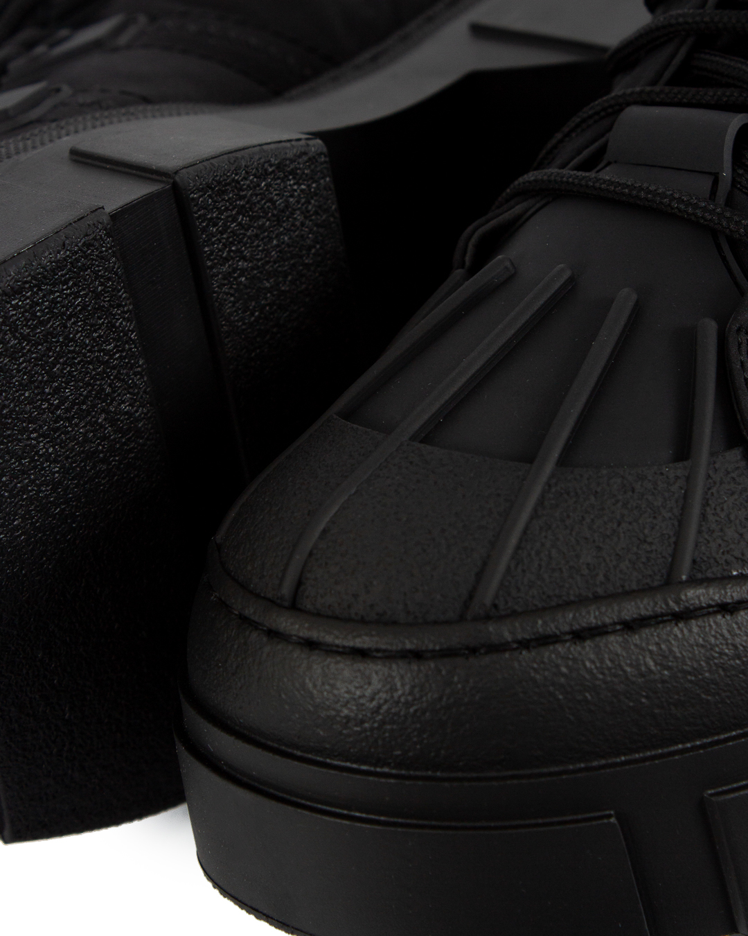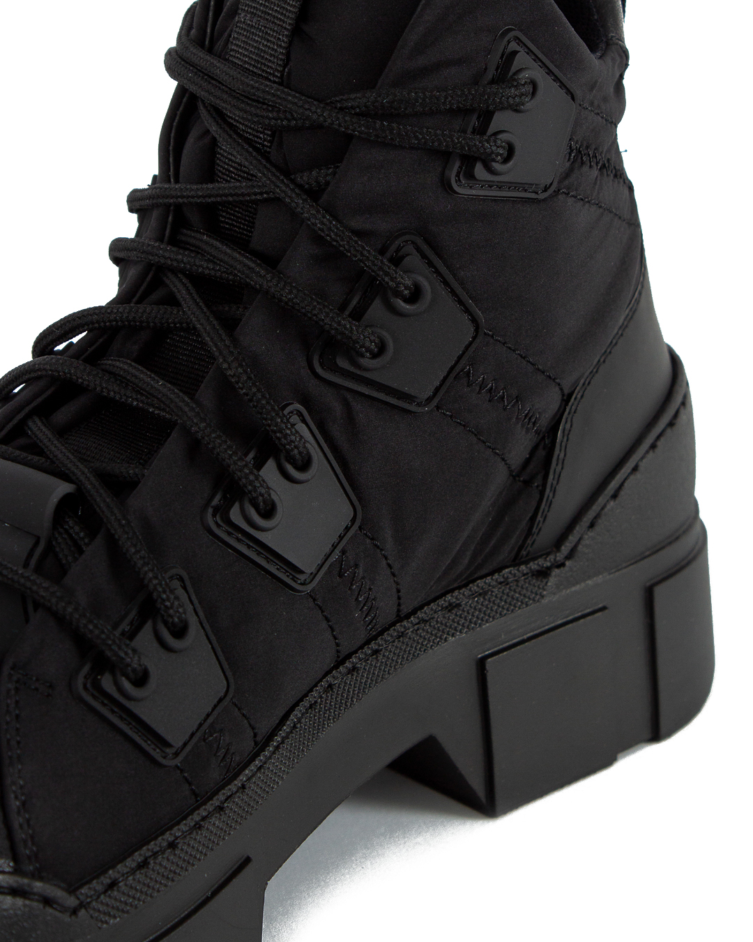 Ботинки VIC MATIE из прочного нейлона черного цвета. Пара на шнуровке дополнена петлей для удобства. Толстая резиновая подошва и прошитый рант.