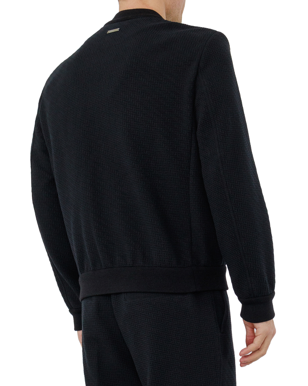Этот бомбер воплощает гармонию между классической элегантностью и современной урбанистической эстетикой. Тщательно изготовленный из высококачественной ткани с тонкой текстурой, он предлагает ненавязчивый, но захватывающий визуальный акцент. Круглый воротник-стойка обеспечивает отличный силуэт и подчеркивает линию шеи, добавляя изысканность общему облику. Центральная застежка-молния отличается гладкостью работы и выполнена из премиальных материалов, что свидетельствует о внимании к деталям. Манжеты и нижний край бомбера оснащены эластичными вставками, что обеспечивает идеальную посадку и подчеркивает спортивный характер изделия. Эти элементы, выполненные в тон остальной части, акцентируют уверенность и стиль владельца. Тщательно спроектированные плечевые швы создают четкую контурную линию, внося в образ нотку утонченной строгости. Деликатная внутренняя подкладка добавляет комфорт и повышает долговечность изделия. Этот бомбер прекрасно адаптируется к разным стилевым направлениям, от расслабленной небрежности до сдержанной деловитости, гарантируя вам изысканный вид в любой ситуации.