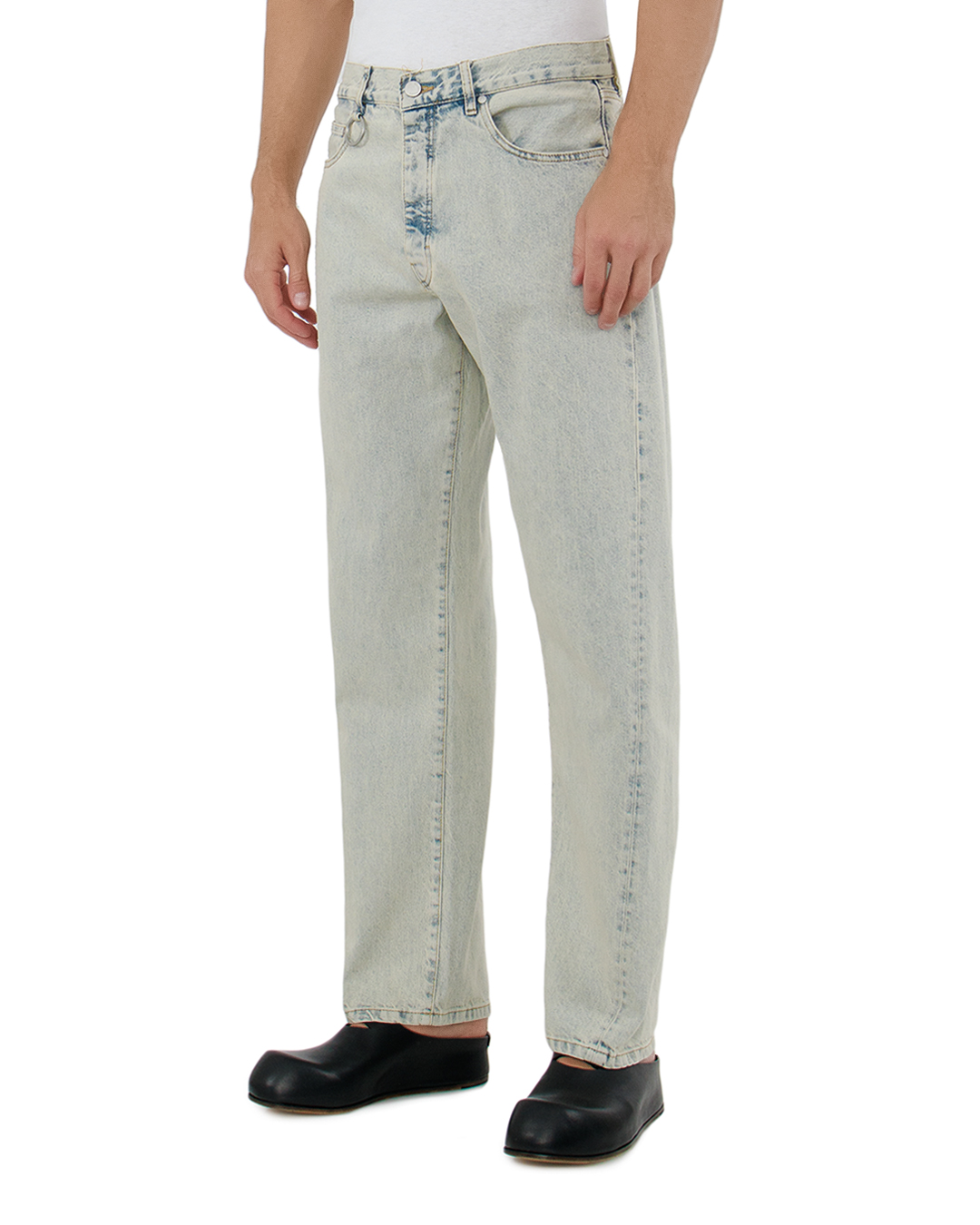 Эти джинсы — утонченный баланс между классикой и современностью, идеально подходящий для создания стильных и универсальных ансамблей. Свежий светлый оттенок денима придает изделию непринужденную легкость и воздушность. Прямой крой с высокой посадкой элегантно подчеркивает фигуру, создавая стройный и современный силуэт. Этот стиль подчеркивает минимализм и легкость, что делает джинсы актуальными вне времени. Изюминкой изделия является декоративное кольцо на поясе, добавляющее стильный акцент и современную нотку. Тонкие потёртости и светлая отделка создают эффект нежного винтажного характера, добавляя глубину и текстуру. Высококлассная прострочка и прочные швы гарантируют долговечность, оставаясь при этом комфортными в носке. Эти джинсы великолепно комбинируются с различными элементами гардероба, от структурированных жакетов до мягких свитеров, создавая многослойные и стильные образы для любого случая.