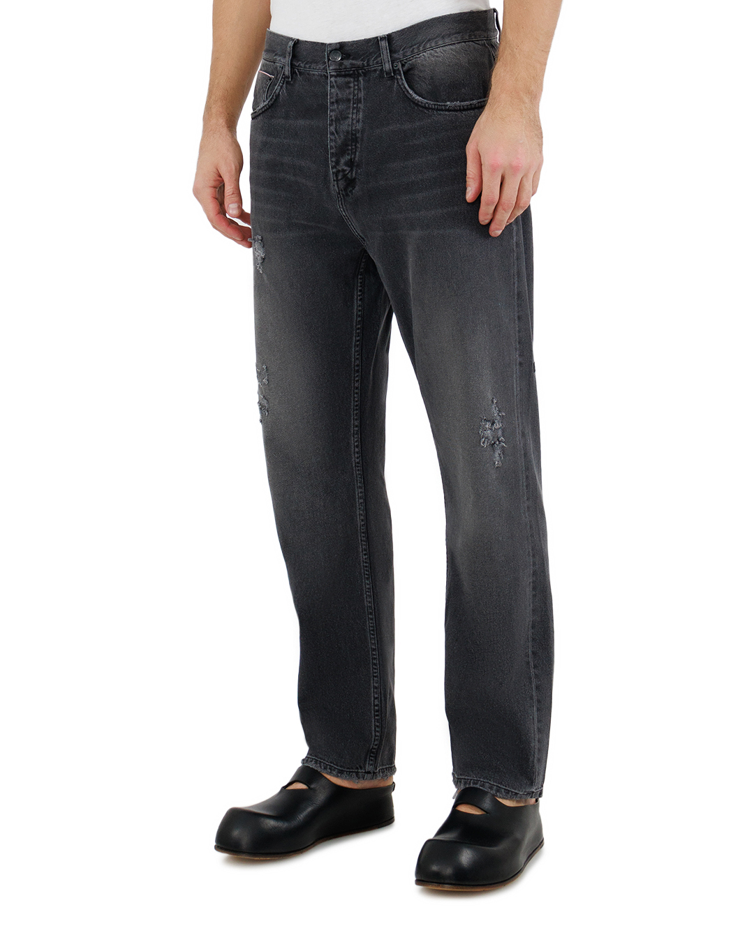 Эти джинсы — истинный символ городской элегантности и непринужденности, выполненные в стильном темно-сером дениме. Они созданы для тех, кто ценит современный стиль с налетом винтажности. Свободный крой этих джинсов создает расслабленный и изысканный силуэт, прекрасно подходящий для создания модных casual образов. Аккуратные потертости и искусственные разрывы добавляют изделию характер и индивидуальность, подчеркивая эффект естественности и подчеркивая стиль grunge. Ткань изготовлена из премиального денима, обеспечивающего долговечность и комфорт, что делает эти джинсы идеальными для ежедневной носки. По бокам расположены традиционные карманы, добавляющие элемент классической функциональности и практичности. Застежка на молнию и пуговицу обеспечивает удобство и надежную посадку, в то время как шлёвки на поясе позволяют дополнять джинсы ремнем для создания завершенного образа. Каждая деталь, от продуманных швов до эффектной обработки ткани, говорит о высоком качестве и продуманности дизайна, предлагая идеальный баланс между комфортом и стилем.