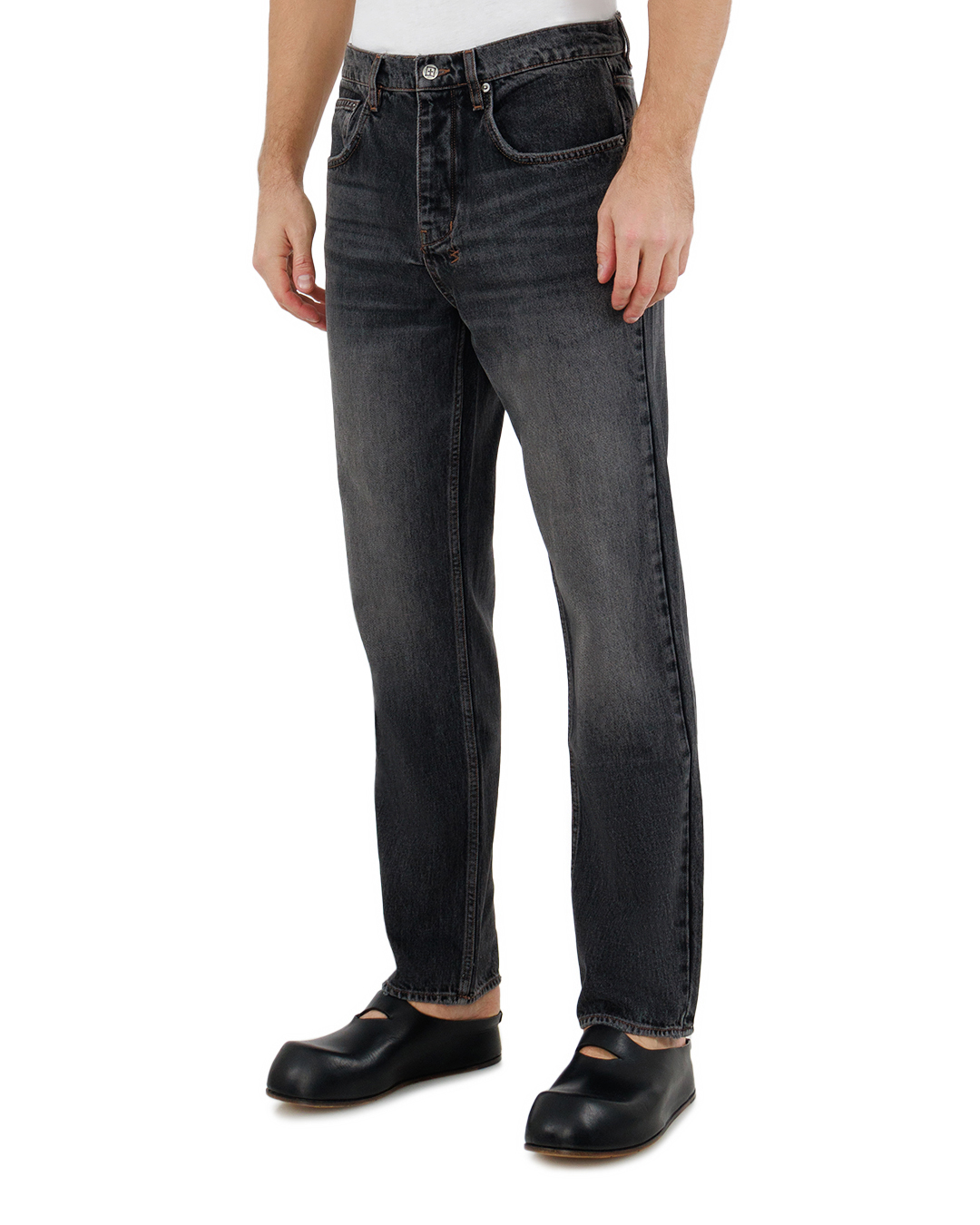 Эти джинсы — истинное воплощение современного стиля и утонченной классики, представленные в элегантном темно-сером оттенке. Выполненные из высококачественного денима, они сочетают в себе долговечность и комфорт, оставаясь актуальными в течение многих сезонов. Прямой крой создает стройный и универсальный силуэт, который подходит для любых обстоятельств — от повседневной жизни до более формальных событий. Плавные линии переходов и состаренный эффект добавляют уникальную фактуру и глубину, подчёркивая модный характер изделия. Классическая пятерка карманов обеспечивает не только практичность, но и стильную традиционность, внося ноту винтажного очарования. Каждый шов выполнен с тщательностью и вниманием к деталям, подчеркивая высокое качество пошива и продуманность дизайна. Пояс с шлёвками для ремня и прочная застежка на молнию и пуговицу обеспечивают надежную посадку и регулируемость, позволяя адаптироваться к индивидуальным особенностям фигуры.