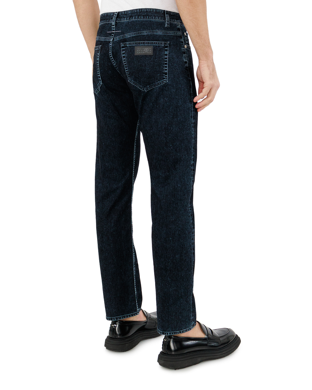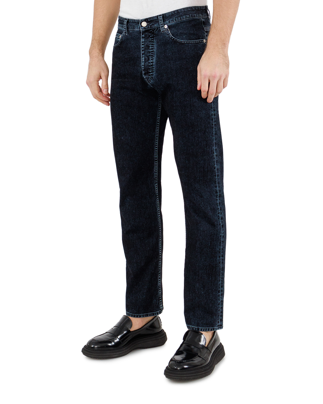 Эти джинсы представляют собой классическую модель в лаконичном, насыщенном тёмно-синем дениме, который идеально дополняет образ современного стиля. Ткань обладает умеренной плотностью, что обеспечивает как комфорт, так и износостойкость. Крой прямой, что добавляет универсальности и позволяет сочетать их с разными элементами гардероба. Пояс оформлен шлевками для ремня, аккуратно переходящими в традиционную пятирублевую систему карманов, что придаёт модели функциональность. Застёжка выполнена в виде крепкой металлической молнии и пуговицы, которые подчёркивают солидность и долговечность изделия. Металлические клёпки на карманах добавляют нотку брутальности и обеспечивают дополнительное укрепление. Отделочные швы выполнены в светлом контрастном цвете, акцентирующие внимание на фасоне и создающие визуальную стройность. Эти джинсы — отличный образец баланса между классическим исполнением и современными тенденциями, создавая основу для безупречного образа.