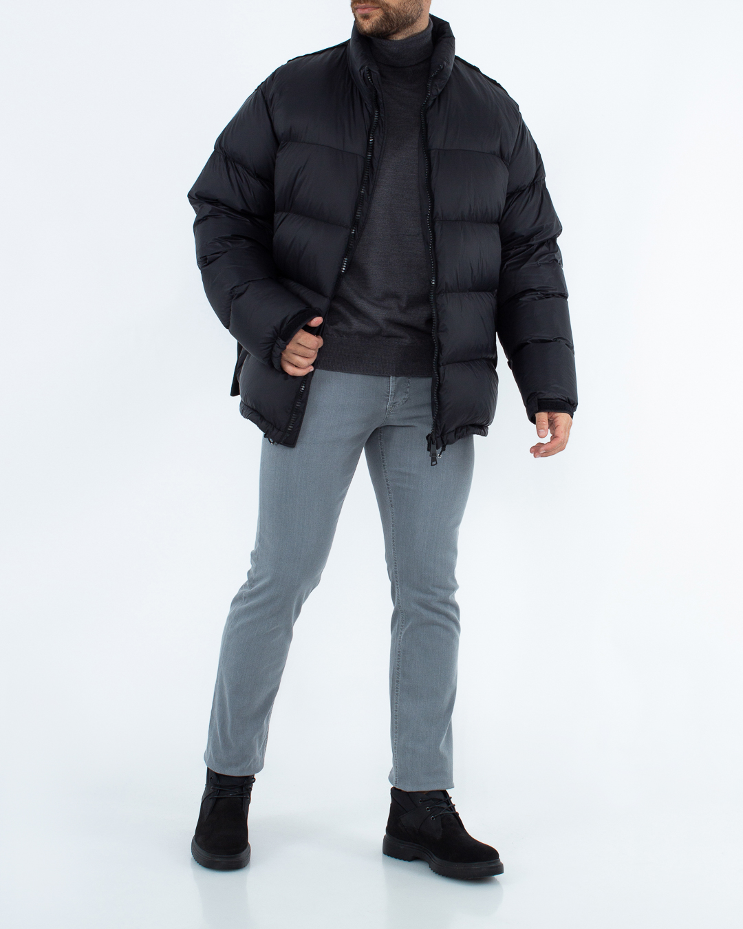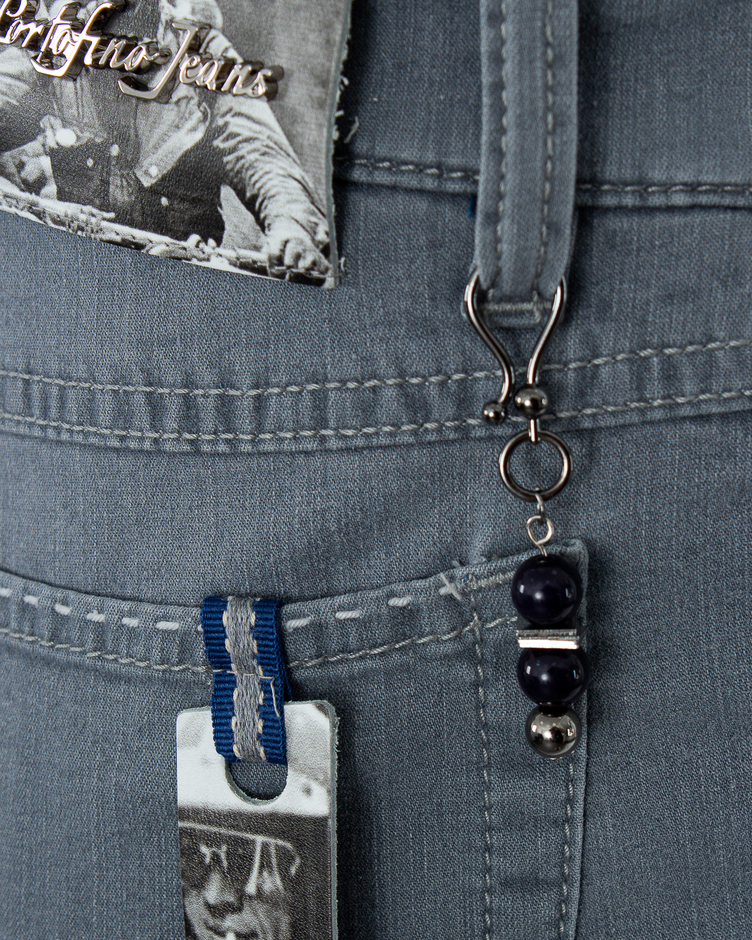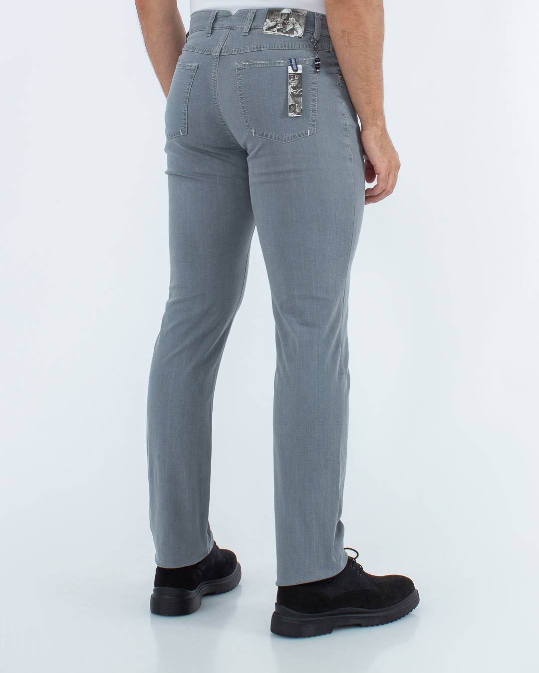Мужские джинсы из хлопкового денима с брелоком и платком. Модель прямого силуэта с комфортной посадкой и застежкой на молнию и пуговицу. Джинсы с классическими пятью карманами.