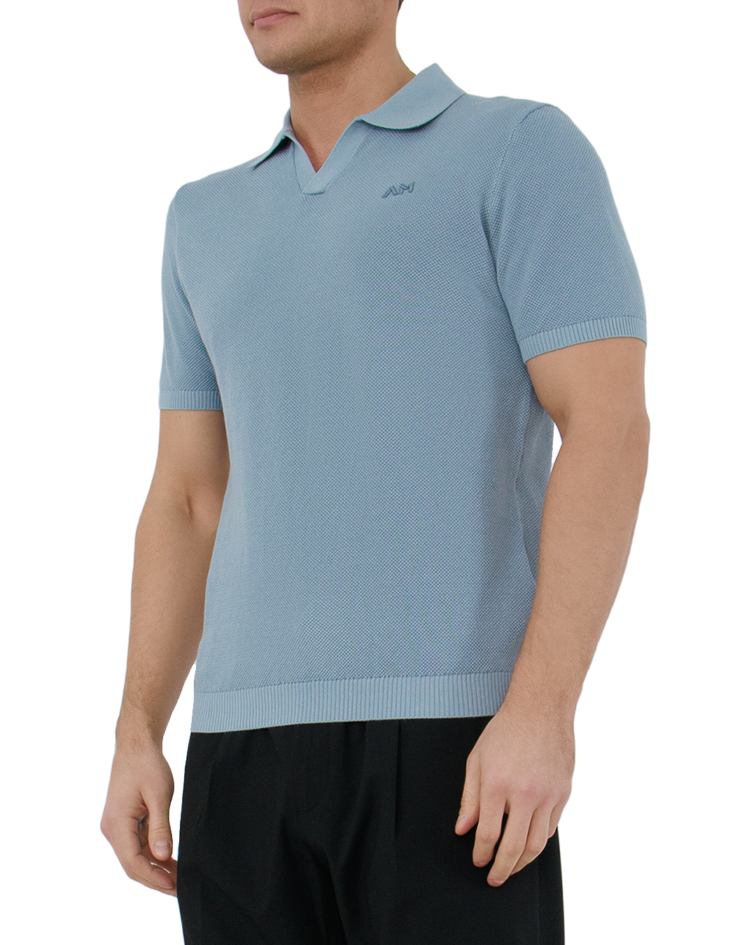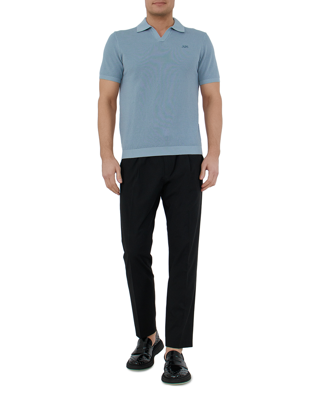 Поло Antony Morato из трикотажного хлопка. Эластичное изделие облегающего силуэта с V-образным вырезом и отложным воротником. Уплотненная отделка линии низа. Модель подходит для создания элегантного повседневного образа.