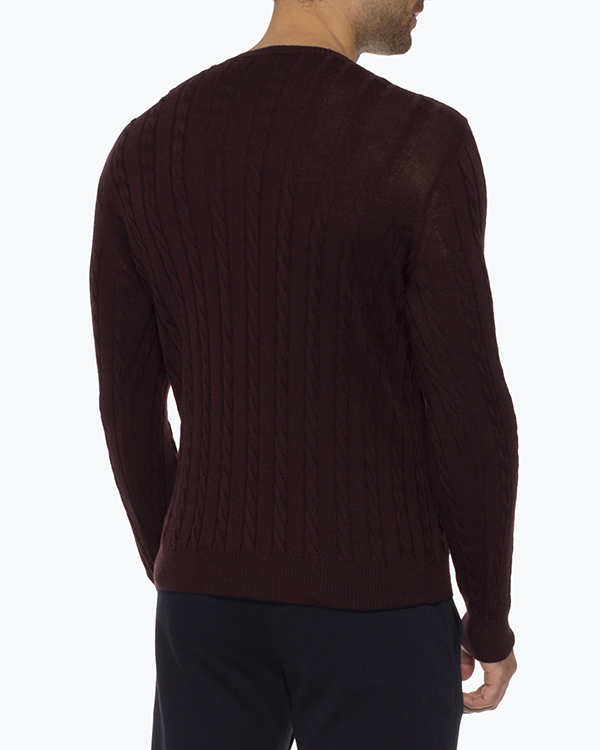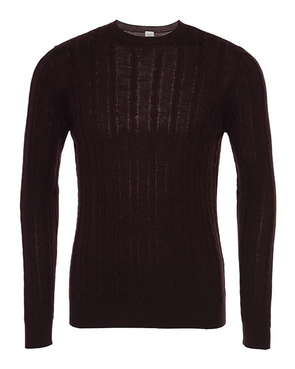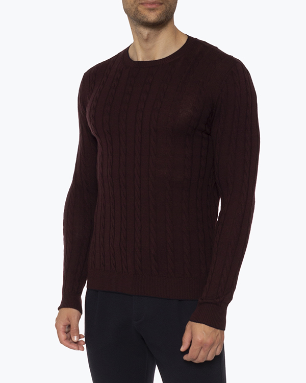 Мужской джемпер из вязаной шерсти бордового оттенка. Модель прилегающего силуэта с комфортной посадкой.