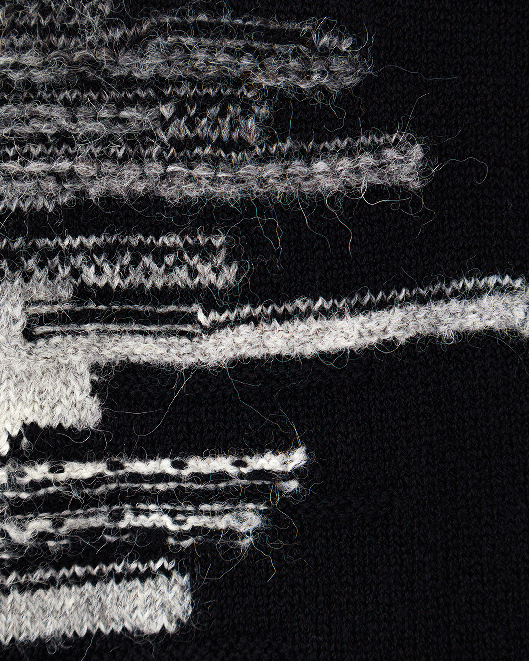 Этот джемпер — истинное произведение искусства, воплощающее современный подход к классическому стилю. Выполненный из мягкого и нежного трикотажа, он дарит ощущение уюта и тепла. Основной чёрный цвет служит идеальной базой для уникального художественного узора, который напоминает абстрактный мазок кисти в серо-белых оттенках. Динамичный дизайн с асимметричным рисунком добавляет изделию индивидуальности, создавая визуальный акцент и подчёркивая креативный взгляд на моду. Горловина округлой формы выполнена из эластичной резинки, что обеспечивает комфортную посадку и сохраняет форму. Рукава и низ джемпера декорированы классической вязкой, что придаёт завершённость и гармонию облику. Этот джемпер идеально подходит для создания стильного и современного образа, добавляя в повседневный гардероб элемент авангарда и уверенности.