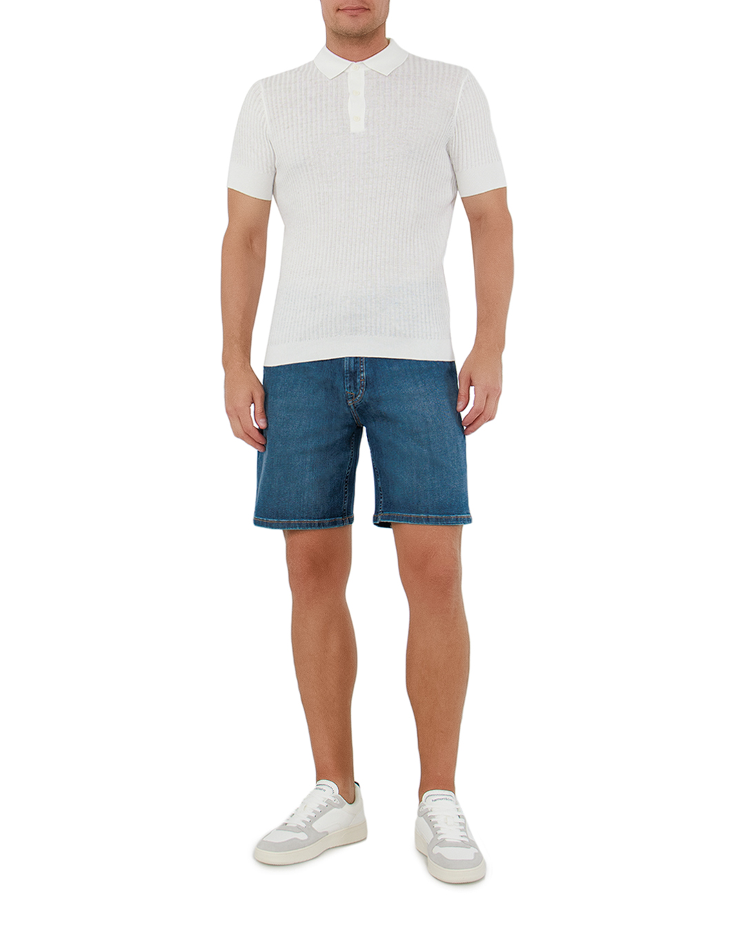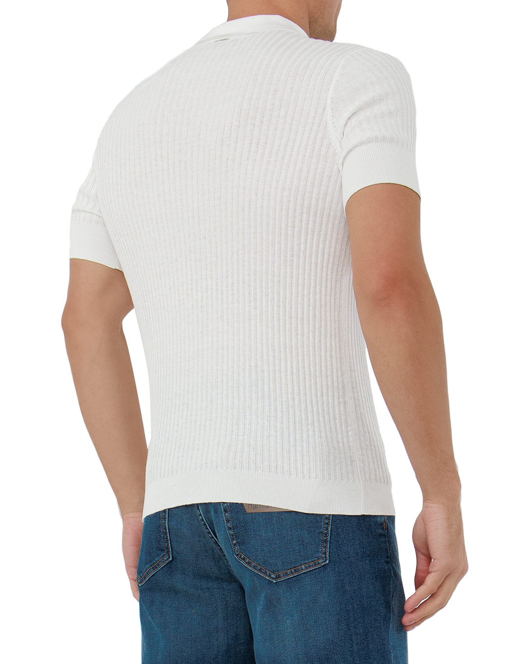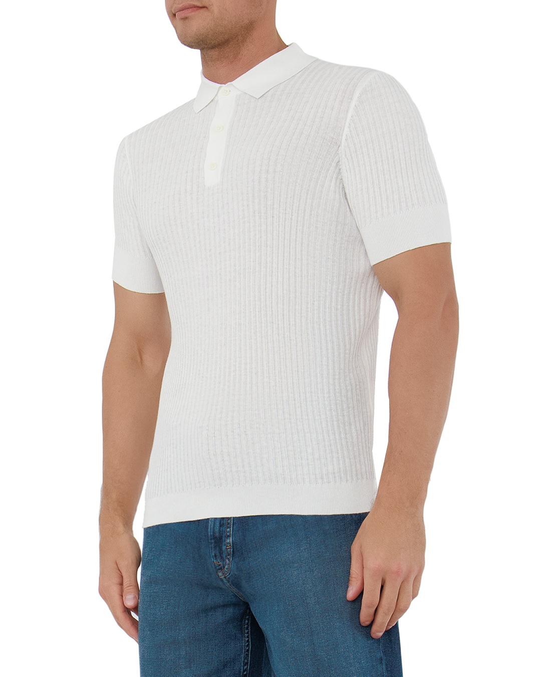 Это поло олицетворяет сдержанную элегантность и современный комфорт. Выполненное в успокаивающем белом оттенке, оно идеально подходит для создания как повседневных, так и изысканных образов. Трикотажный материал, приятный на ощупь, обеспечивает оптимальную посадку и комфорт благодаря своей эластичности. Вертикальная ребристая вязка добавляет текстурности, создавая эффект утонченности и визуального удлинения силуэта. Классический отложной воротник придает модели стильный акцент, а застежка на три пуговицы позволяет регулировать глубину выреза, добавляя вариативности в образ. Манжеты выполнены в плоской вязке, что подчеркивает точную отделку и внимание к деталям. Это поло станет универсальным элементом гардероба, легко сочетаясь с джинсами и брюками, добавляя шарм и уверенность в любом случае.