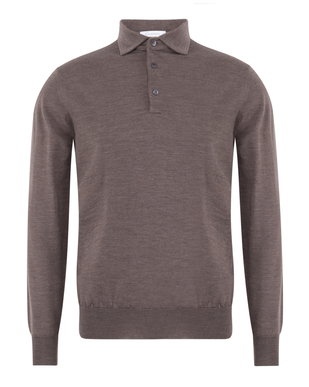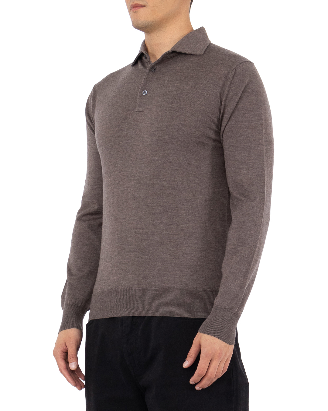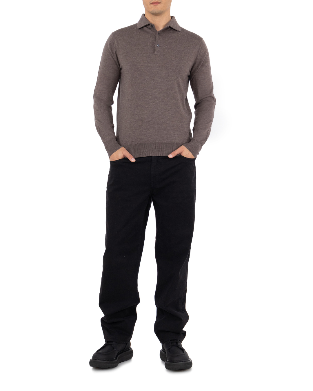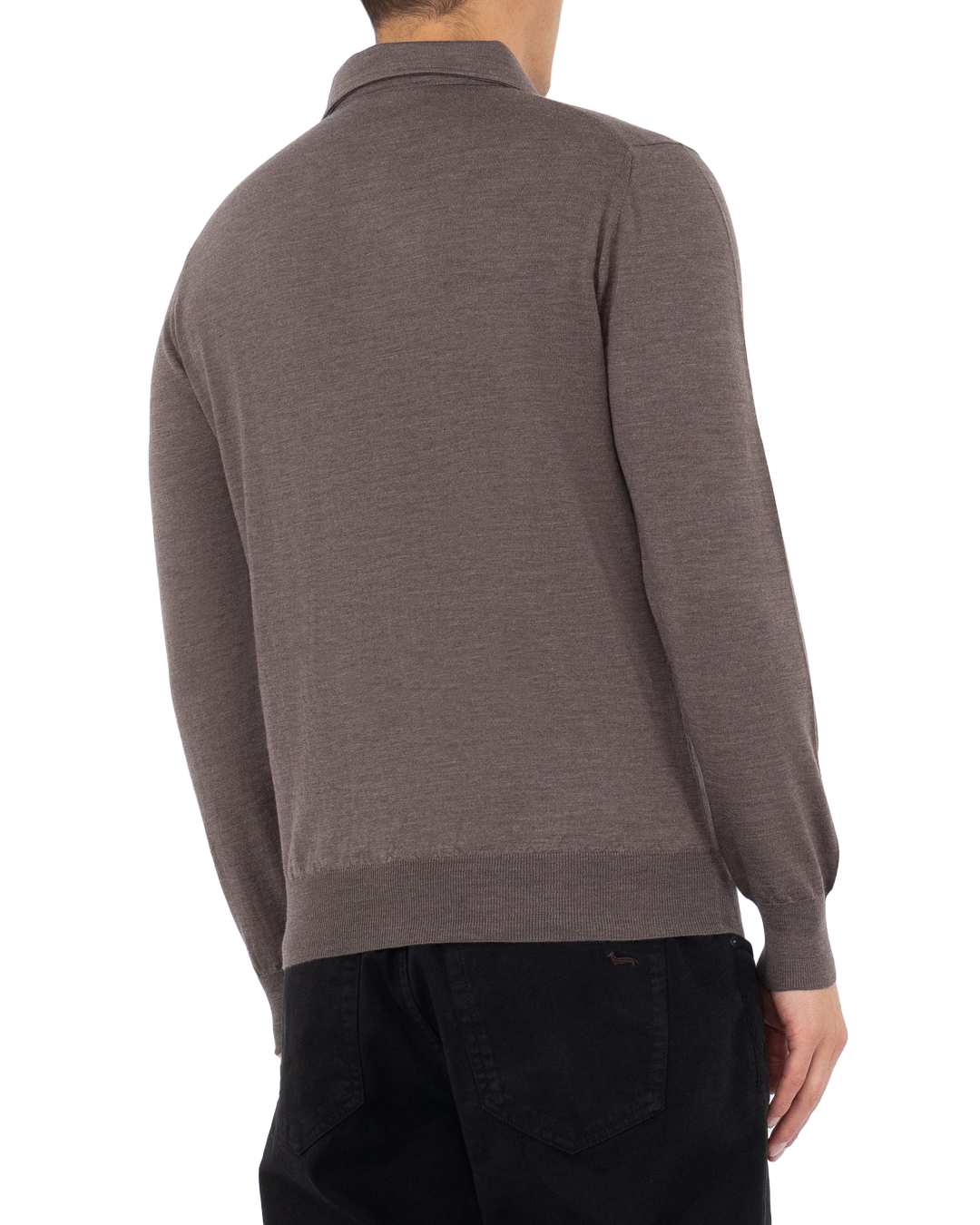 Джемпер поло с длинными рукавами и отложным воротником. Идеально подходит для повседневного и офисного образа. Модель из 100% шерсти комфортно облегает фигуру, обеспечивая свободу движений.