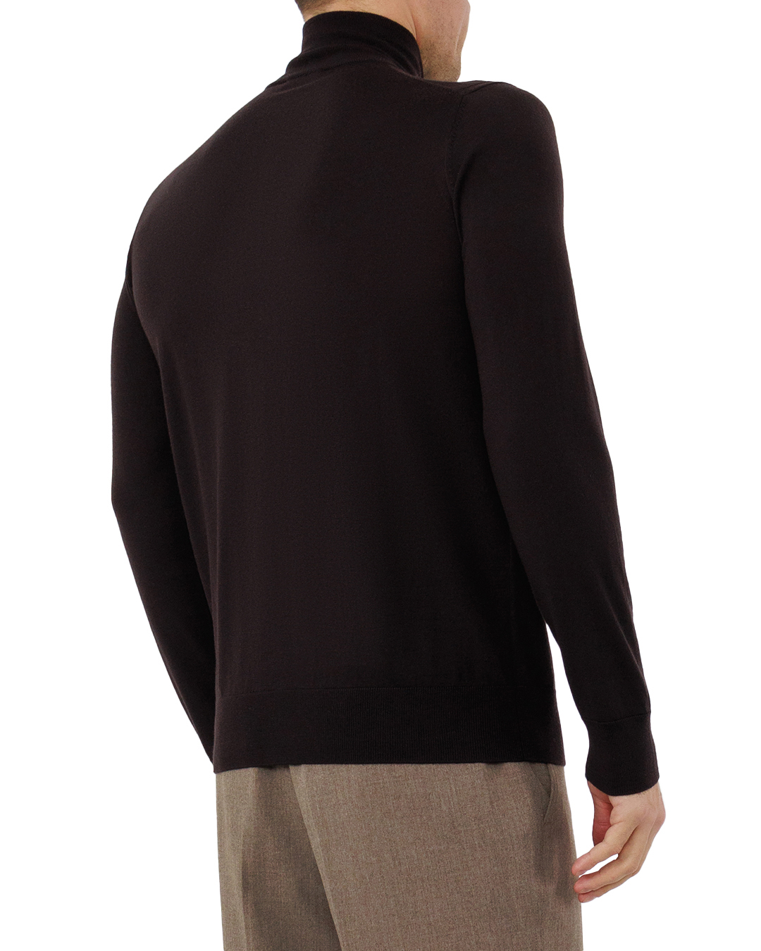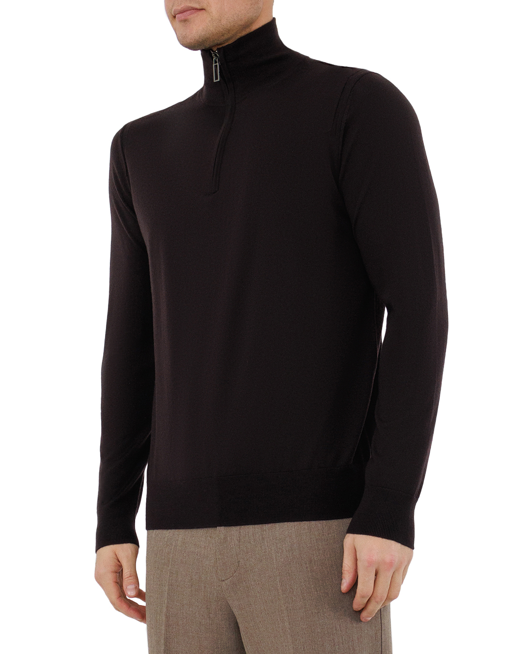 Этот джемпер — синоним утончённого стиля и повседневного комфорта, выполненный из высококачественной ткани глубокого чёрного цвета, который придаёт изделию изысканность и универсальность. Высокий воротник на молнии добавляет современный штрих и функциональную гибкость, позволяя регулировать уровень комфорта и создавая возможности для слоистых образов. Металлический бегунок молнии служит акцентом, подчёркивающим внимание к деталям. Прямой крой и аккуратная посадка подчёркивают силуэт, обеспечивая удобство и обеспечивая свободу движений. Рукава и нижний край джемпера оснащены эластичными манжетами, которые сохраняют форму и создают чёткий контур линии. Швы выполнены с исключительной точностью, что свидетельствует о высоком уровне мастерства и долговечности изделия. Джемпер идеально подходит для создания стильного, но непринуждённого образа, легко сочетаясь с различными элементами гардероба. Этот джемпер станет незаменимой частью вашего гардероба, позволяя создавать как повседневные, так и более структурированные образы с ноткой современного минимализма.