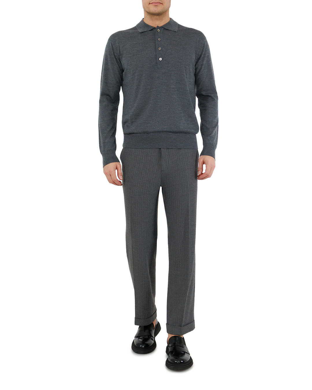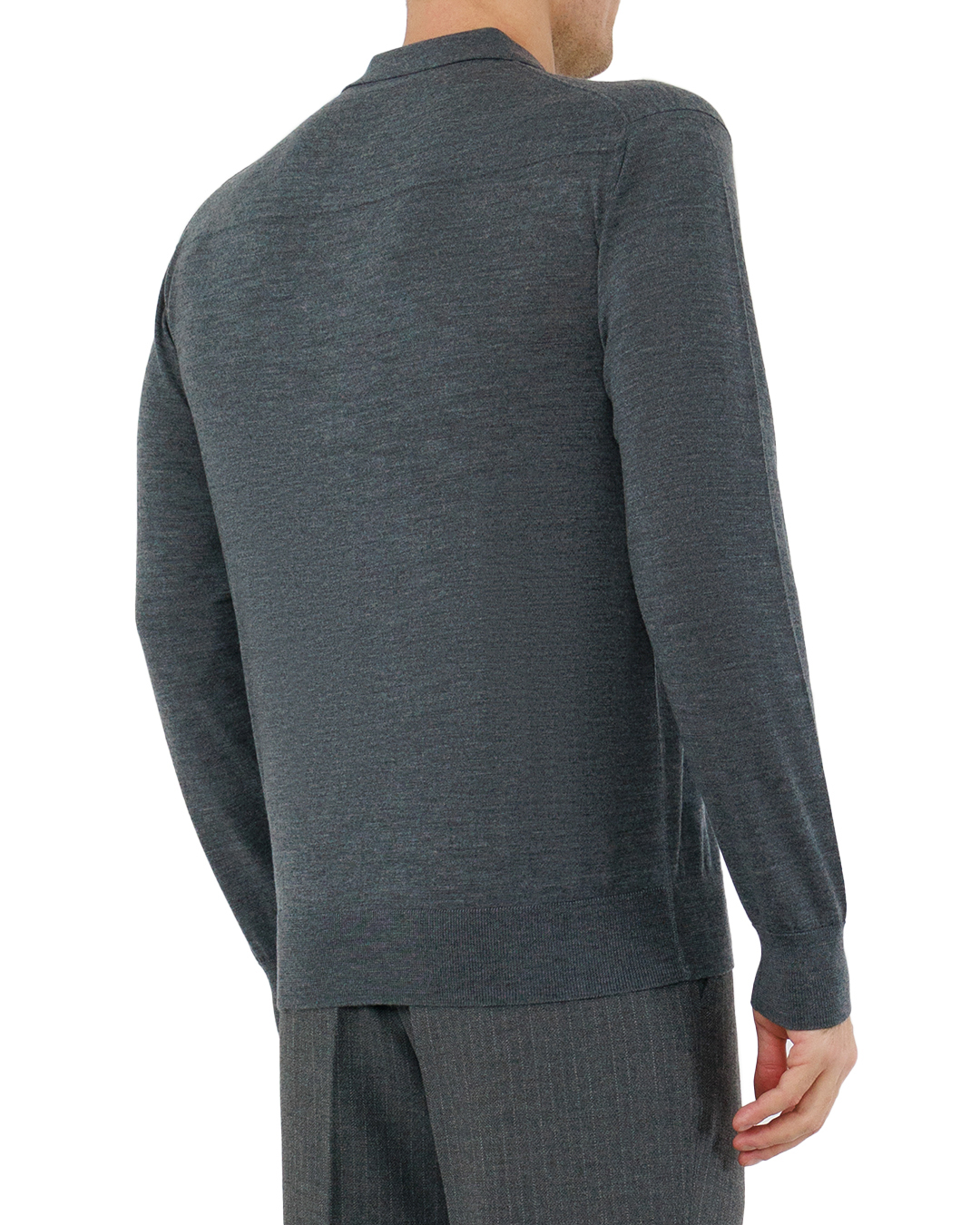 Этот джемпер воплощает в себе баланс между элегантностью и комфортом, выполненный из мягкого трикотажа в стильном тёмно-сером оттенке, который обеспечивает универсальность и изысканность. Изящный вязаный воротник подчеркнёт силуэт и придает изделию более формальный вид, создавая эффектный акцент, идеальный для любого повода. Планка с тремя пуговицами добавляет классический элемент дизайна, позволяя регулировать уровень комфорта и создавая многослойные образы. Прямой крой обеспечивает свободу движений, идеально сочетая комфорт и стиль. Манжеты и нижний край с аккуратной резинкой очерчивают форму и добавляют изделию структурированности. Ткань подчеркнута деликатными швами, выполненными с исключительной точностью, что гарантирует долговечность и эстетическое совершенство. Этот джемпер станет незаменимой деталью вашего гардероба, прекрасно комбинируясь как с классическими брюками, так и с более casual элементами, обеспечивая стильный и утонченный образ на каждый день.