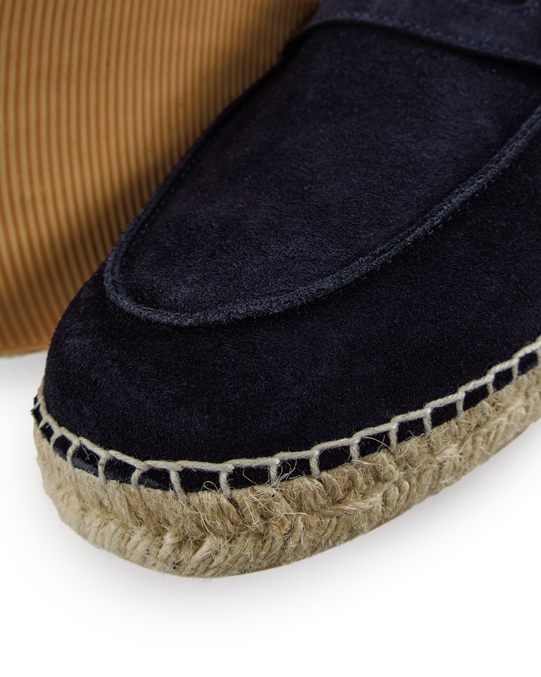 Эти лоферы воплощают в себе непринуждённую элегантность и лёгкость летнего стиля. Выполненные из премиального замша глубокого синего цвета, они предлагают мягкость и утонченность. Их уникальность заключается в сочетании классического лоферного дизайна с современной эспадрильной подошвой. Детали отделки привлекают внимание своей изысканностью: традиционное украшение пени с тонкими декоративными строчками добавляет текстурный акцент. Вышитый логотип на боковой части обеспечивает утонченный штрих, поддерживая фирменный стиль. Плетёная джутовая подошва придаёт модели легкость и естественность, а резиновое основание обеспечивает уверенное сцепление с любой поверхностью. Контрастная строчка по периметру подошвы подчеркивает мастерство исполнения и добавляет лоферам выразительности. Эти лоферы идеально дополнят расслабленный летний образ, внося в него лёгкость и элегантность, подходящие для прогулки по набережной или встреч с друзьями.