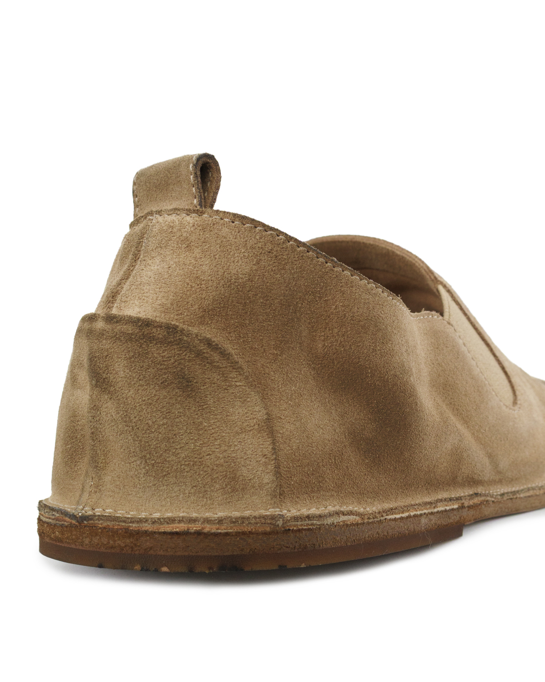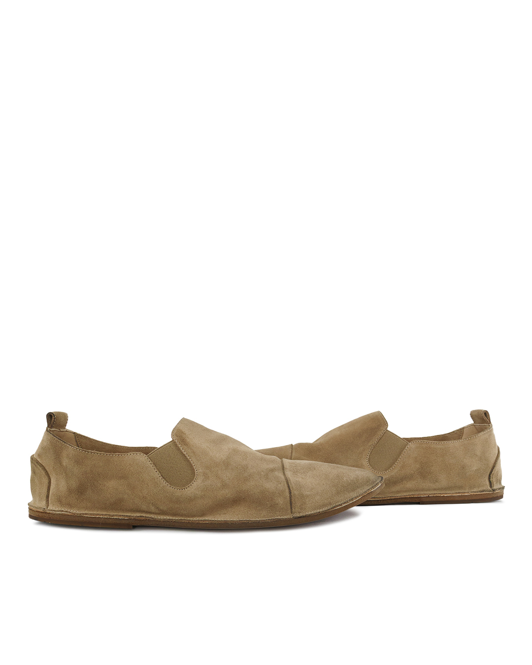 Эти лоферы воплощают расслабленный шик и утонченную простоту, созданы из мягкой замши теплого бежевого оттенка. Этот материал придает обуви бархатистую текстуру и делает её визуально тактильной, мгновенно привлекая внимание. Изысканный зауженный носок обеспечивает современный силуэт, который идеально подходит для создания непринужденных, но стильных образов. Эластичные вставки по бокам не только поддерживают эстетику минимализма, но и обеспечивают легкость надевания и снятия, добавляя комфорт и удобство. Тонкая подошва из прочного материала делает лоферы лёгкими и гибкими, идеально подходящими для активного образа жизни. Аккуратная отделка и деликатная строчка подчеркивают внимание к деталям и высокий уровень мастерства. Внутренняя отделка выполнена из мягкой ткани, обеспечивая комфортную посадку и поддерживая микроклимат внутри обуви. Эти лоферы безупречно вписываются в повседневный гардероб, сочетаясь как с джинсами, так и с легкими брюками или шортами, добавляя нотку стилевой легкости и изысканности.