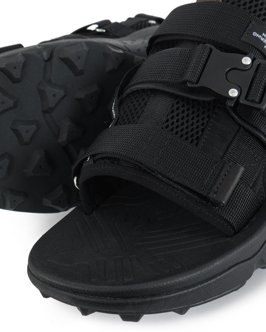 Полуоткрытые сандалии из микросетки с нейлоновыми ремешками. Застежки-липучки и сверхлегкая резиновая подошва двойной плотности.