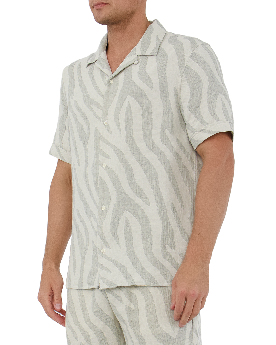 Эта рубашка — великолепный пример сочетания смелого дизайна и утонченного стиля. Принт в духе дикой природы задает динамичный тон образу, добавляя авантюрный акцент и привнося нотку экзотичности. Выполненная из легкой, воздухопроницаемой ткани, она идеально подходит для теплых дней, создавая ощущение невесомости и комфорта. Прямой крой и короткие рукава обеспечивают свободу движений и современный силуэт. Отложной воротник в винтажном стиле придает рубашке нотку ретро-шика, сохраняя при этом современную актуальность. Нежные, гармонично подобранные пуговицы создают плавный контраст, аккуратно завершая общий вид изделия. Эта модель станет ярким элементом вашего гардероба, усиливая любую комбинацию с джинсами или шортами, и придавая вашему стилю свежий, оригинальный шарм.