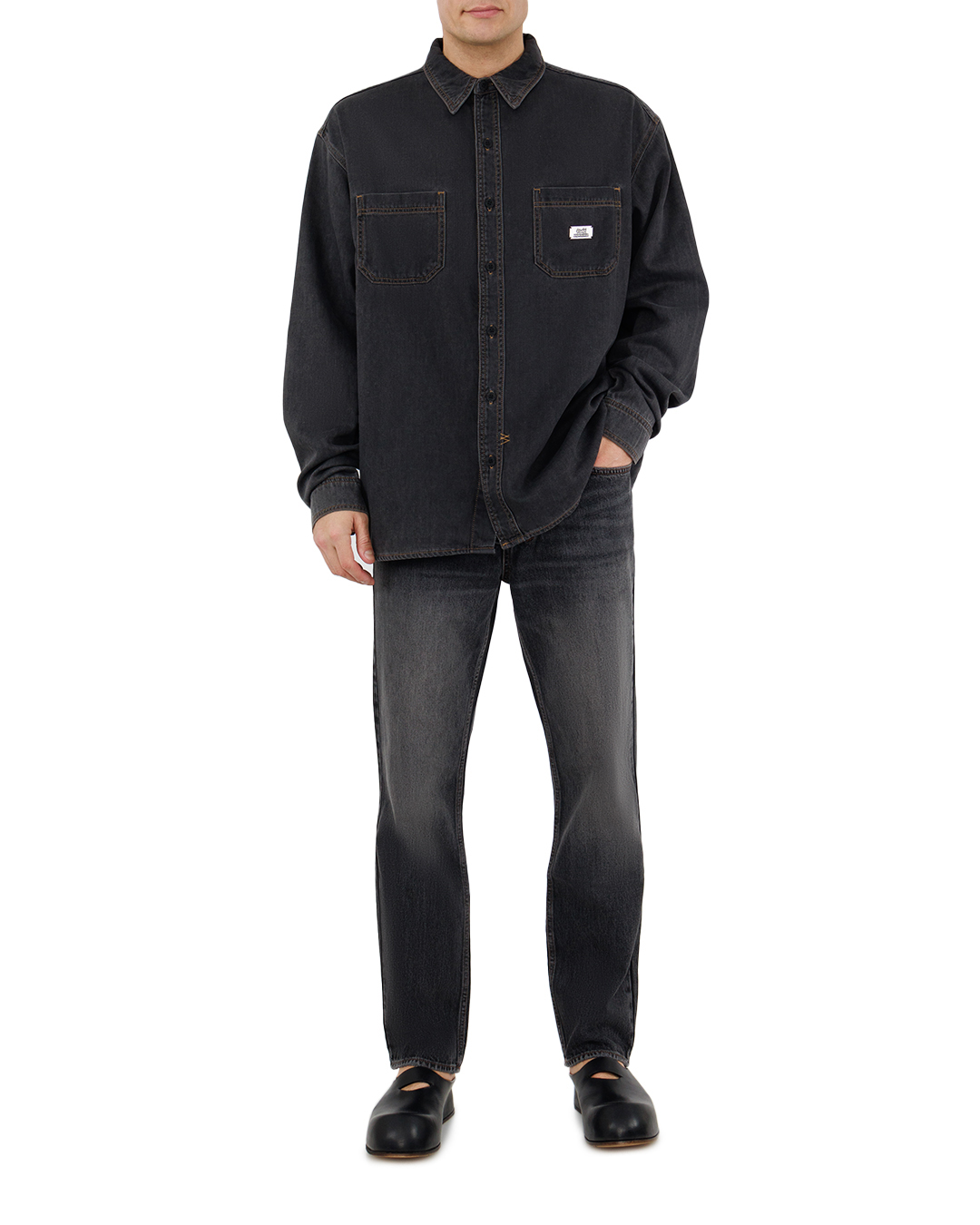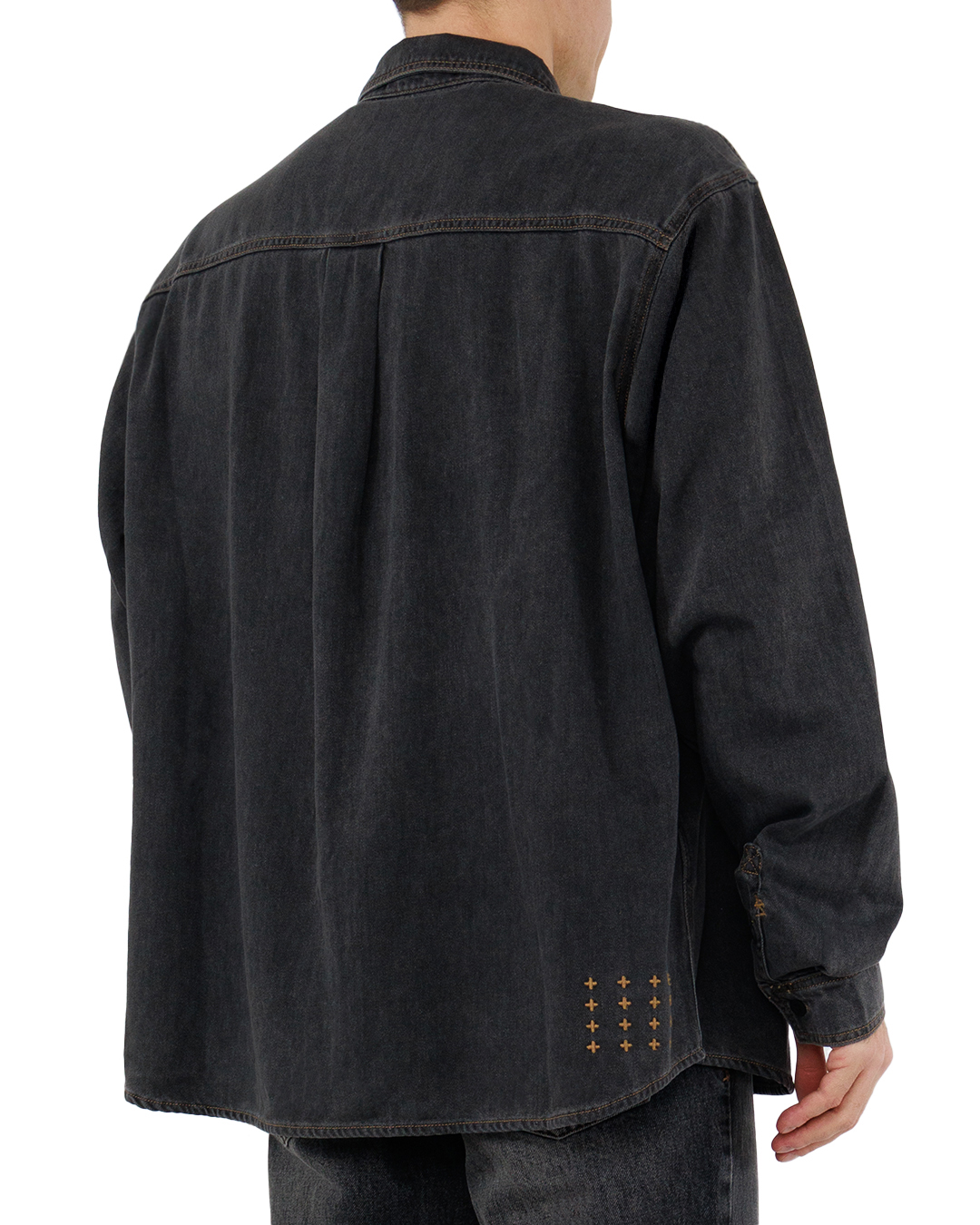 Эта рубашка представляет собой идеальное воплощение сдержанной элегантности и современного стиля, выполненная из плотного темно-серого денима. Она создана для тех, кто ценит баланс между классикой и актуальными трендами. Классический прямой крой создает универсальный силуэт, подходящий для различных типов фигуры, придавая обладателю изысканность и утонченность. Строгий воротник и аккуратная застежка на пуговицы подчеркивают формальность и структуру, обеспечивая возможность носить рубашку в различных стилевых комбинациях. Особое внимание привлекают накладные карманы на груди, которые не только добавляют элемент практичности, но и подчеркивают винтажный характер изделия. Контрастные швы, выполненные с предельной точностью, создают дополнительный визуальный интерес и акцентируют внимание на высоком качестве отделки. Легкая потертость материала добавляет рубашке глубину и текстуру, делая ее подходящей как для повседневного использования, так и для более формальных случаев в сочетании с подходящими аксессуарами. Эта рубашка предоставляет широкие возможности для создания стильных образов, от сочетаний с джинсами до более сложных ансамблей с брюками и жакетами.