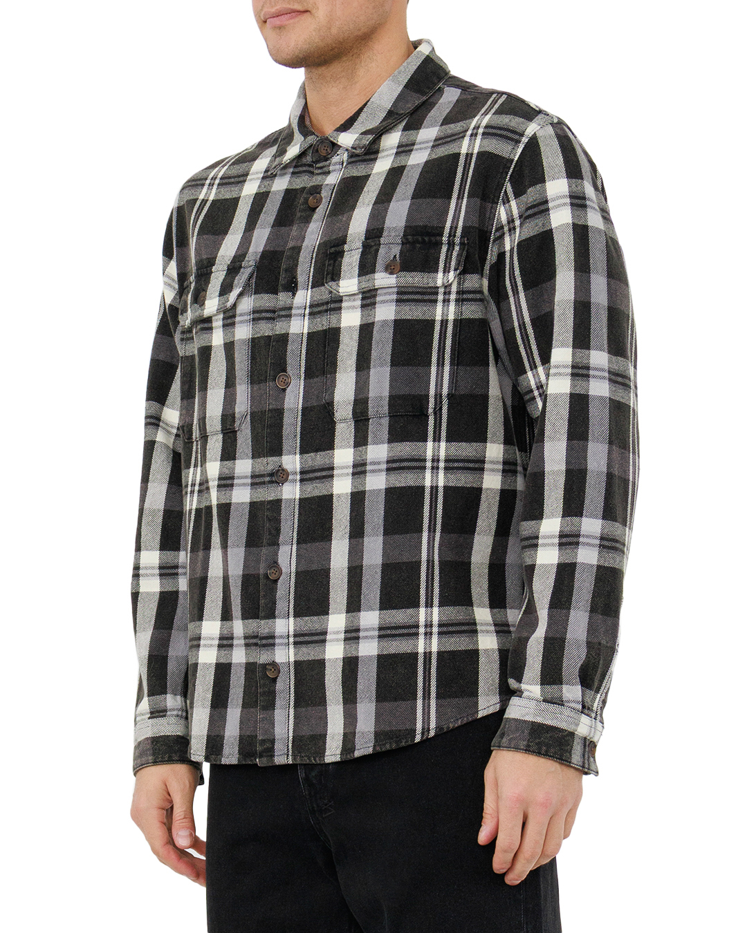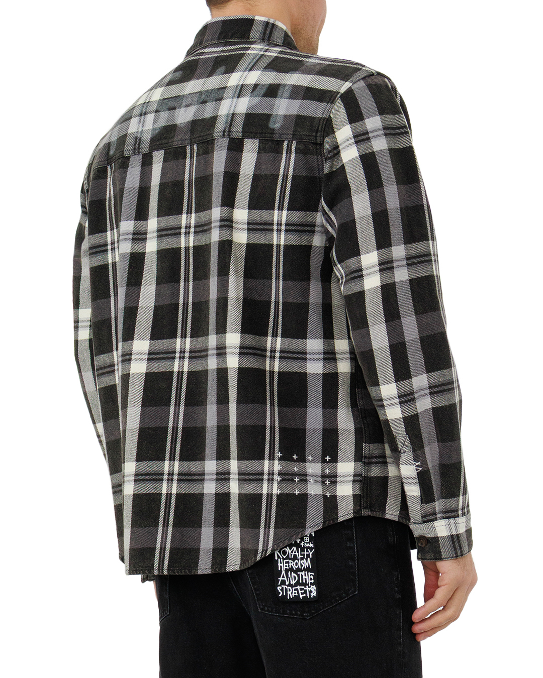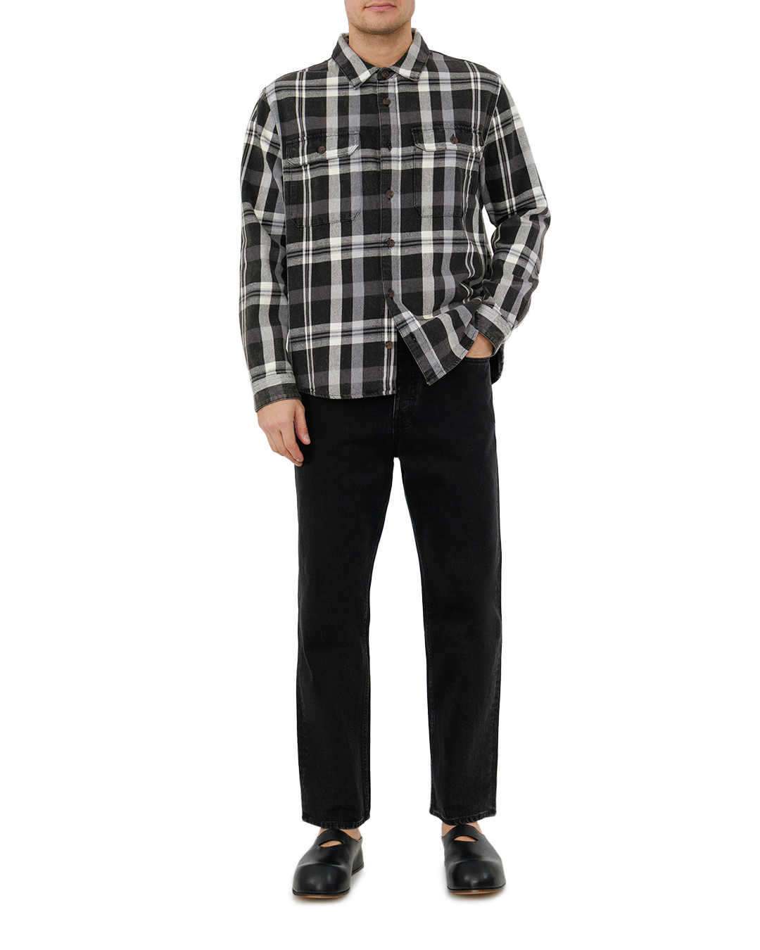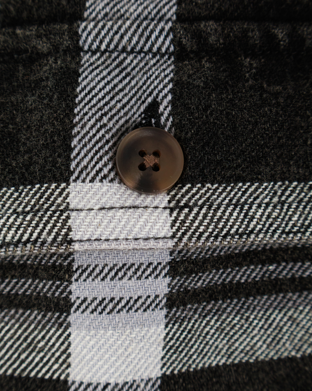 Эта рубашка в клетку — воплощение повседневной элегантности и непринужденного шарма. Изготовленная из мягкой фланели, она идеально подходит для создания уютного и стильного образа в прохладные дни. Классический клетчатый узор в оттенках чёрного, серого и белого придаёт изделию универсальность и легкость в сочетании с различными элементами гардероба. Прямой крой и тщательно отработанные швы обеспечивают безупречную посадку и комфорт. Два накладных кармана на груди с пуговицами добавляют функциональность и акцентируют внимание на детализированности дизайна. Застёжка на пуговицах по всей длине позволяет регулировать стиль от формальной до более расслабленной версии. Классический отложной воротник завершает образ, придавая рубашке изящность и завершённость. Это изделие станет неотъемлемой частью вашего гардероба, отражая сдержанную элегантность и актуальность.