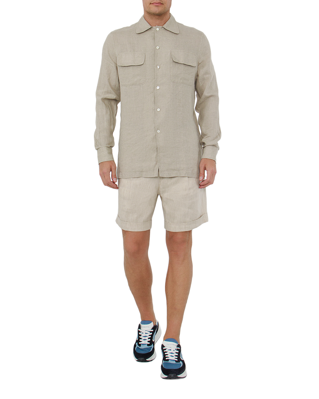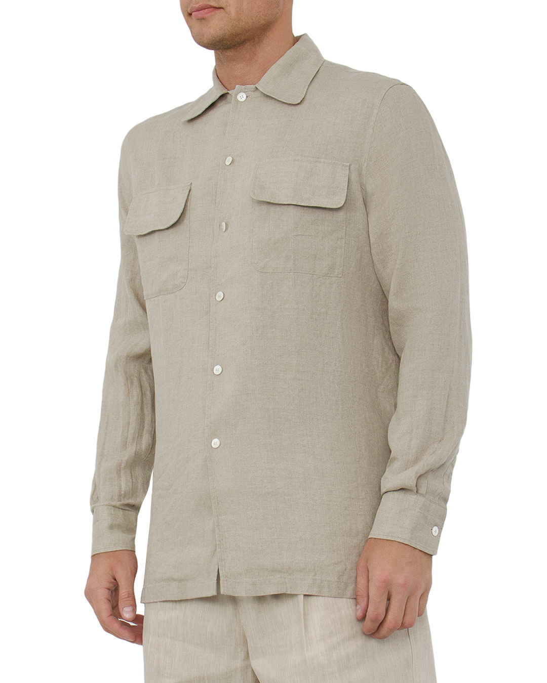 Эта рубашка светло-бежевого оттенка представляет собой гармоничное сочетание расслабленного стиля и утонченности. Выполненная из натуральной ткани, она обеспечивает комфорт и дышащие свойства, идеально подходящие для любого времени года. Изящный отложной воротник придаёт классический вид, акцентируя строгую линию плеч. Два накладных кармана с клапанами на груди добавляют функциональности и утилитарного шарма, внося в образ современный акцент. Центральная планка с пуговицами в тон создаёт цельность и завершённость дизайна. Манжеты с пуговицами позволяют изменять стиль, от более формального к кэжуал. Эта рубашка — универсальный элемент гардероба, легко комбинирующийся с брюками и джинсами. Она добавляет вашему образу свежесть и элегантность, подчеркивая ваш утончённый вкус и внимание к деталям.