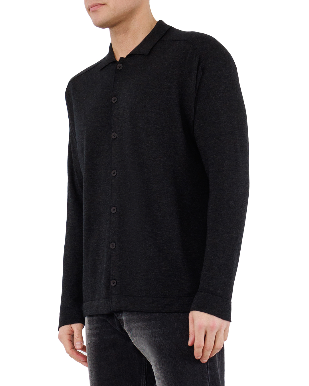 Эта рубашка объединяет в себе классику и современность, создавая образ непринужденного изящества. Выполненная из премиальной ткани, она дарит ощущение легкости и комфорта. Глубокий угольный оттенок добавляет изделию благородства и универсальности, выступая как идеальная основа для создания разнообразных образов. Отложной воротник с традиционной формой подчеркивает элегантность и формальность, придавая одежде дополнительный шарм. Центральная планка на пуговицах обеспечивает удобство и служит стильным акцентом, дополняющим общий минималистичный дизайн. Рукава с манжетами акцентируют внимание на деталях, а прямой крой помогает сохранить баланс между классикой и современными трендами, обеспечивая комфортную посадку. Эта рубашка идеально впишется как в деловой гардероб, так и в повседневные ансамбли, подчеркивая утонченность и чувство стиля обладателя.
