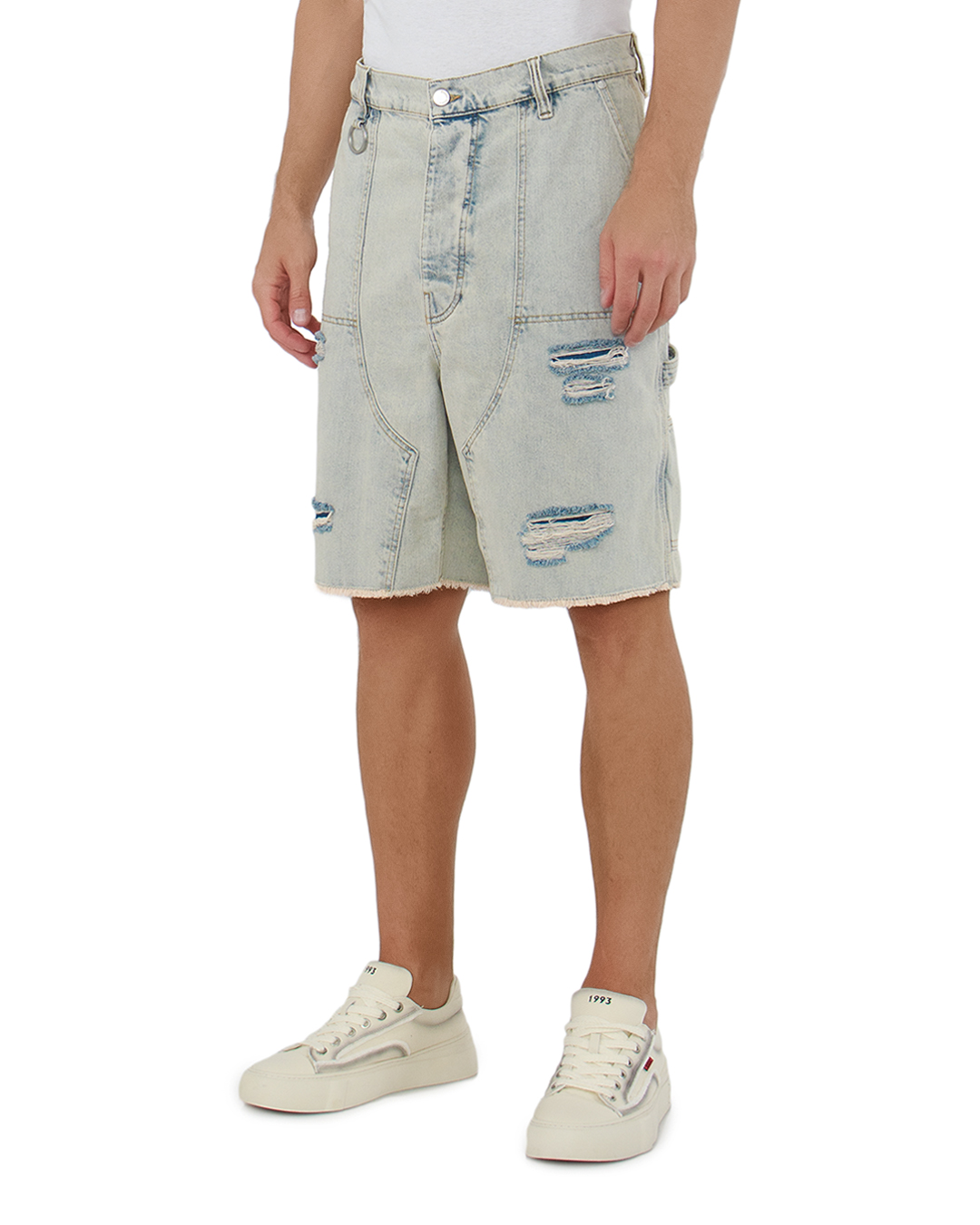 Эти шорты представляют собой поразительное сочетание непринужденного стиля и модного ретро-шика. Изготовленные из качественного денима, они соединяют прочность и комфорт, идеально подходя для активного отдыха. Детали состаренного эффекта и эффектные потертости придают изделиям дерзкий, винтажный вид, создавая стильный акцент в любом образе. Эти элементы вызывают атмосферу беззаботности и свободы, привнося динамику в ваш гардероб. Удлиненный дизайн обеспечивает свободу движений и современный силуэт. Металлическое кольцо на поясе добавляет необычный акцент и позволяет экспериментировать с аксессуарами, такими как цепи или брелоки. Швы и необработанные края подчеркивают индивидуальность и открывают простор для стилистических возможностей. Эти шорты идеально сочетаются с простыми топами или яркими футболками, создавая безграничные возможности для вашего личного стиля.