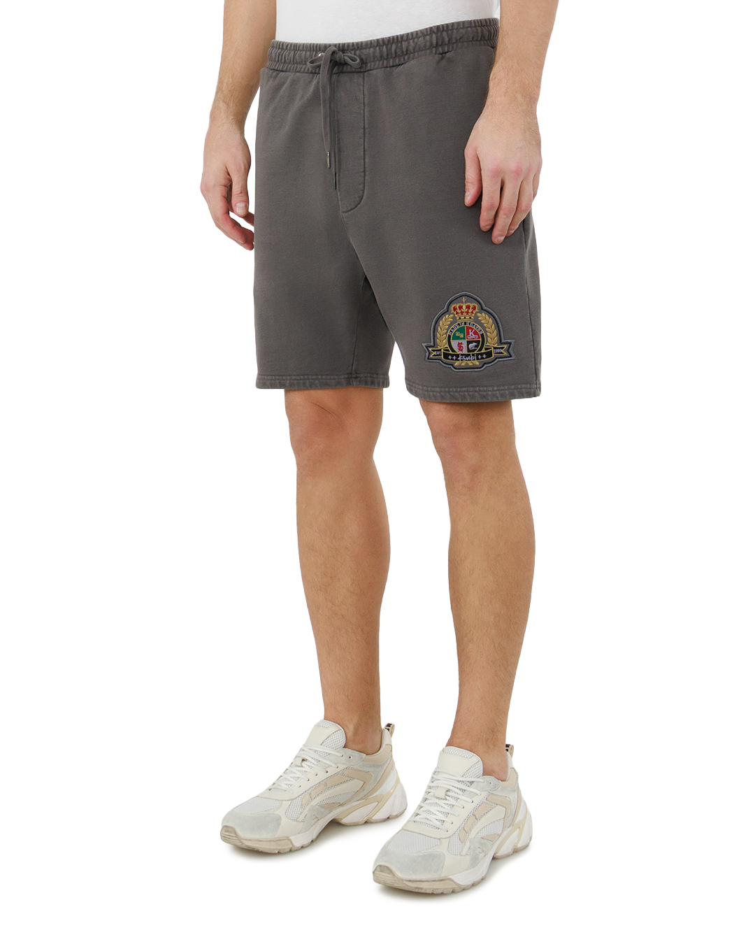 Эти шорты — образец сдержанной элегантности в спортивном стиле. Глубокий серо-оливковый оттенок полотна придаёт вещи благородную лаконичность, а выразительная нашивка с гербовым мотивом на бедре добавляет нотку аристократичности и индивидуальности. Свободный крой обеспечивает полную свободу движений, формируя расслабленный, но структурированный силуэт. Эластичный пояс с шнуром-затяжкой гарантирует удобную посадку по талии, не сковывая движений. Карман-клапан на передней части продуман до мелочей: линии входа плавные, подгибы аккуратные, без торчащих нитей. Край штанин обработан двойной строчкой, что подчёркивает качество отделки и придаёт модели современный вид. Такая вещь легко становится центральным элементом стильного ансамбля, сочетая в себе комфорт и утончённость.