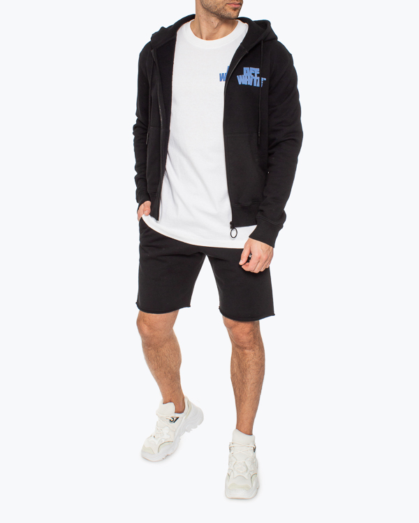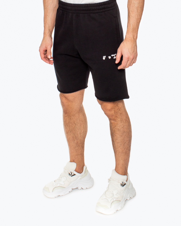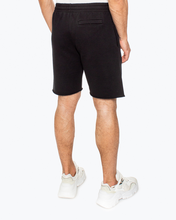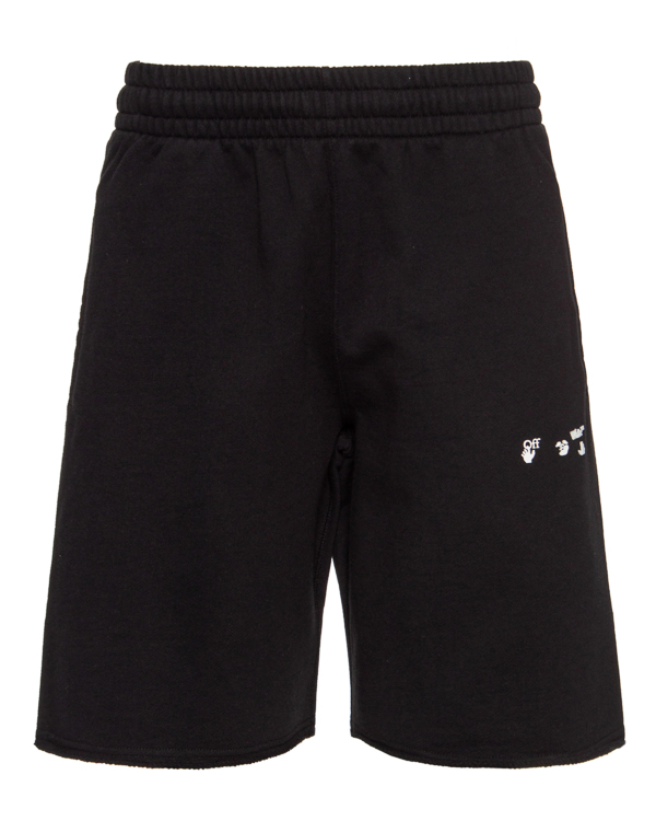 Шорты в спортивном стиле из трикотажного хлопка черного цвета с фирменной символиккой бренда. Модель прямого силуэта с эластичной линией пояса и двумя карманами по бокам.