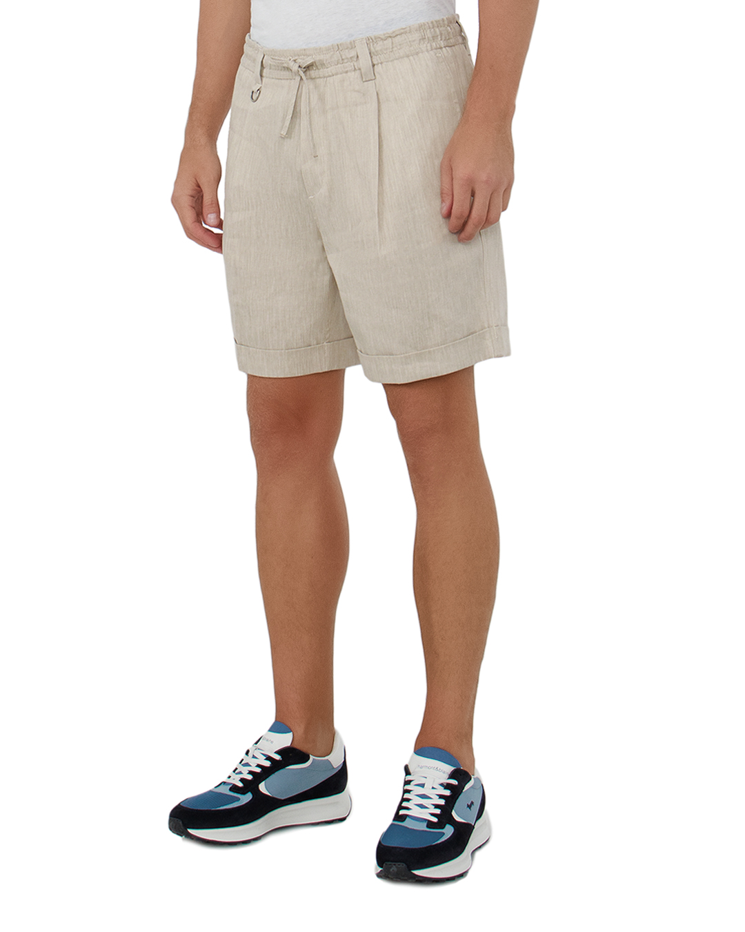 Эти шорты в светло-бежевом оттенке олицетворяют атмосферу непринужденности и летнего стиля. Выполненные из легкого и дышащего материала, они обеспечивают комфорт даже в жаркие дни. Эластичный пояс дополнен шнурком, что позволяет регулировать посадку для идеального прилегания. Шлевки для ремня добавляют функциональности, позволяя дополнить образ стильными аксессуарами. Манжеты с подгибом создают аккуратный и завершённый вид, придавая шортам современный силуэт. Металлическое кольцо на поясе добавляет интересный акцент, внося элемент утилитарного стиля. Эти шорты станут отличным выбором для повседневных и пляжных образов, легко сочетаясь с футболками и легкими рубашками, создавая стильный и расслабленный летний аутфит.