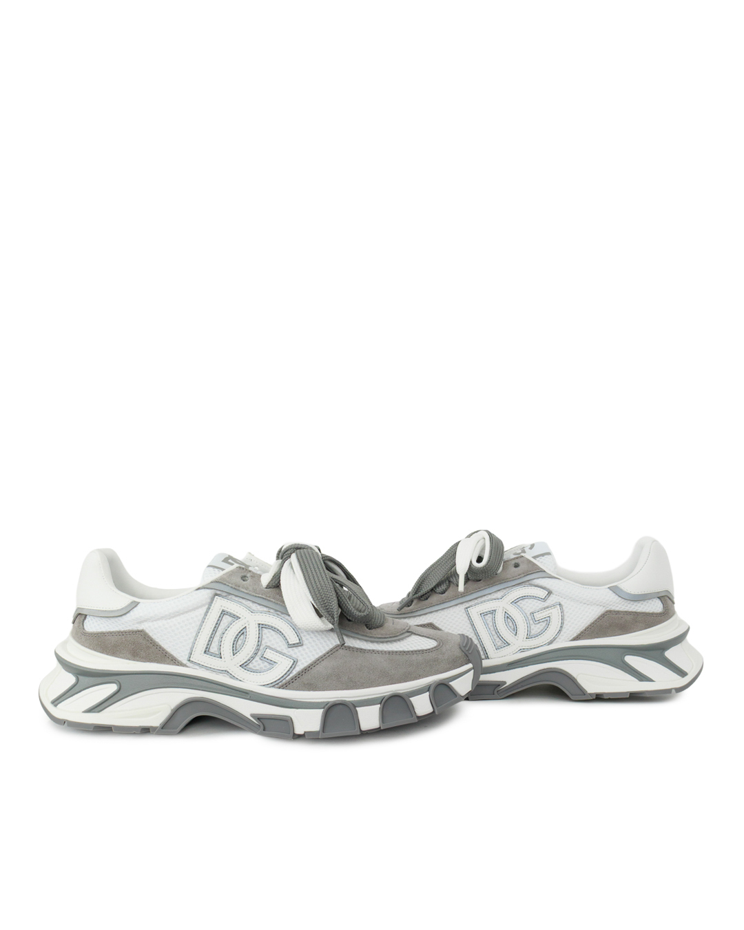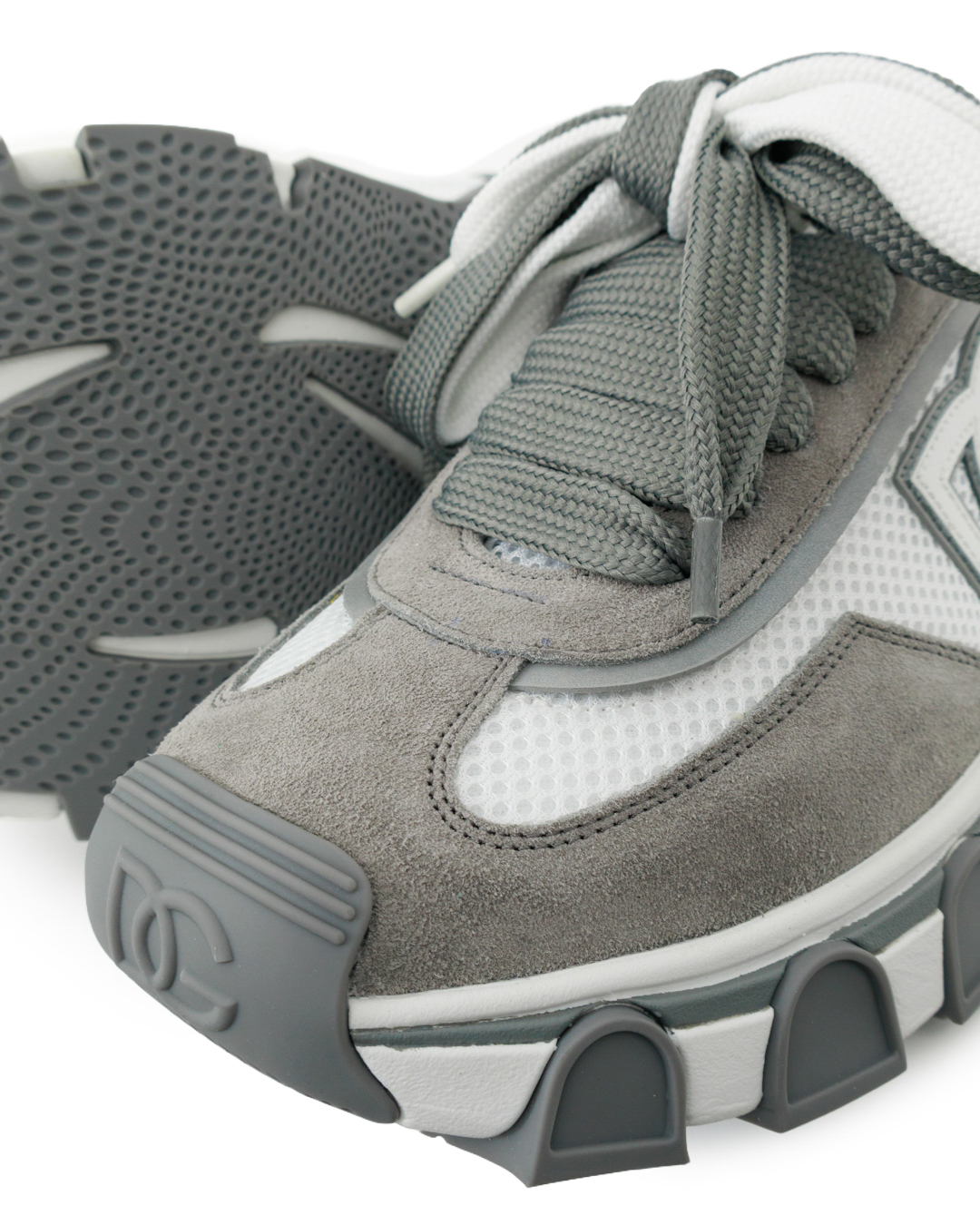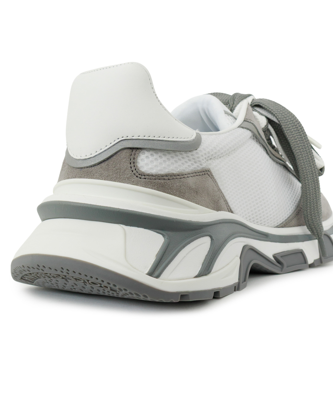 Эти кроссовки — симбиоз спортивного шика и утончённого дизайна. Комбинированная отделка из замши и сетчатого материала создаёт интересную игру фактур, не утрачивая лёгкости. Объёмная подошва с рельефным рисунком придаёт динамичность и обеспечивает комфорт при ходьбе. Крупный логотип-аппликация на боковой части служит выразительным акцентом, не перегружая образ. Шнуровка в тон основной гаммы поддерживает целостность стиля. Сдержанная серо-белая палитра делает модель универсальной, а продуманные детали подчёркивают премиальность исполнения.