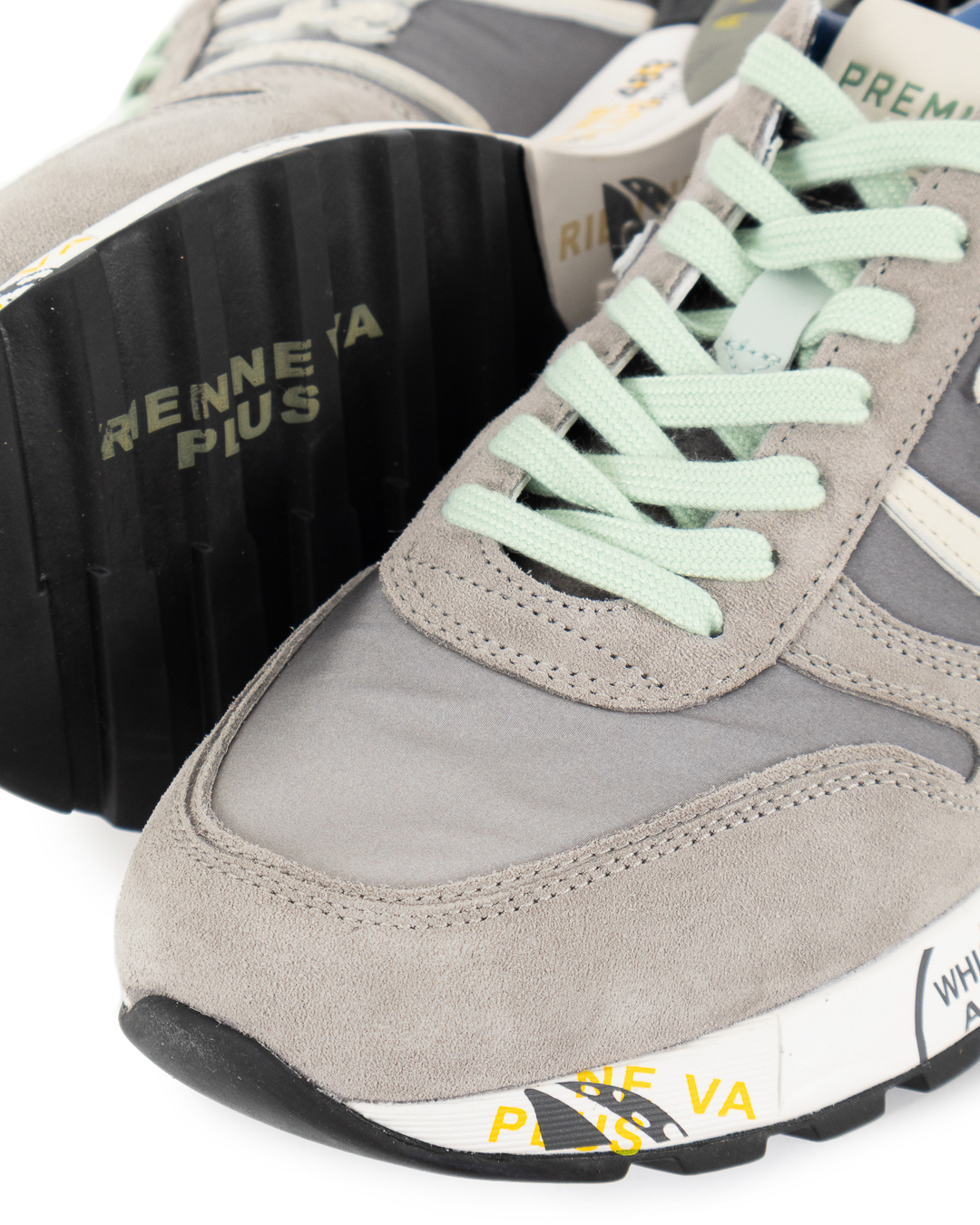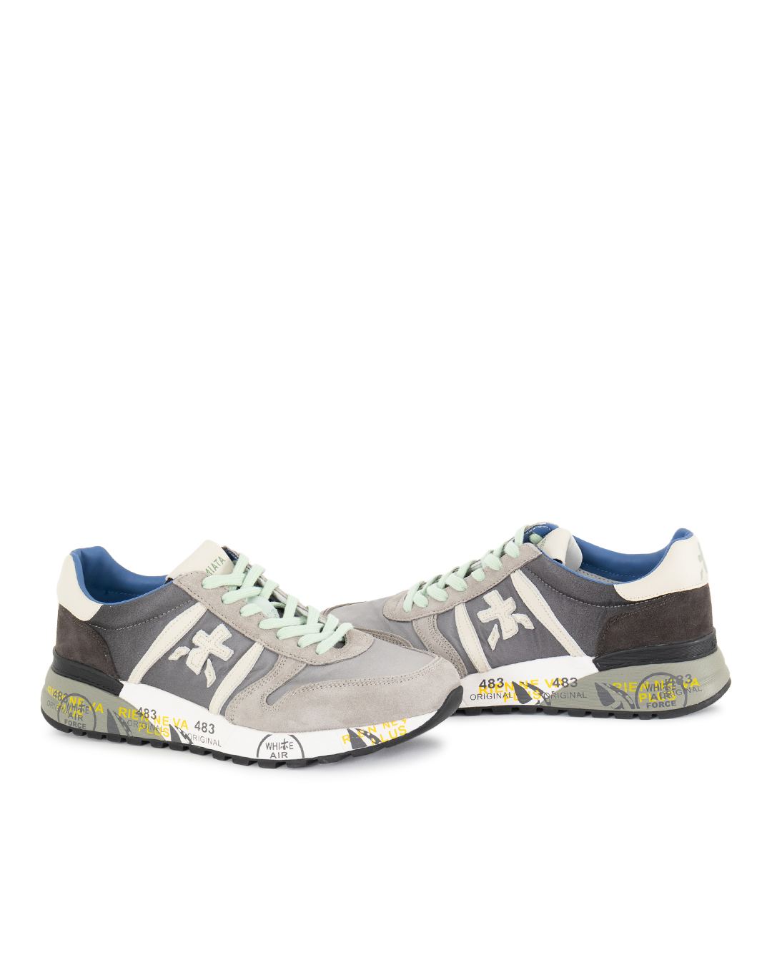 Кроссовки Premiata sport из комбинированных материалов с кожаными вставками. Пара на удобной резиновой подошве с фирменным узнаваемым принтом.