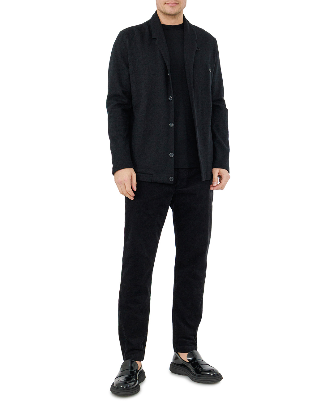 Этот пиджак — воплощение утончённой элегантности и минималистичной эстетики. Выполненный из высококачественной ткани, он обеспечивает комфорт и выглядит современно и стильно. Глубокий чёрный цвет придаёт изделию универсальность и актуальность, позволяя сочетать его с различными элементами гардероба. Классический крой с обычным лацканом подчёркивает сдержанную элегантность и подчеркивает изящество линий. Нагрудный карман и простая застежка на пуговицах добавляют лаконичный и функциональный акцент, придавая пиджаку оригинальность и изысканность. Каждая деталь, от качественной обработки швов до мягкости ткани, отражает высокое мастерство и внимание к деталям. Этот пиджак станет ключевым элементом гардероба, подчеркивая ваш утончённый вкус и стремление к совершенству в каждом наряде.