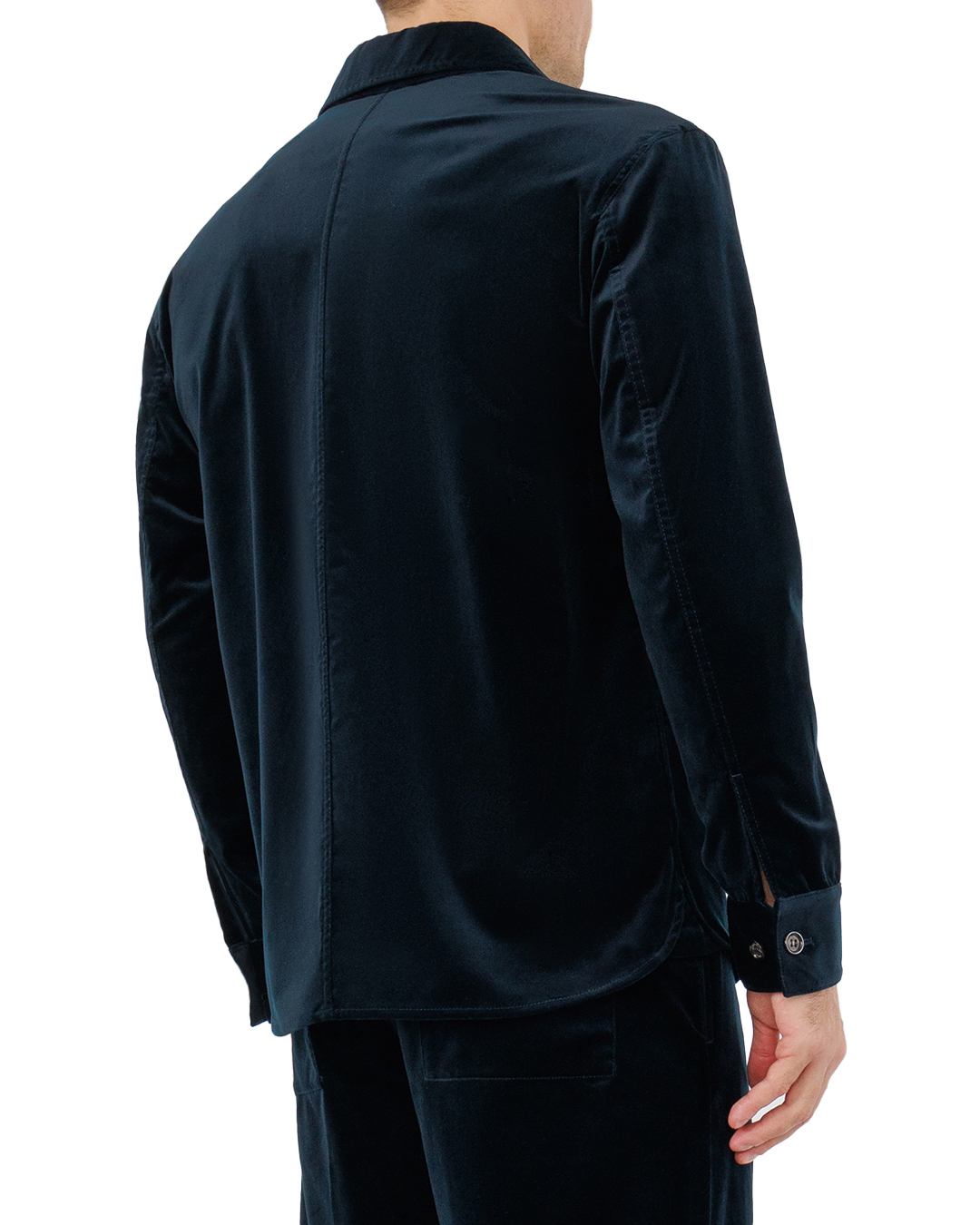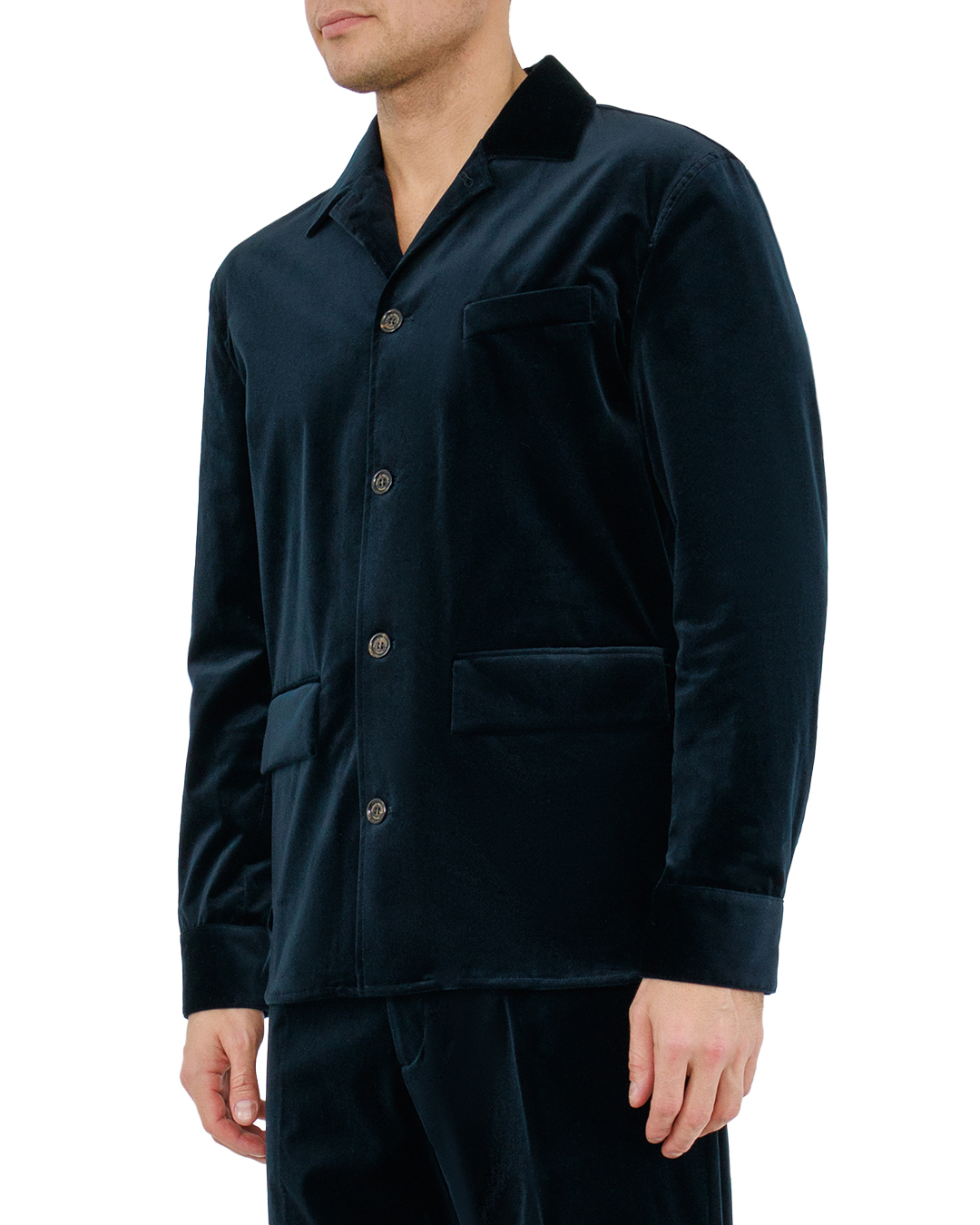 Этот пиджак — воплощение утонченного стиля и современного шарма, созданный из благородного бархата глубокого темно-синего оттенка, который добавляет богатство и глубину образу. Дизайн с открытым воротником и лацканами средней ширины сохраняет классические черты и придаёт элегантность общей композиции. Пуговицы в тон, изысканно расположенные по центру, подчёркивают линию корпуса и обеспечивают удобство застёгивания. Прямой крой позволяет сохранить свободу движений и универсальность, гарантируя комфорт в носке. Нагрудный карман с аккуратной обтачкой добавляет нотку изысканности и функциональности. Боковые карманы с клапанами не только практичны, но и создают стильный акцент, дополняя общий образ пиджака. Внутренние швы и подкладка выполнены с исключительным вниманием к деталям, обеспечивая гладкость и комфорт. Этот пиджак безупречно впишется как в вечерний гардероб, так и в более формальные мероприятия, добавляя вашему образу законченности и уверенного стиля.