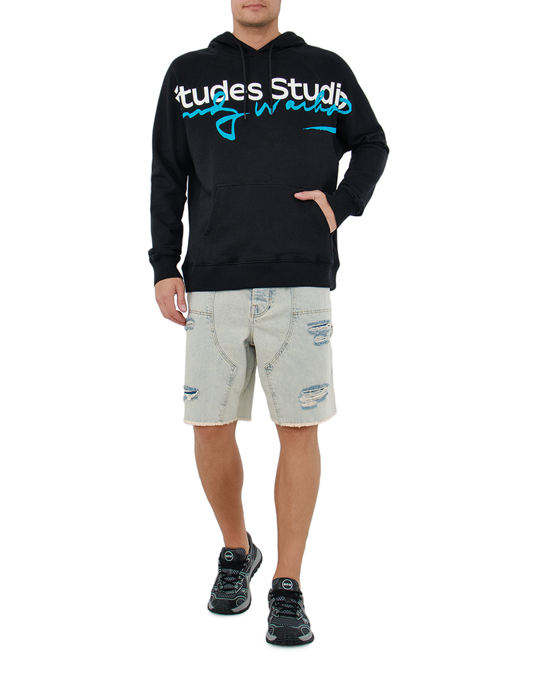 Это худи — пример изысканного расслабленному-шику, где комфорт встречается с современным дизайном. Изготовленное из мягкого, высококачественного материала, оно обеспечивает тепло и уют в любую погоду. Классический крой с капюшоном регулируется шнурками, создавая плавные линии и добавляя ощущение непринужденности. Изюминкой модели является выразительный принт на груди: логотип и подпись в выразительном голубом оттенке создают динамику и подчёркивают индивидуальность владельца. Кенгуру-карман придаёт функциональности и добавляет дополнительный элемент комфорта, позволяя удобно хранить мелочи. Эластичные манжеты и нижний край обеспечивают идеальную посадку и стабильность формы. Это худи идеально сочетает в себе стиль и практичность, делая его незаменимым элементом для составления как повседневных, так и стильных образов.
