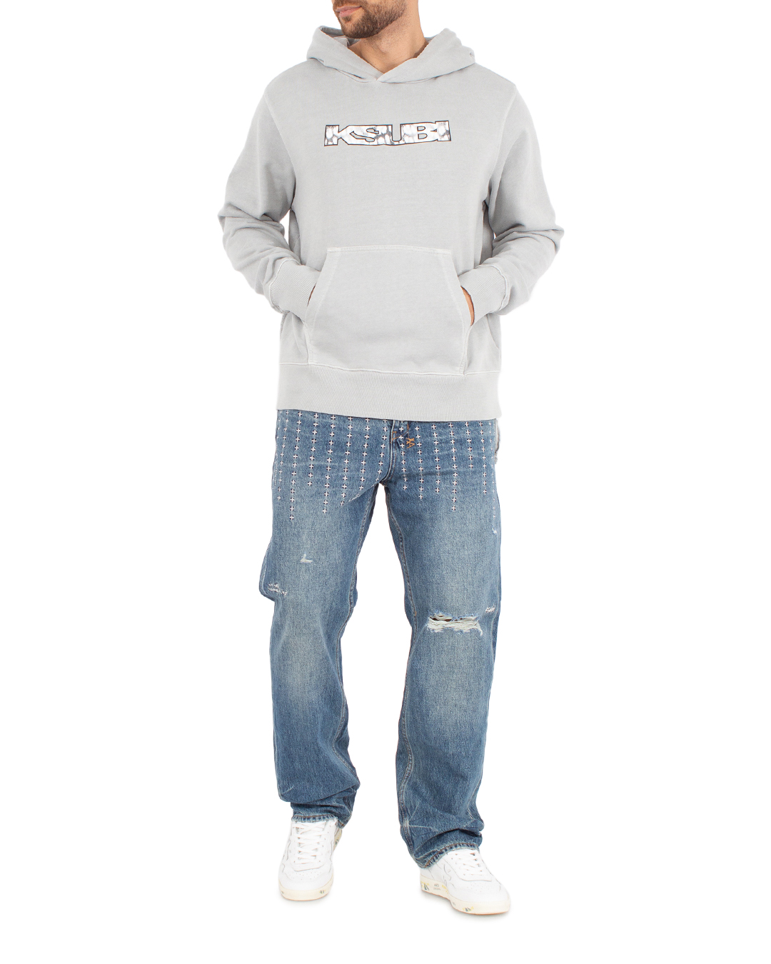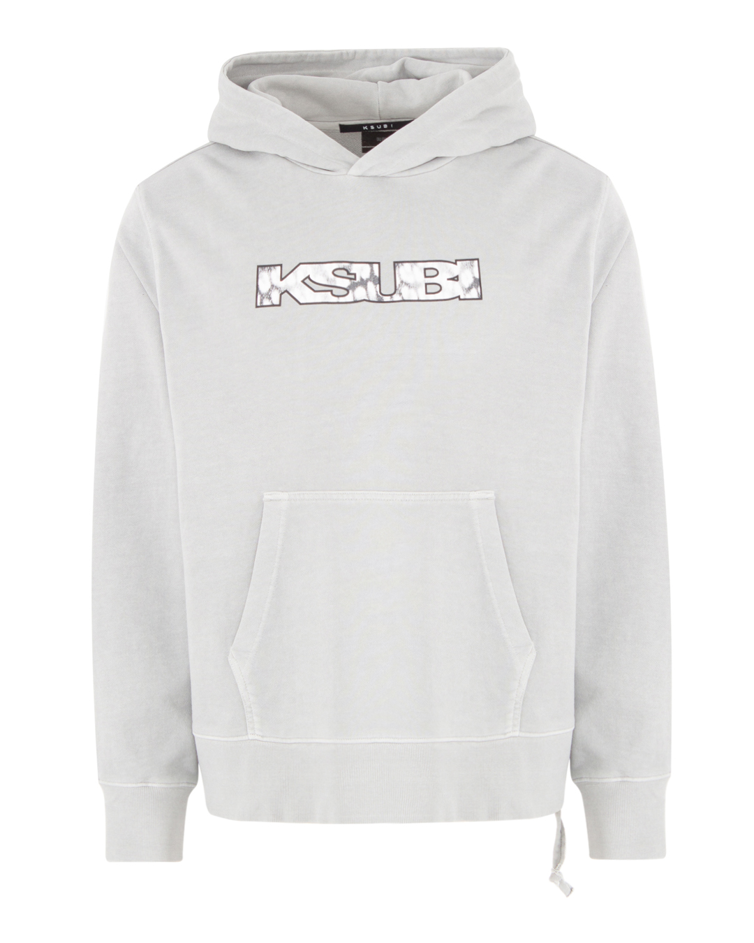 Хлопковый худи KSUBI с принтом. Прямой свободный силуэт с карманом-кенгуру и капюшоном дополнен уплотненной отделкой.