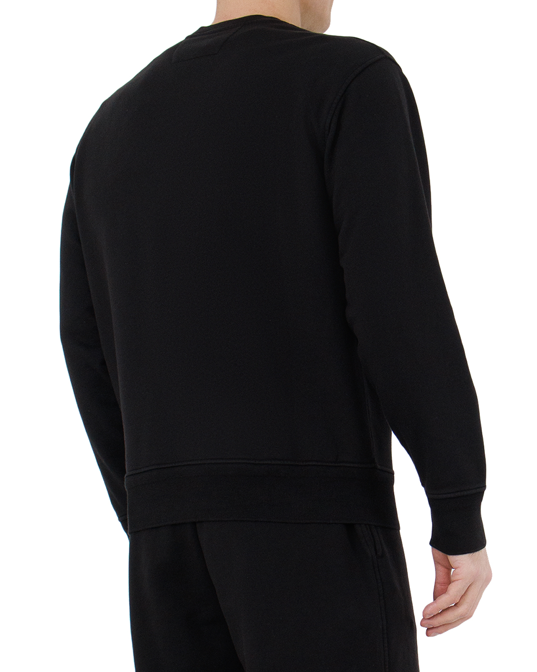 Этот свитшот от C.P. Company воплощает собой гармонию минимализма и функционального стиля, идеально подходящего для современного гардероба. Изготовленный из премиального хлопкового материала, он дарит ощущение тепла и комфорта, оставаясь мягким и приятным на ощупь. Глубокий черный цвет придает изделию универсальность и элегантность, что позволяет легко комбинировать его с другими элементами гардероба. Классический крой обеспечивает идеальную посадку и свободу движений, подчеркивая непринужденный стиль. Деликатный логотип C.P. Company, аккуратно размещенный на груди, добавляет изделию фирменную изысканность и утонченность. Этот сдержанный акцент демонстрирует тонкий вкус и внимание к деталям. Манжеты и нижний край выполнены из эластичной резинки, что обеспечивает комфортную фиксацию и предотвращает потерю формы. Этот свитшот — отличный выбор для тех, кто ценит качество и стиль в каждом элементе своего повседневного образа.