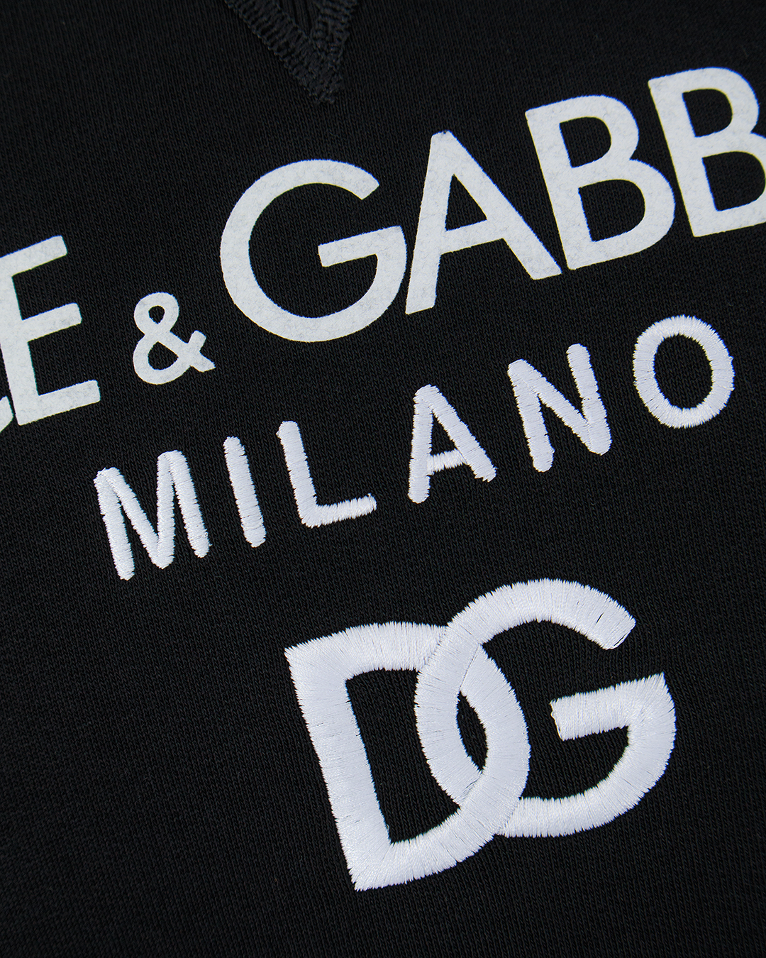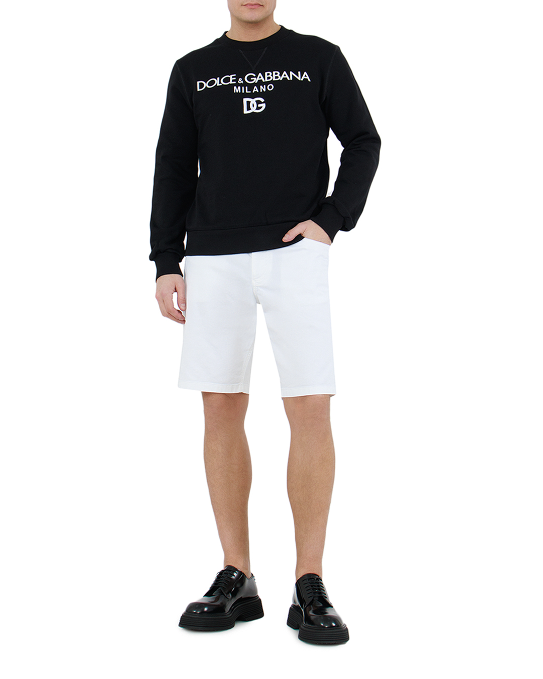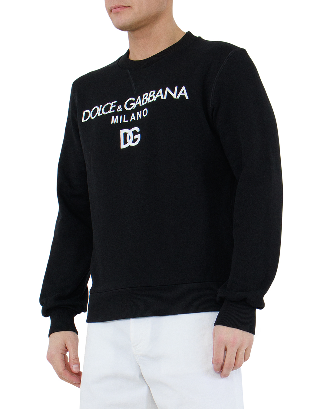 Черный хлопковый свитшот от DOLCE & GABBANA выполнен в лучших традициях модного дома: лаконичный силуэт модели украшает контрастный принт с названием и логотипом бренда. Практичный и стильный, данный свитшот впишется в любой мужской гардероб.