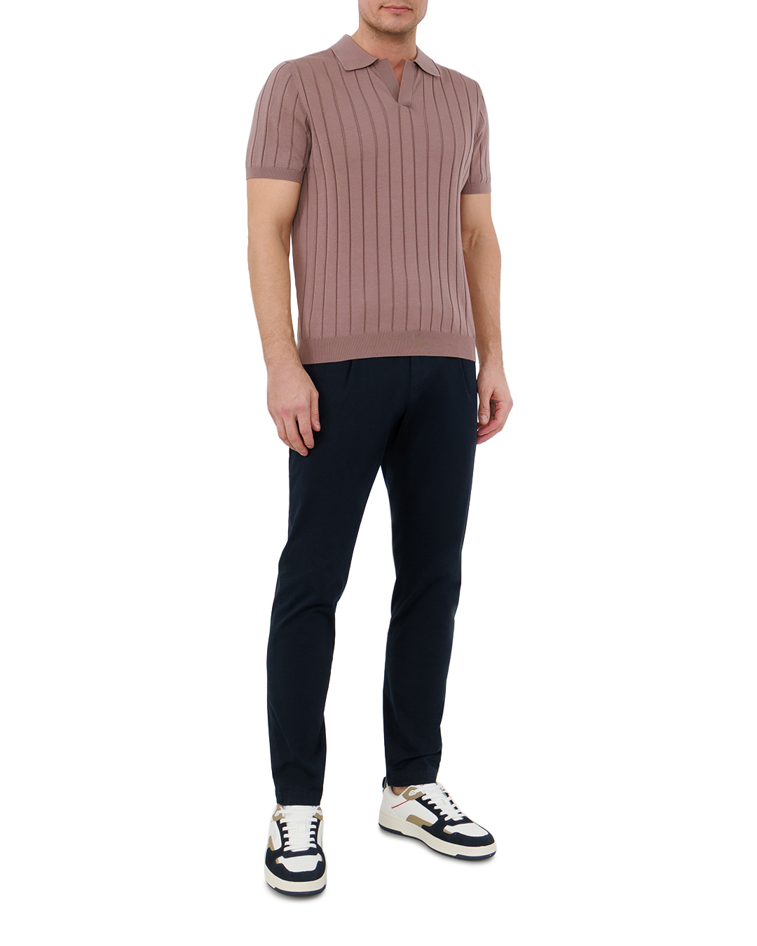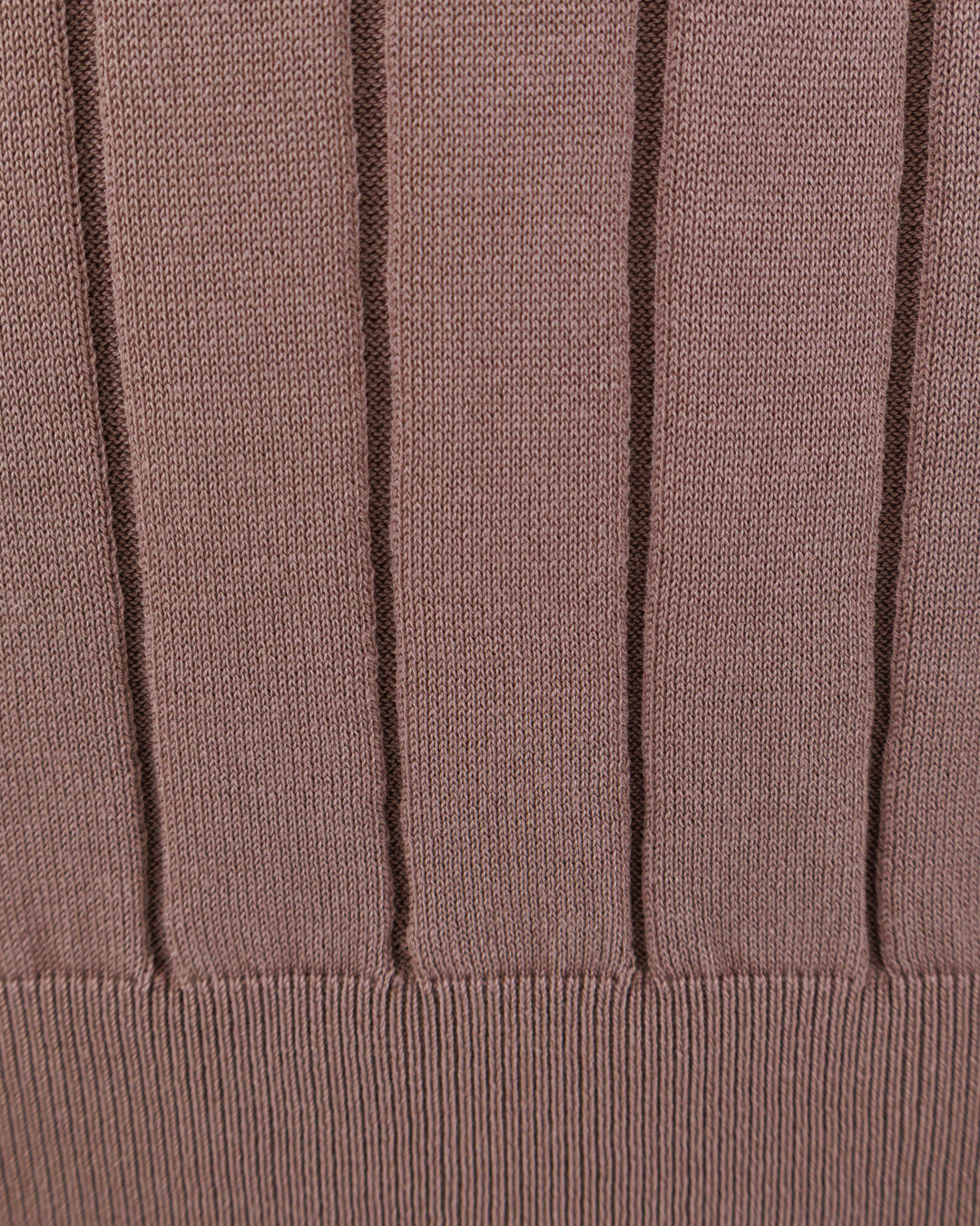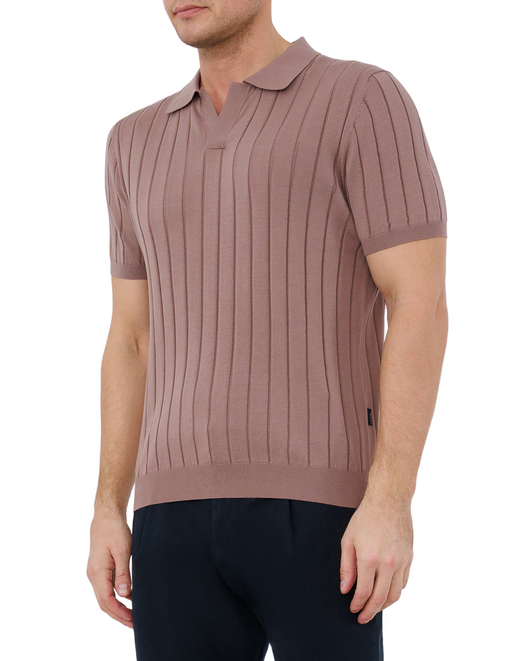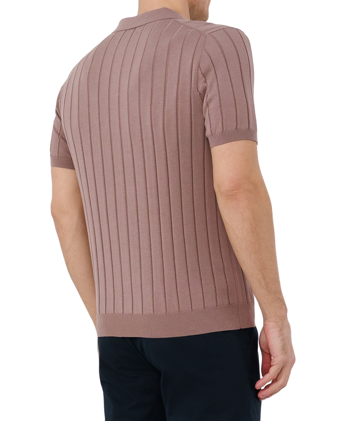 Это поло — воплощение сдержанной элегантности. Тёплый коричневатый оттенок создаёт гармоничный, утончённый образ, а рельефная вязка с вертикальными рельефами визуально вытягивает силуэт, добавляя стройности. Классический отложной воротник придаёт модели строгость, а короткие рукава делают её практичной для тёплого сезона. Резинка по низу и на манжетах обеспечивает аккуратную посадку, подчёркивая лаконичность кроя. Минималистичная отделка делает вещь универсальной — она легко дополнит как деловой, так и расслабленный образ.