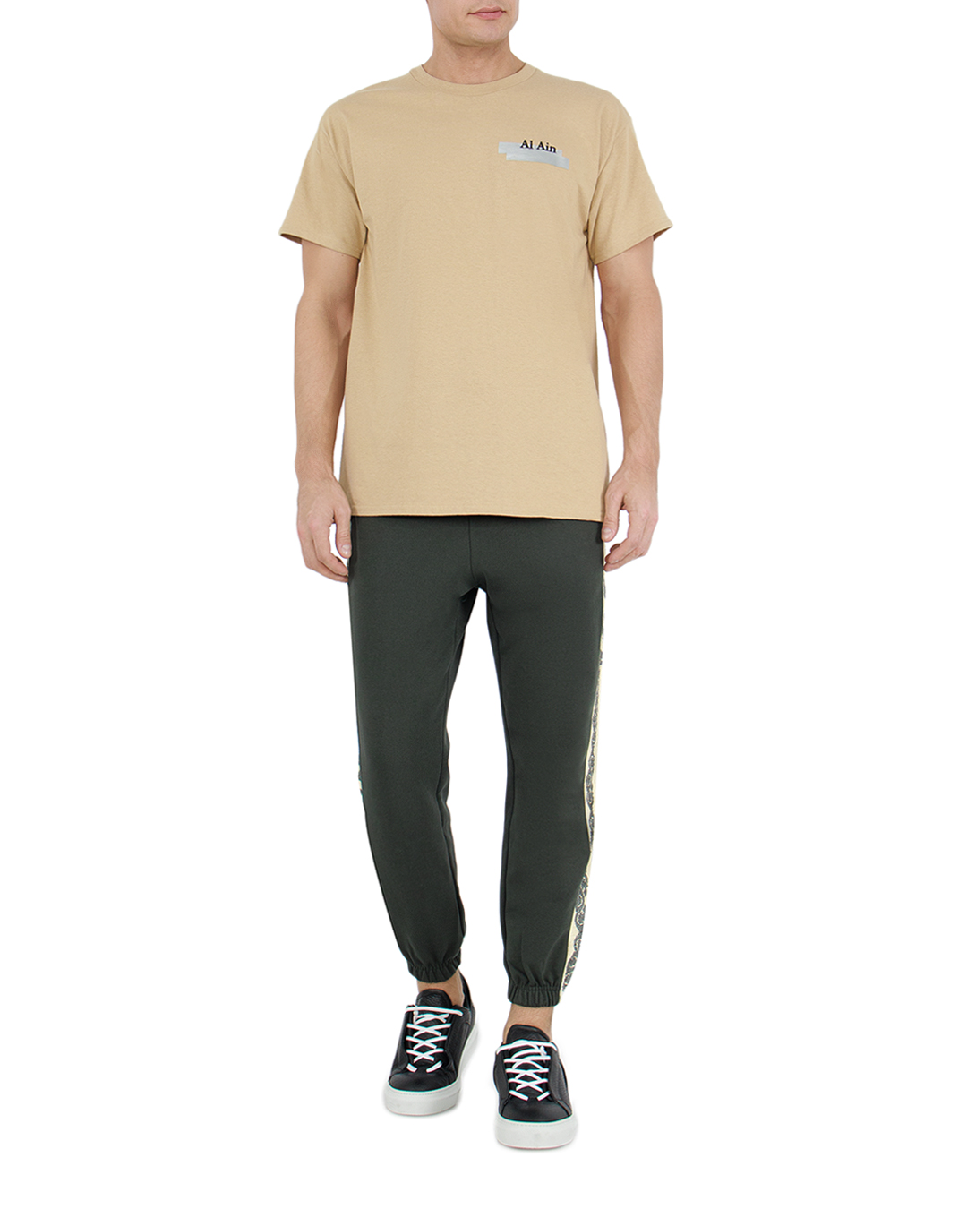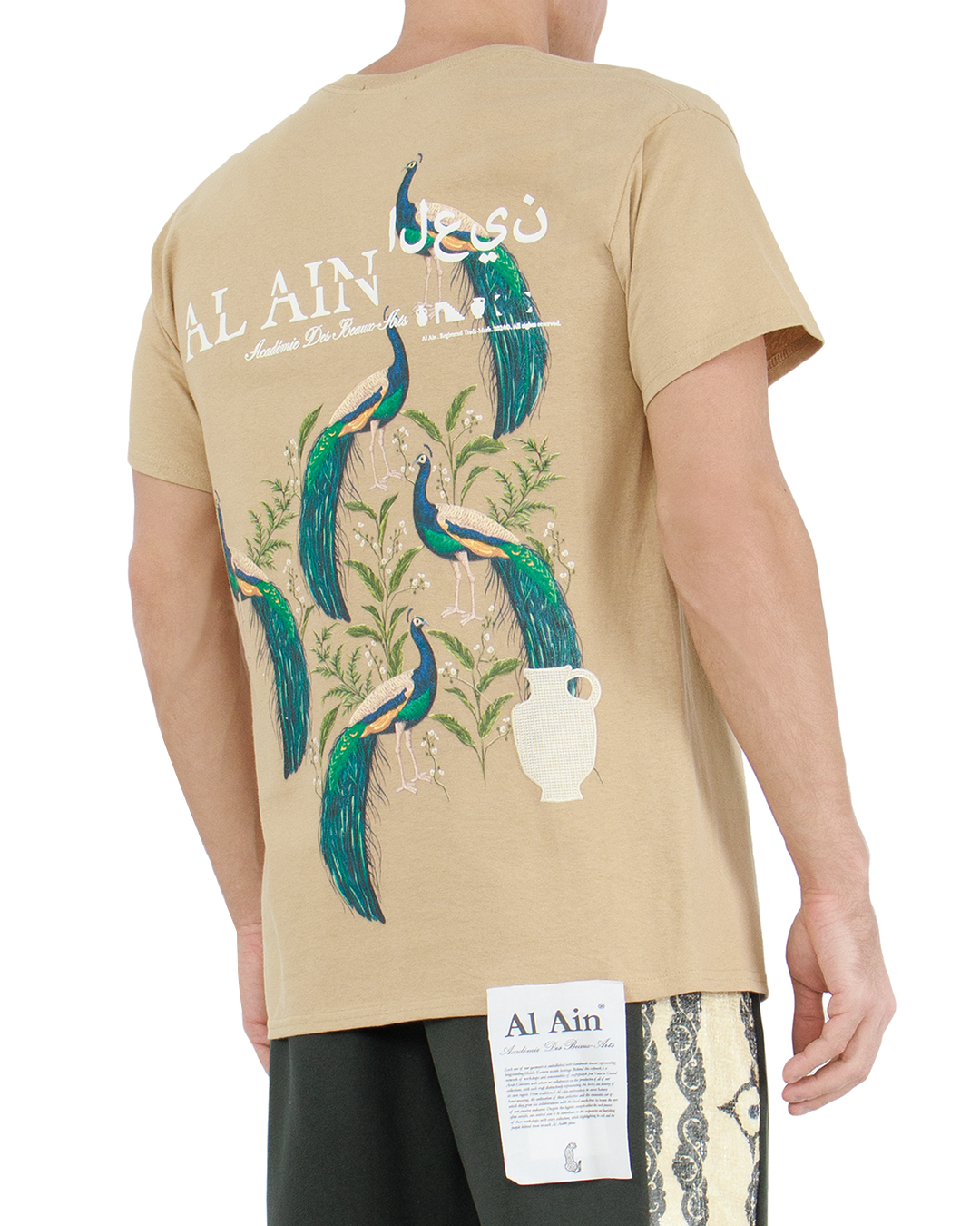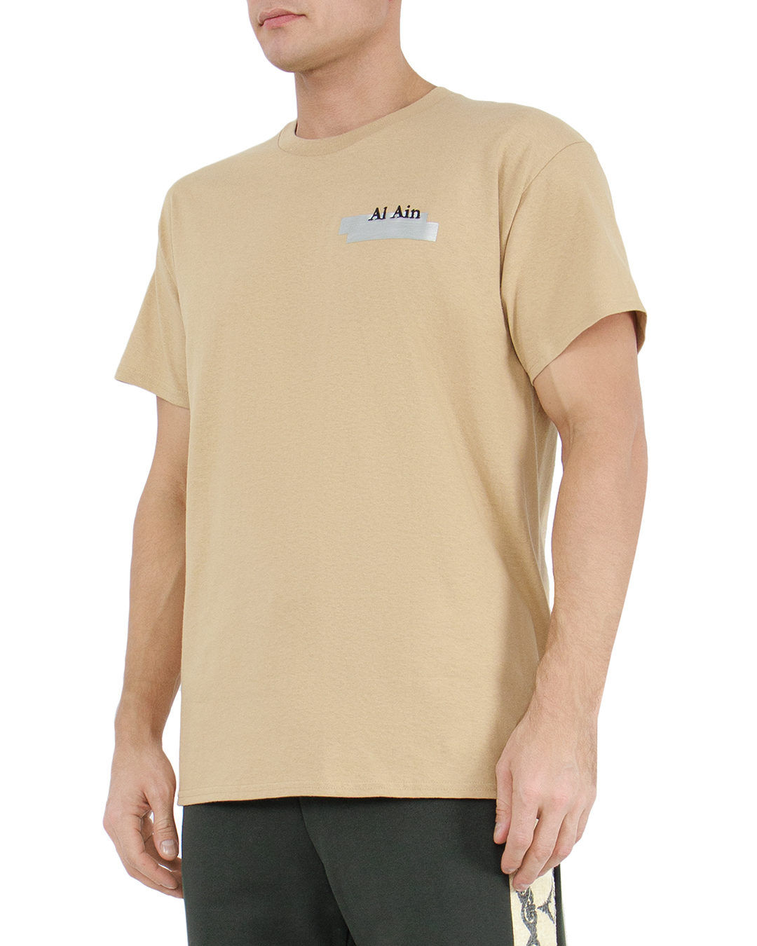 Эта футболка из коллекции Al Ain — воплощение изящного минимализма с культурным акцентом. Бежевый оттенок придаёт образу мягкость и изысканность, создавая нейтральную базу для любого ансамбля. На спине расположен художественный принт, выдержанный в духе Аль-Айна, который привносит в дизайн нотки художественной экспрессии и глубины. Этот элемент выделяет футболку как уникальное произведение в вашем гардеробе, добавляя ей культурное значение. Качество исполнения подчеркивается деталями: аккуратно обработанный круглый воротник сохраняет форму и обеспечивает комфорт в носке. Изготовленная из премиального хлопка, футболка гарантирует отличную воздухопроницаемость и мягкость. Минималистичная графика "Al Ain" на груди добавляет изюминку и завершает целостность дизайна, обеспечивая стильный и утонченный вид. Эта футболка станет идеальным выбором для создания универсального образа, легко сочетающегося с джинсами или более формальными элементами одежды, и будет стильным сопровождением вашего повседневного комфорта и уникальной индивидуальности.