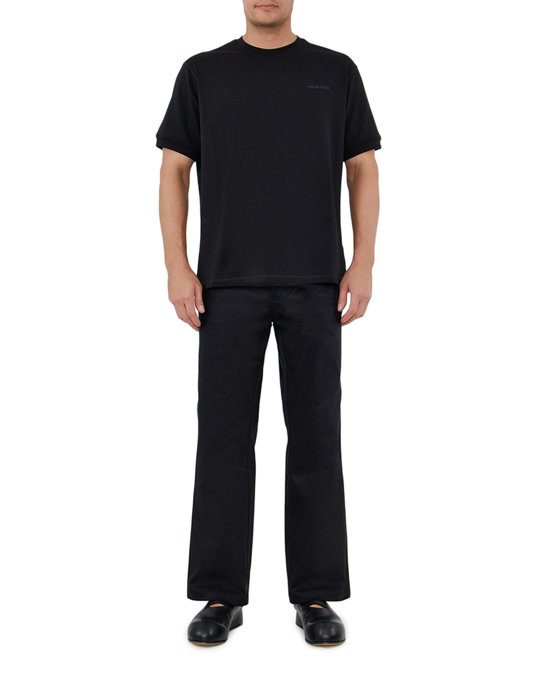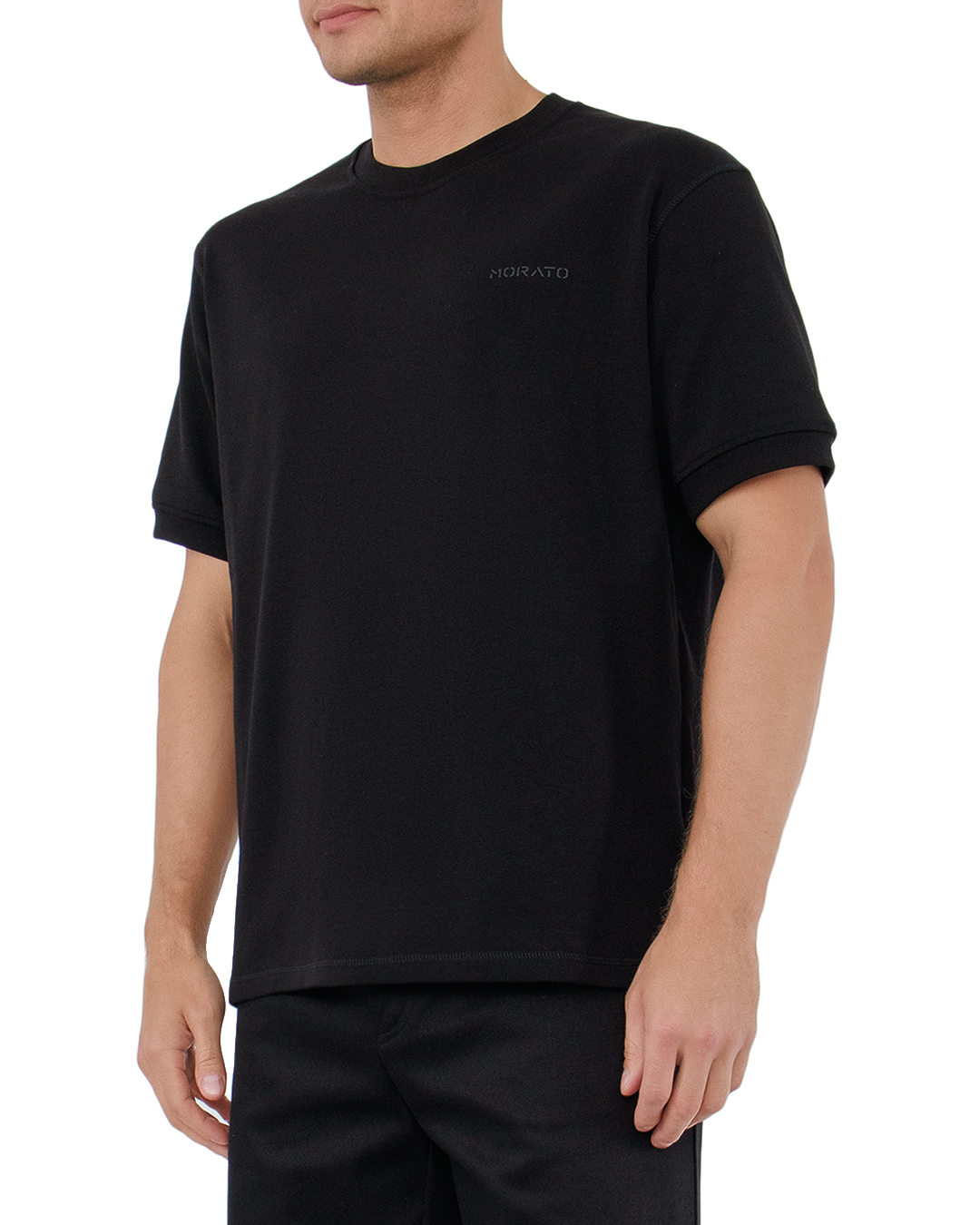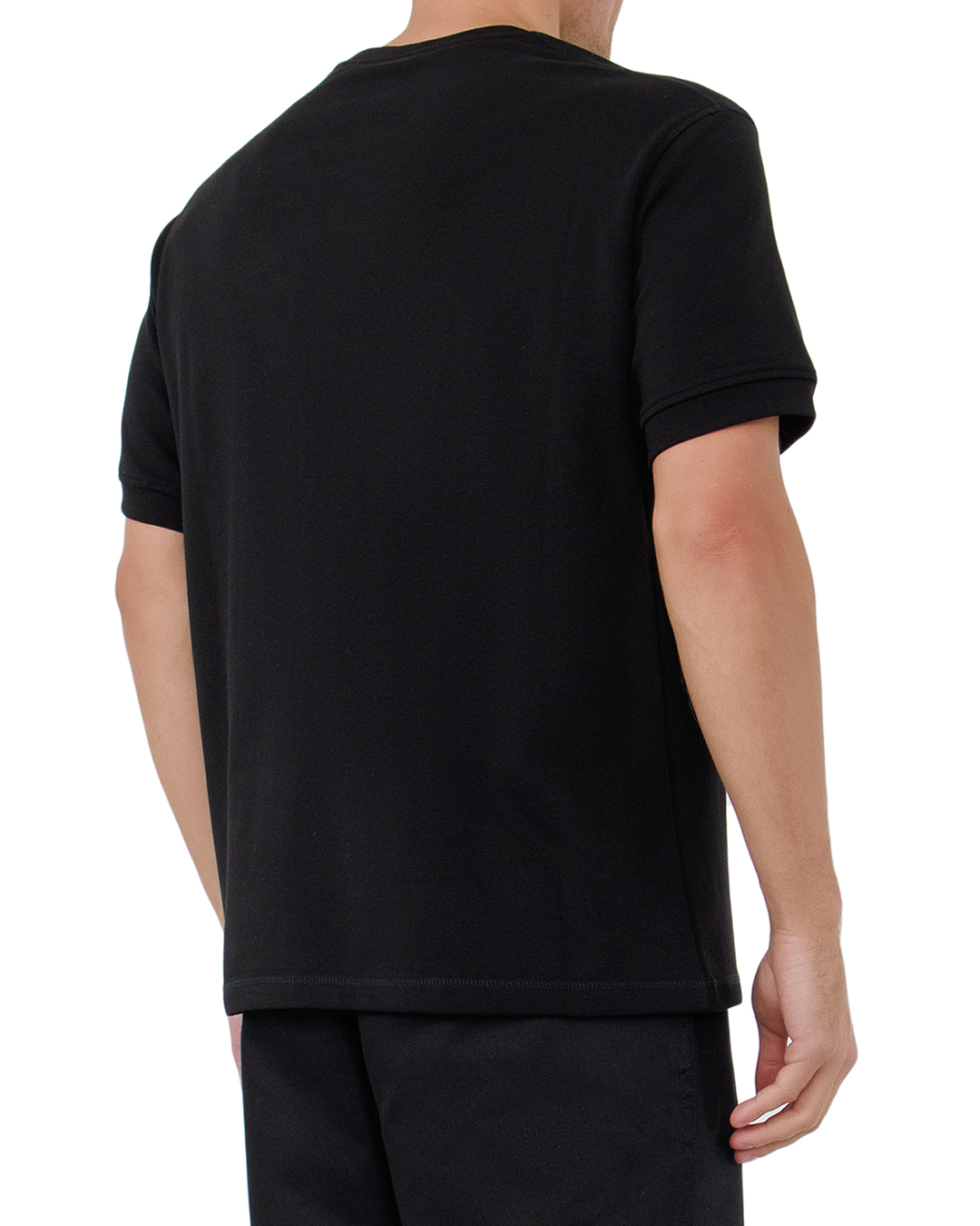 Эта футболка — квинтэссенция минималистичного стиля и утонченной элегантности. Глубокий черный цвет придаёт ей универсальность и легкость в сочетании с любыми элементами гардероба. Безупречный крой обеспечивает идеальную посадку, подчеркивая силуэт и создавая образ с лаконичными линиями. Высококачественная ткань гарантирует мягкость и комфорт, делая этот элемент гардероба неотъемлемой частью повседневного стиля. Аккуратная отделка горловины и манжет добавляет изделию завершённости и строгости. Тонкая вышивка логотипа на груди служит сдержанным акцентом, подчеркивая премиальность бренда и создавая ощущение эксклюзивности. Эта футболка станет основой для множества образов — от расслабленного кэжуал стиля до более формальных сочетаний, выступая базисом для экспериментов в мире моды.