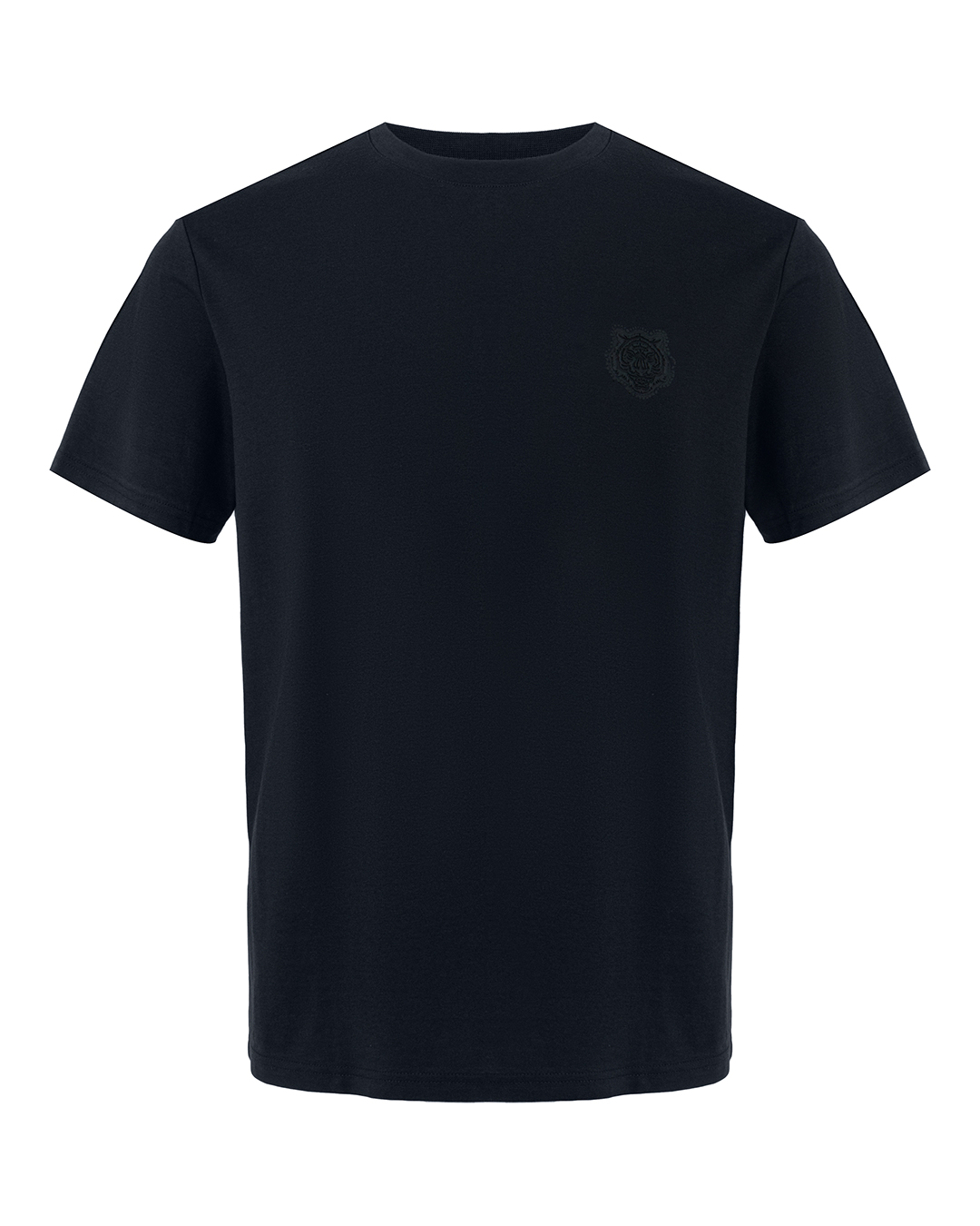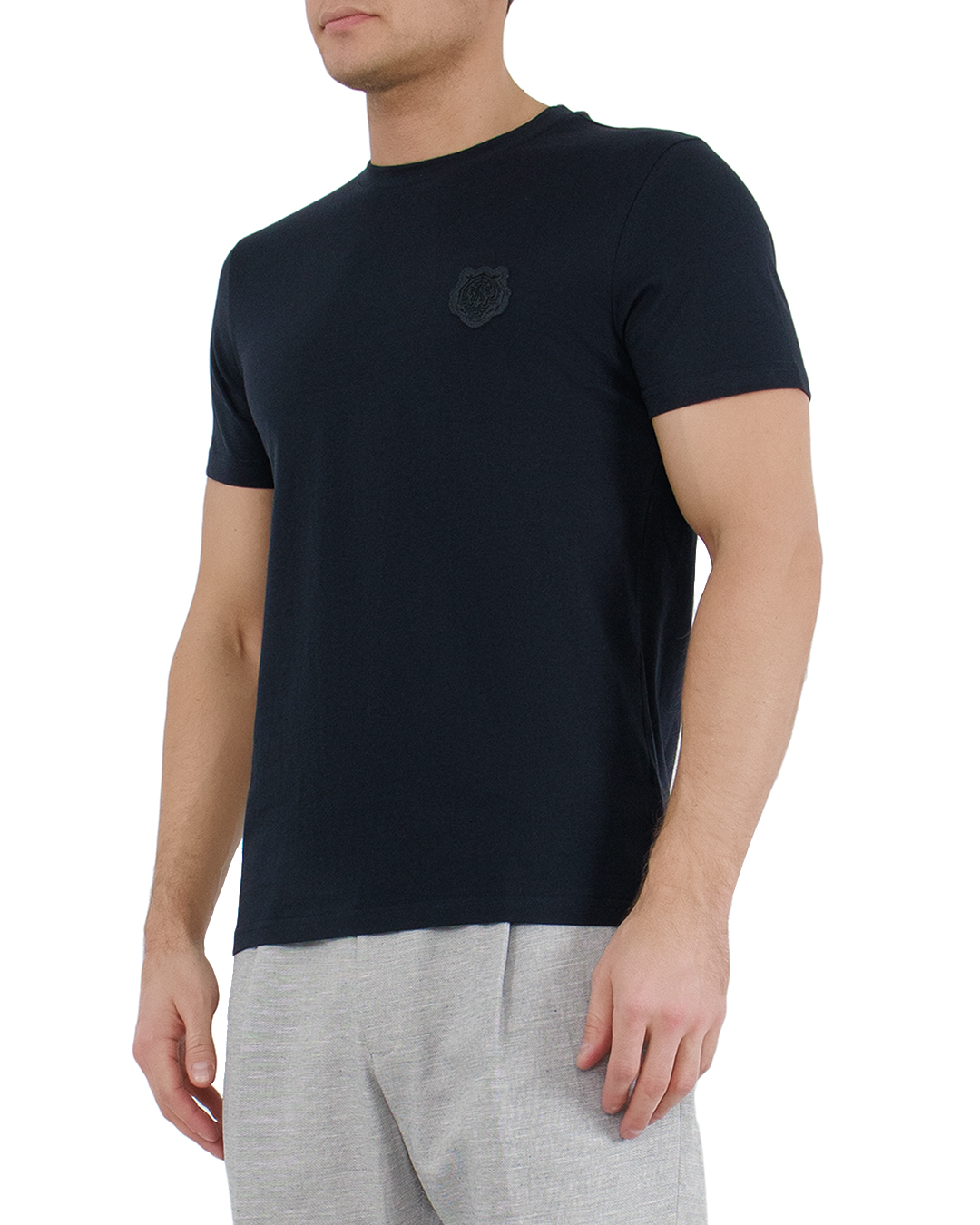 Футболка темно-синего цвета из 100% хлопка с декоративной аппликацией в виде тигра. Эта футболка сочетает в себе комфорт и стиль, благодаря натуральному материалу, который обеспечивает хорошую воздухопроницаемость и мягкость. Аппликация тигра придает изделию яркий и оригинальный вид, делая его отличным выбором для повседневной носки или активного отдыха. Футболку можно легко сочетать с джинсами, шортами или юбками, создавая разнообразные образы для разных случаев.